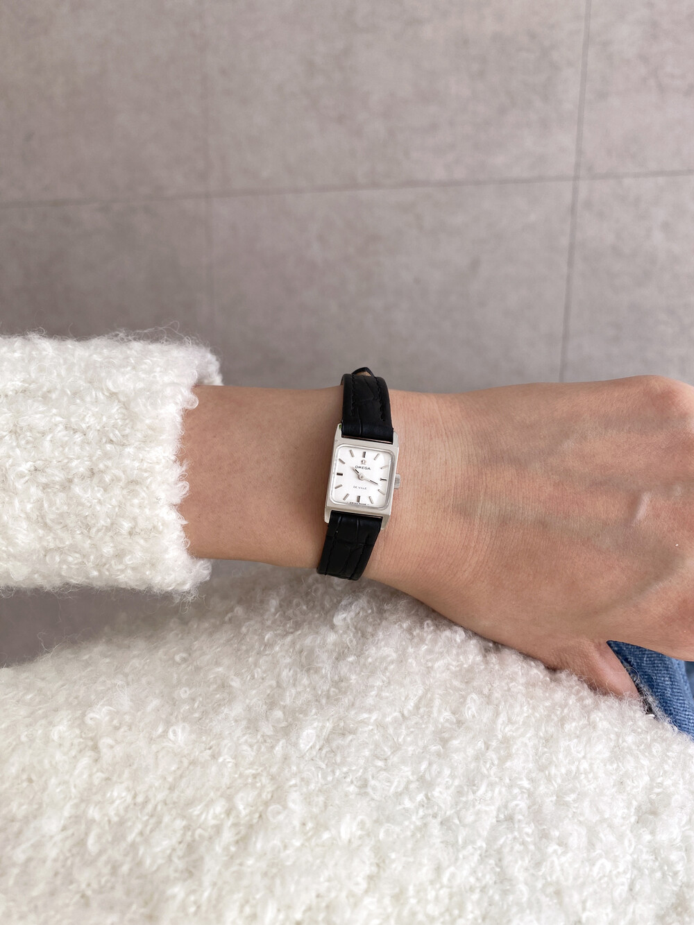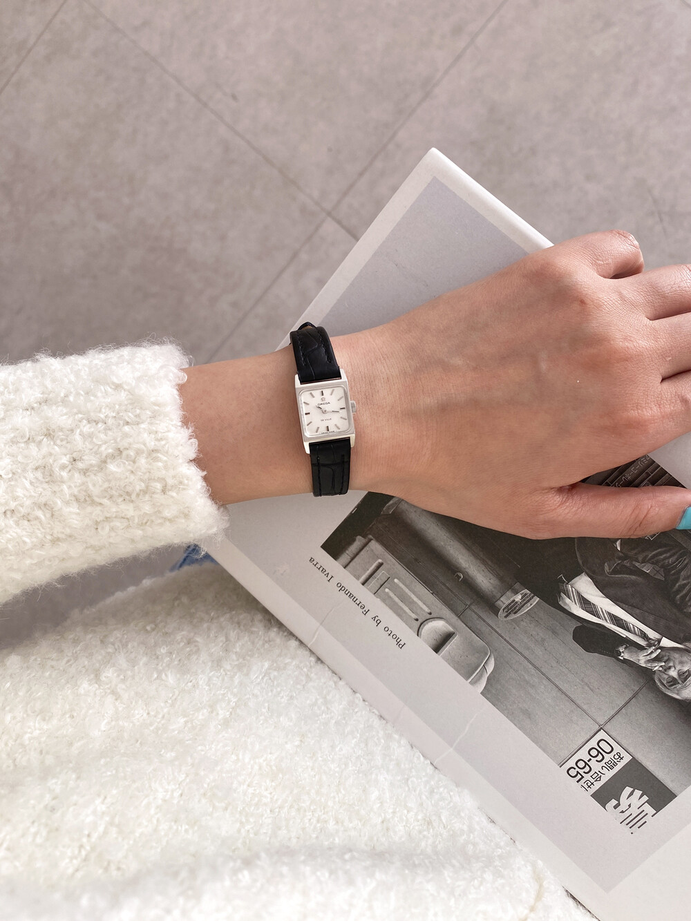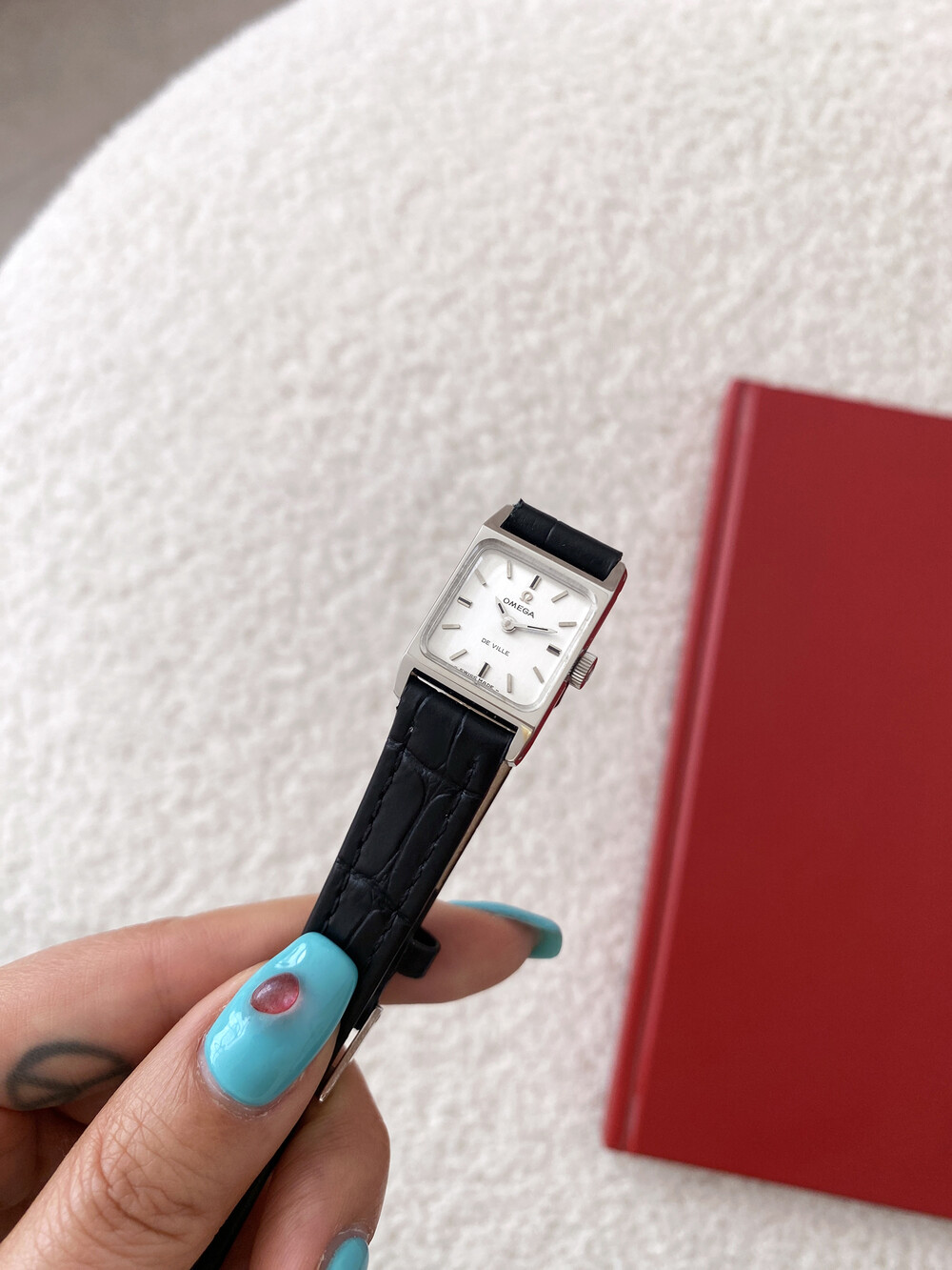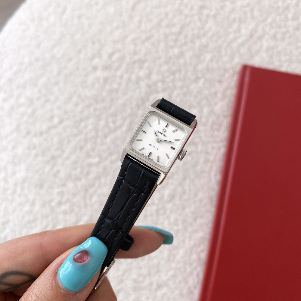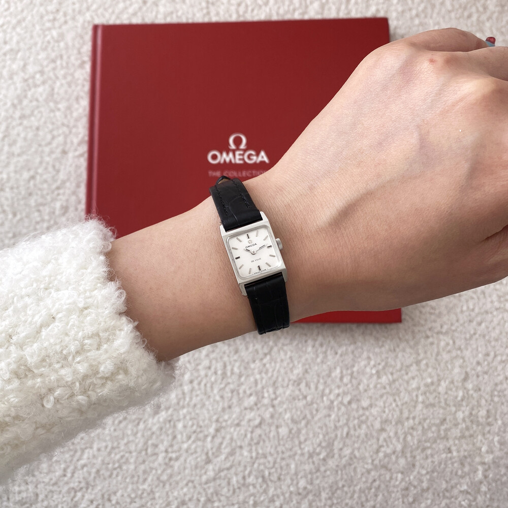 1970년도에 제작된 여성용 오메가 드빌 모델로 스퀘어 타입의 실버 케이스와
