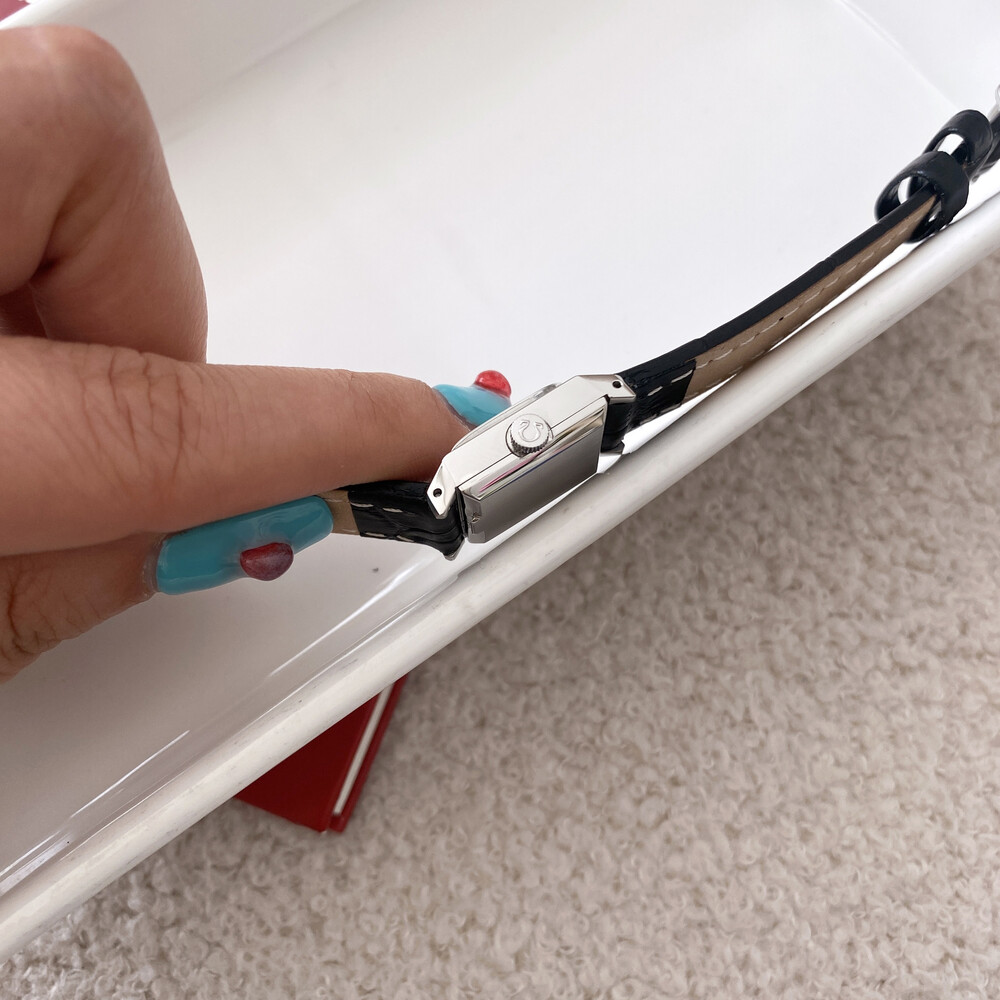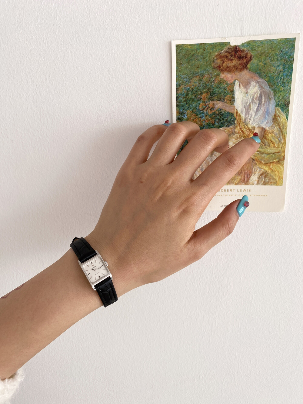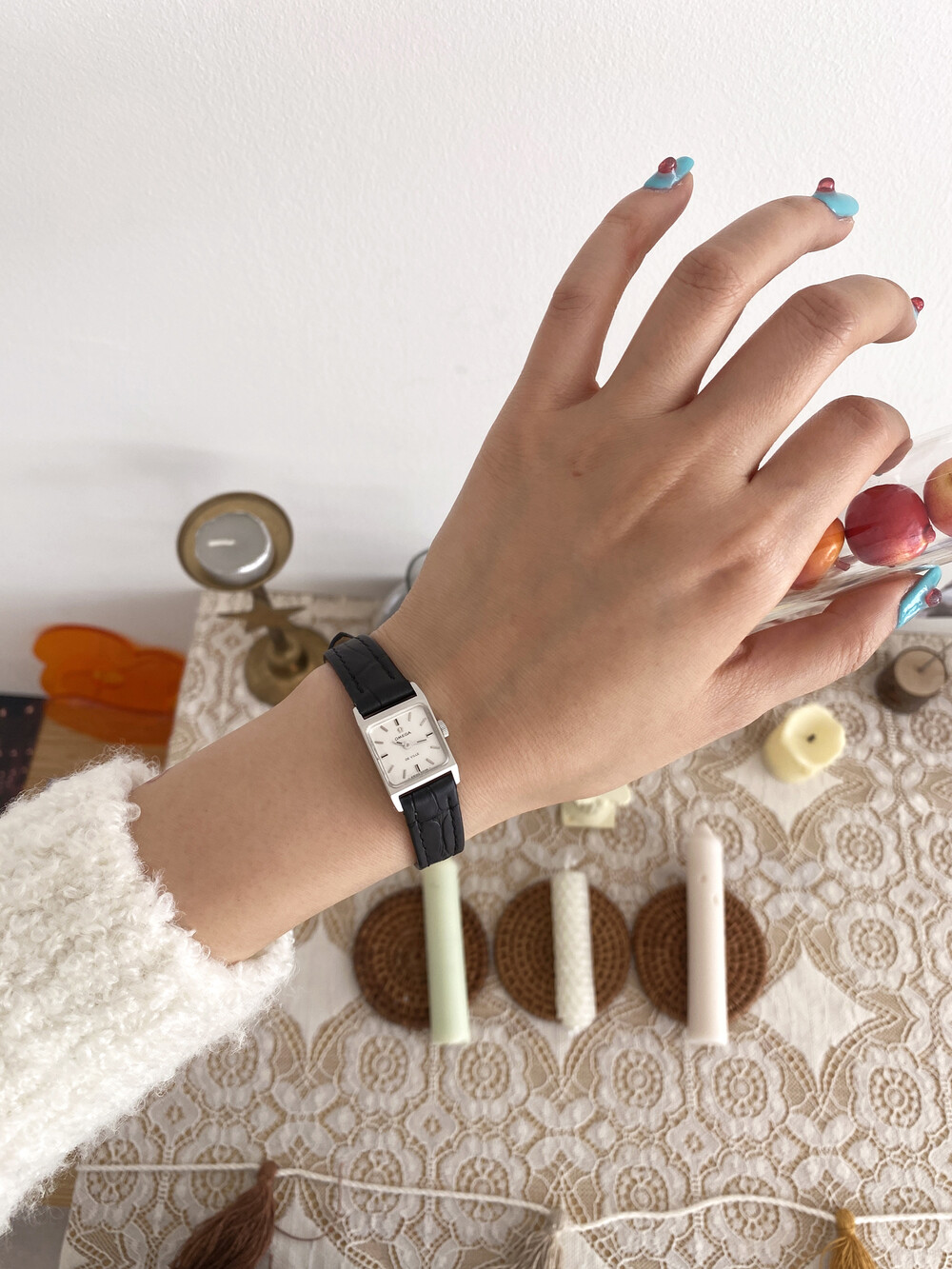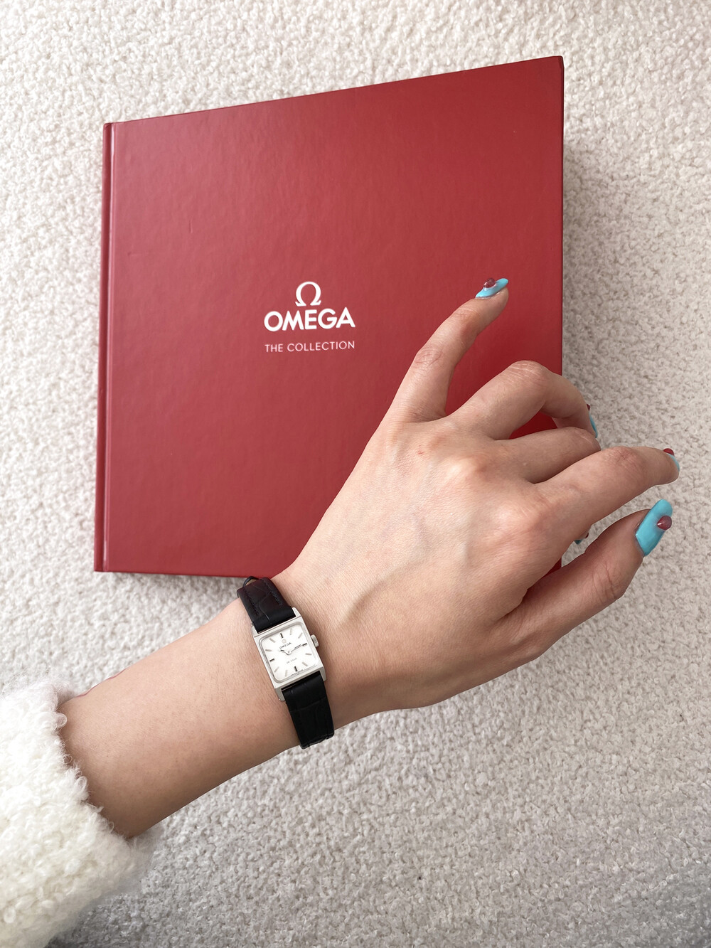 1970년도에 제작된 여성용 오메가 드빌 모델로 스퀘어 타입의 실버 케이스와