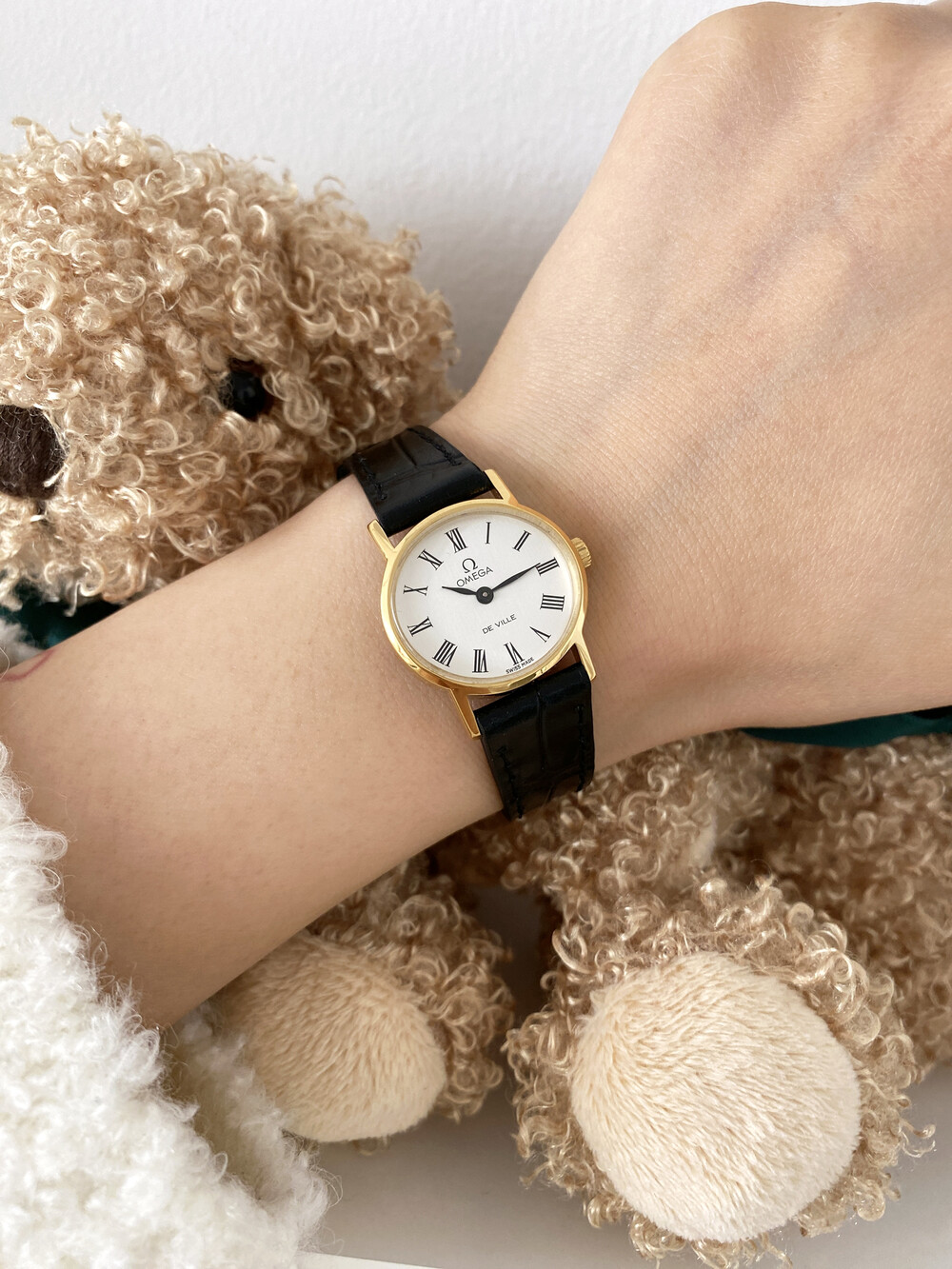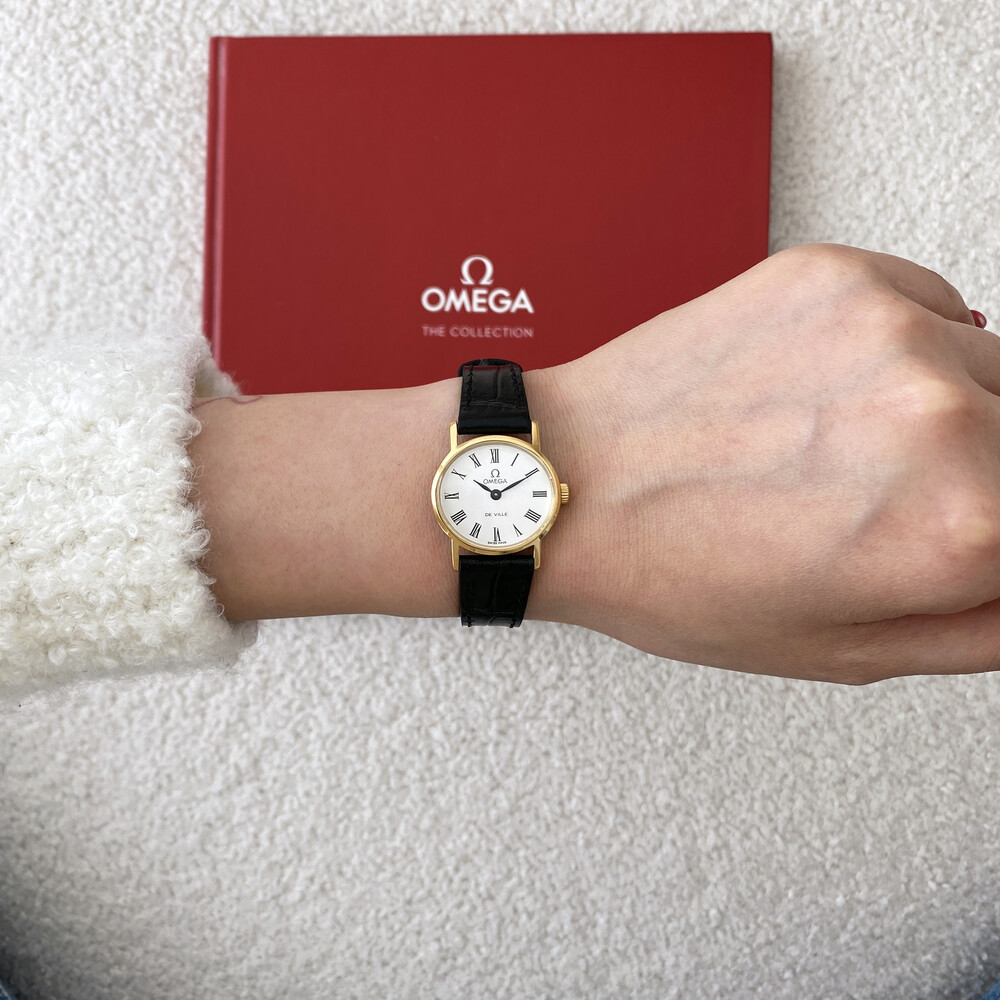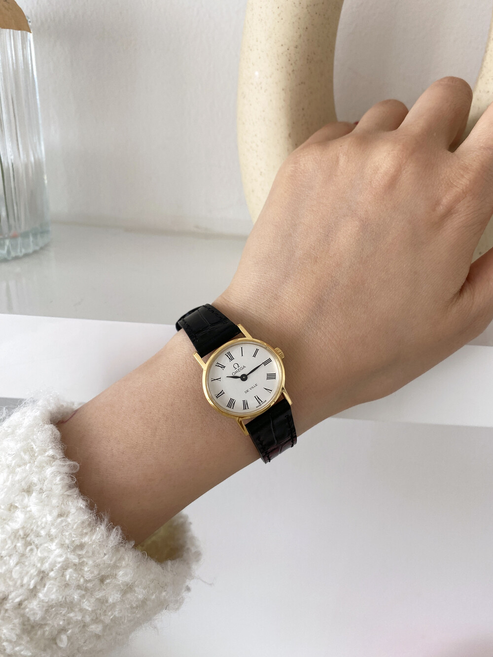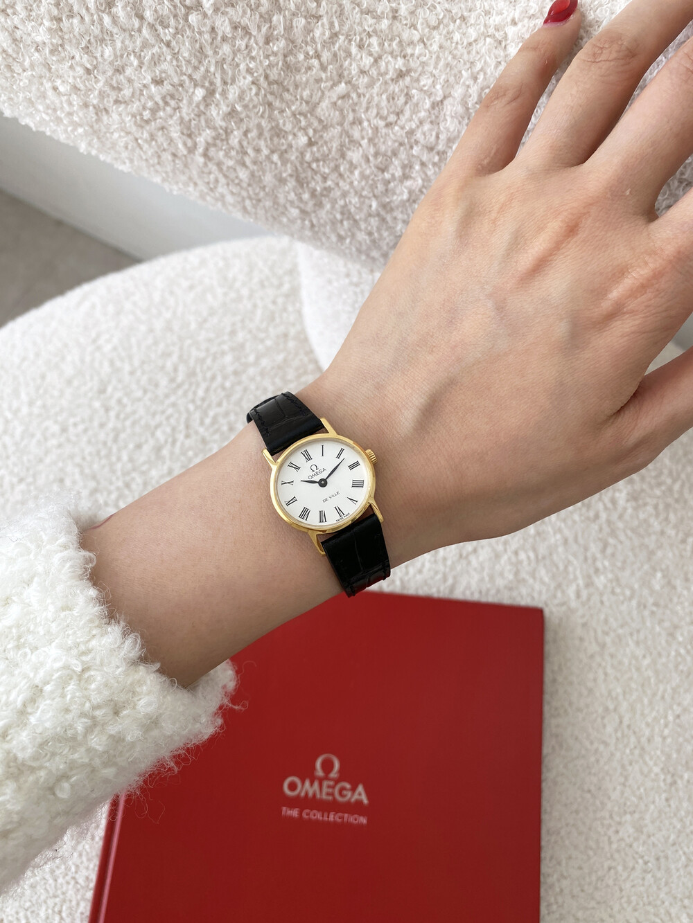 1978년도에 제작된 오메가 드빌 모델로 부드러운 곡선의 라운드 타입의 골드 케이스,