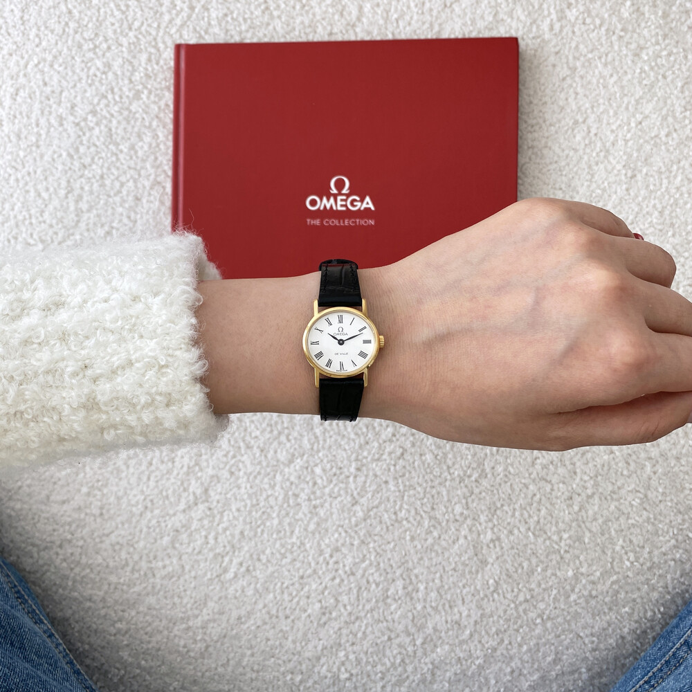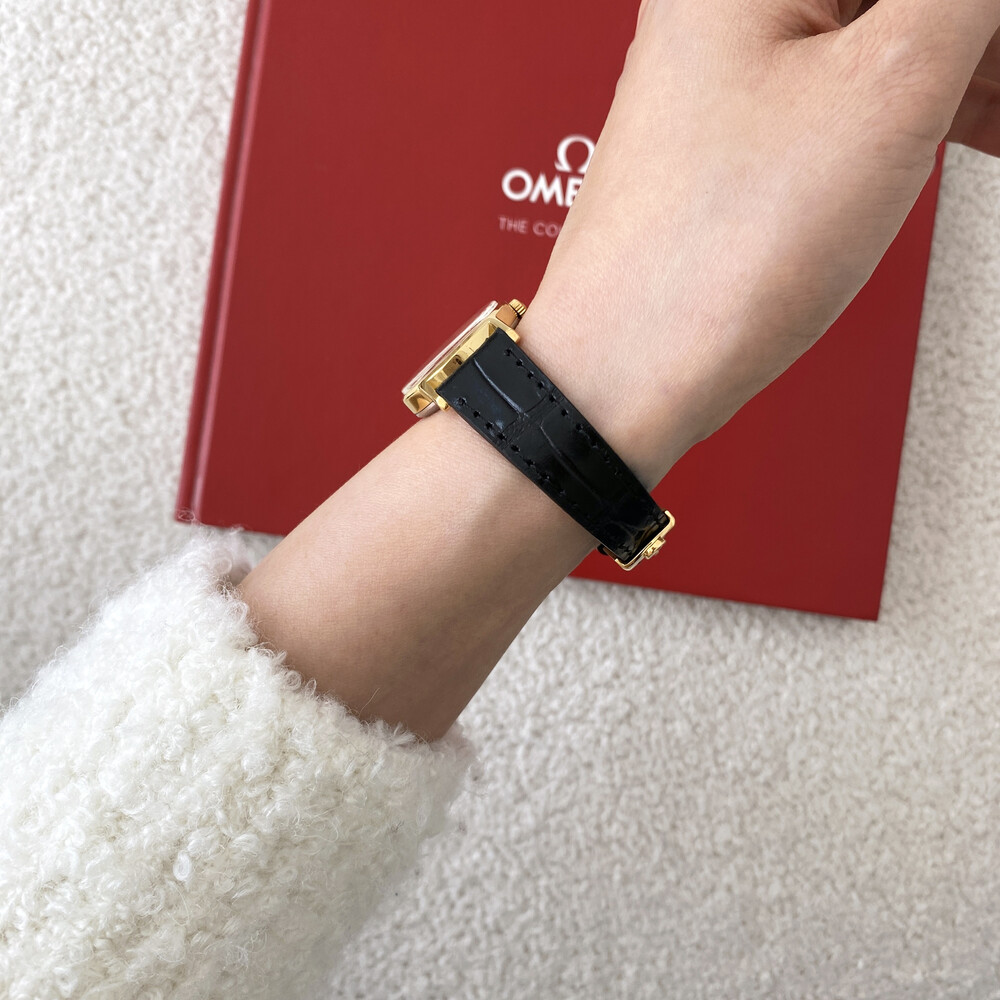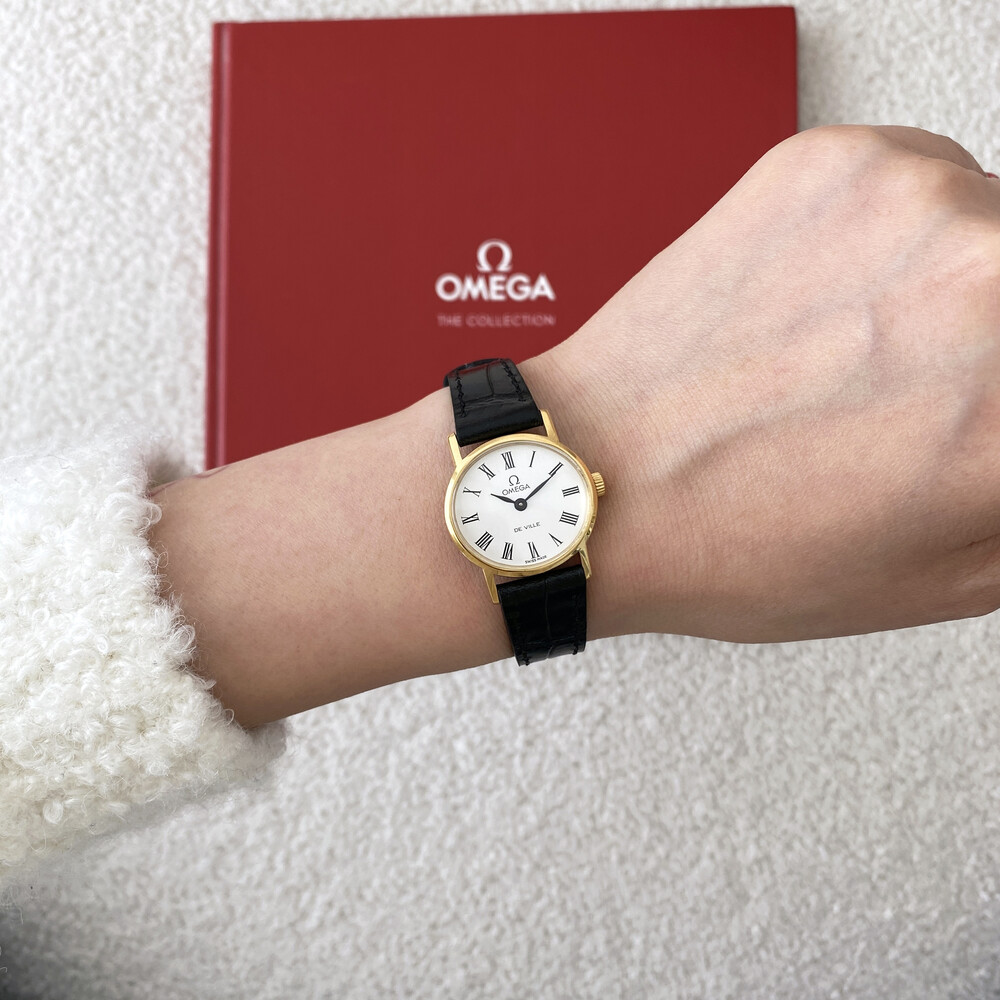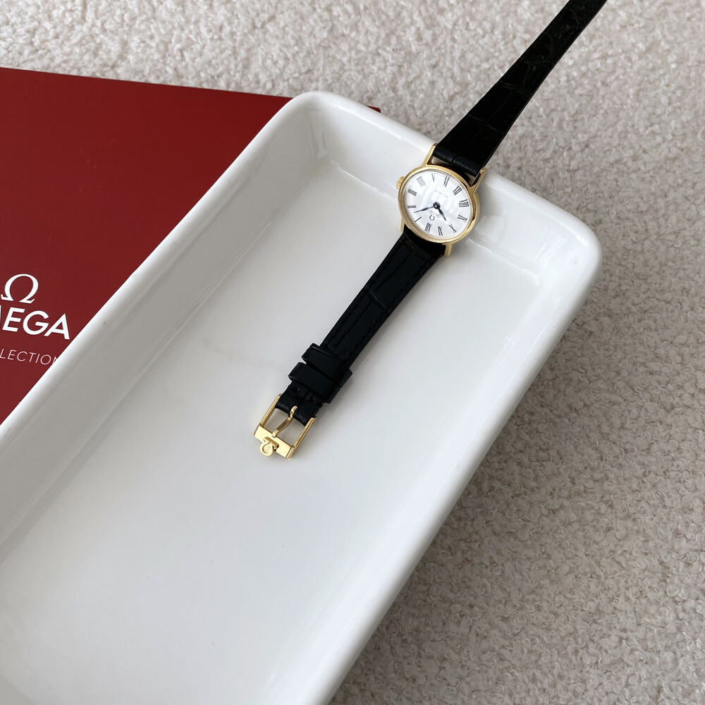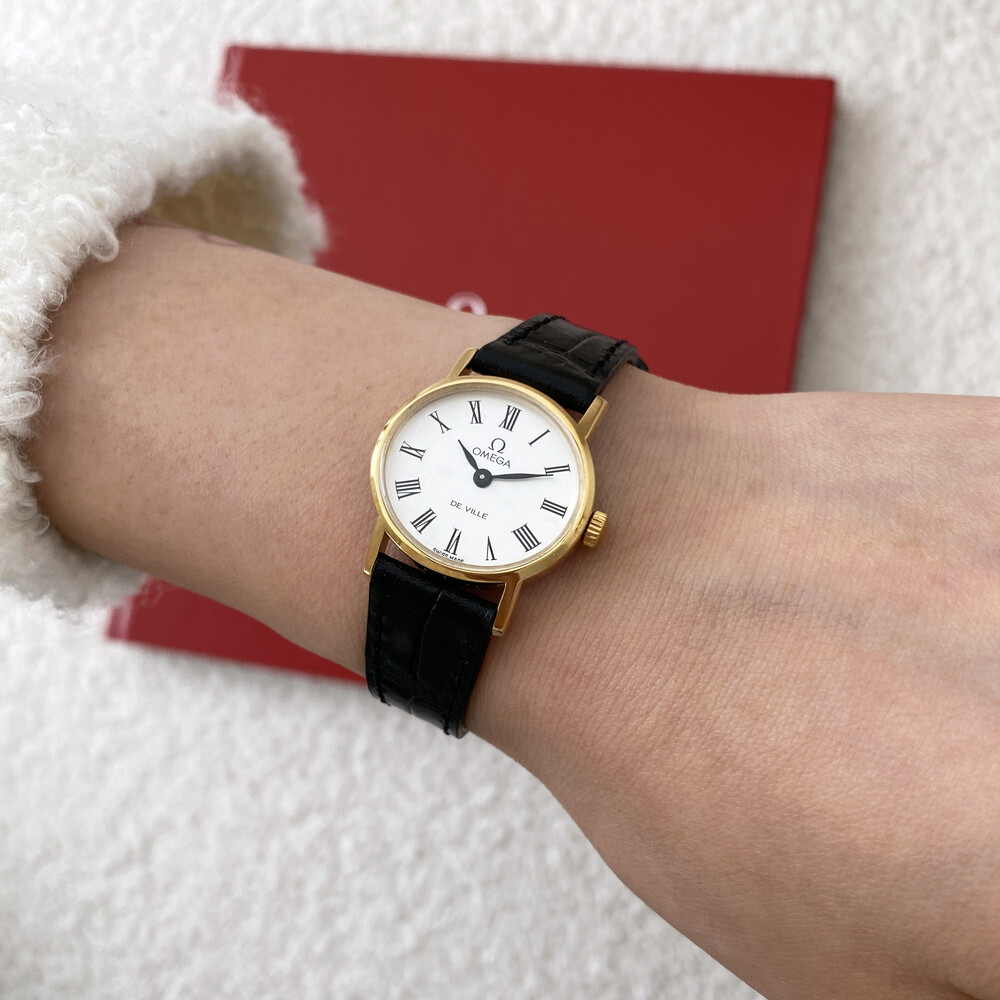 1978년도에 제작된 오메가 드빌 모델로 부드러운 곡선의 라운드 타입의 골드 케이스,