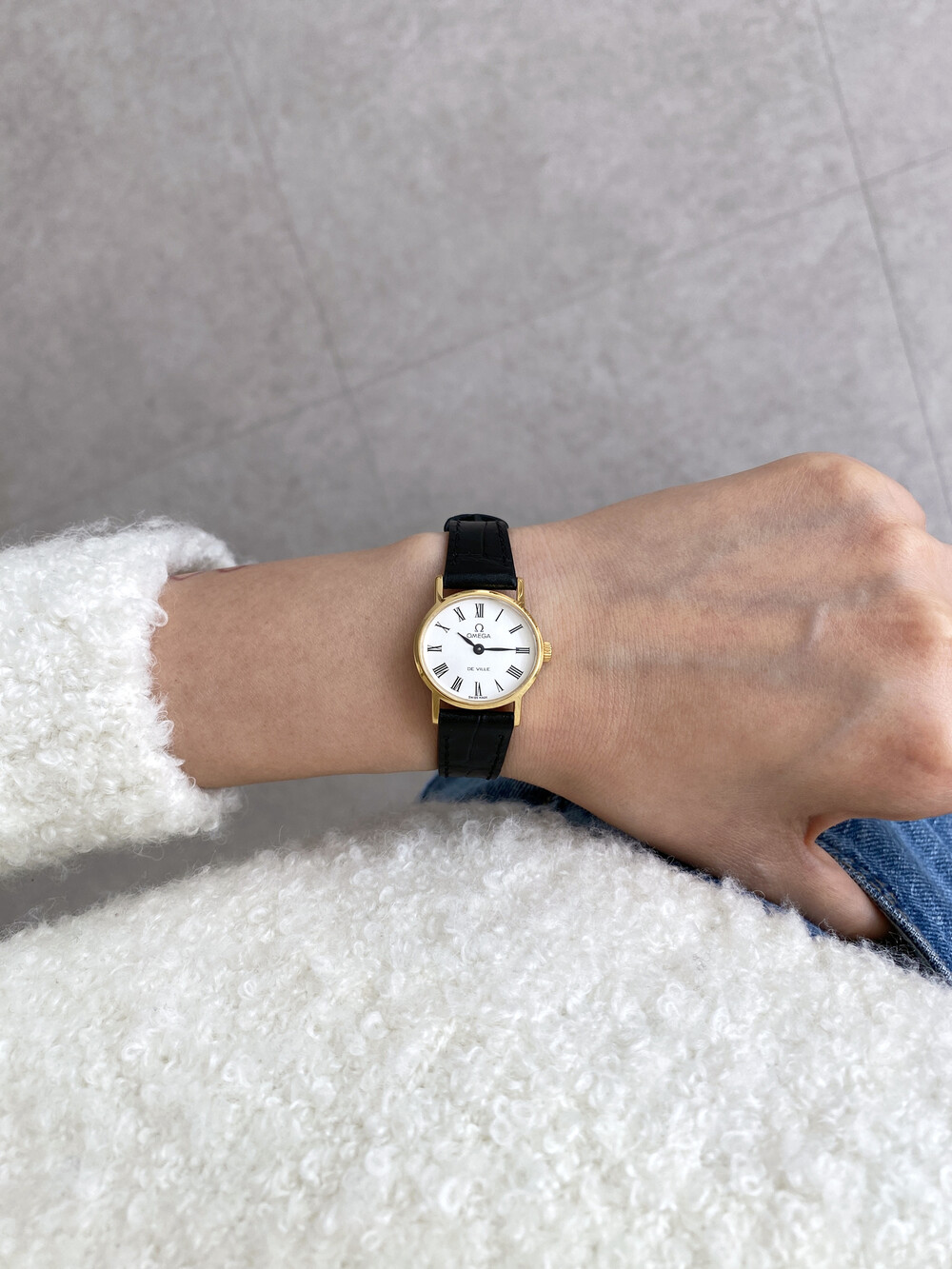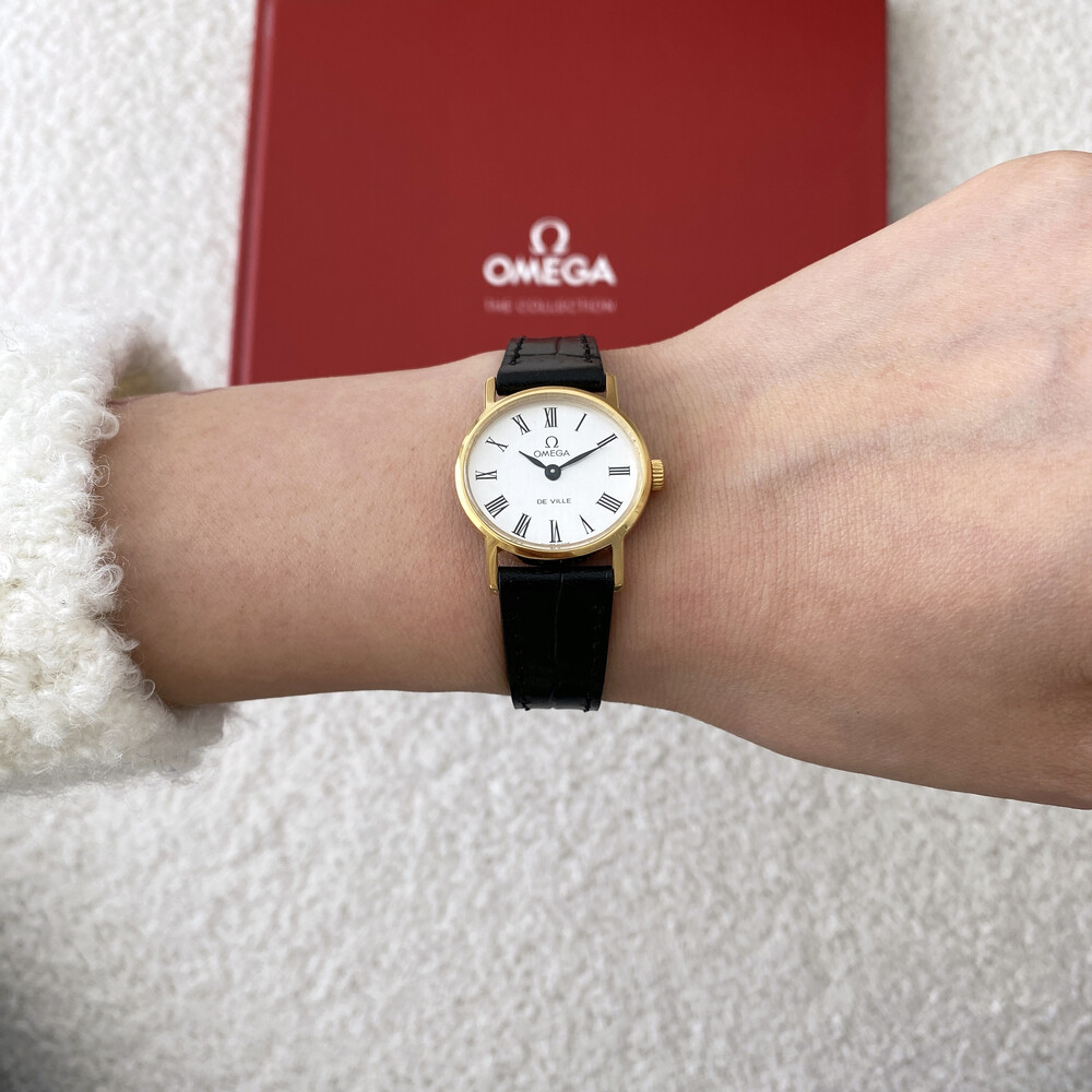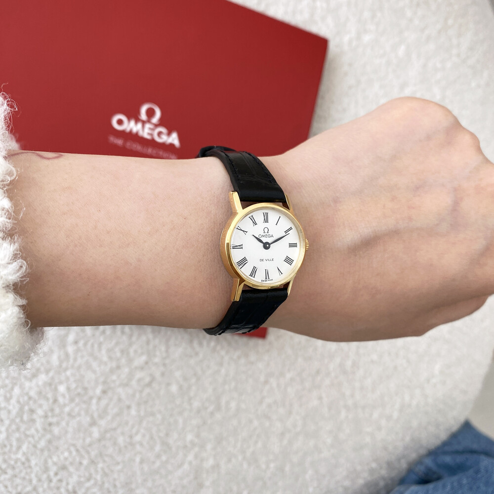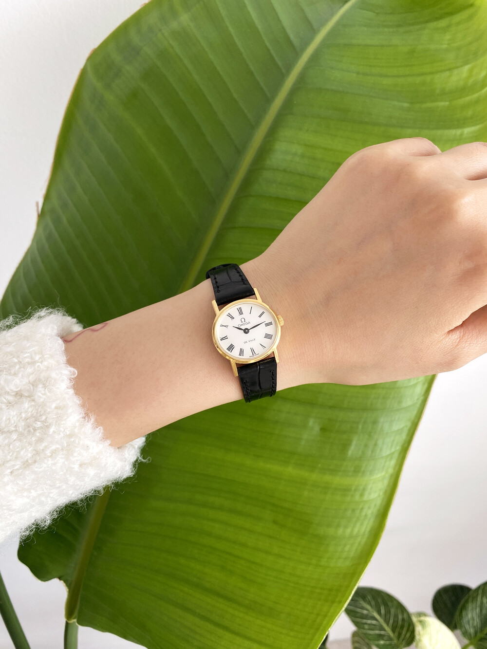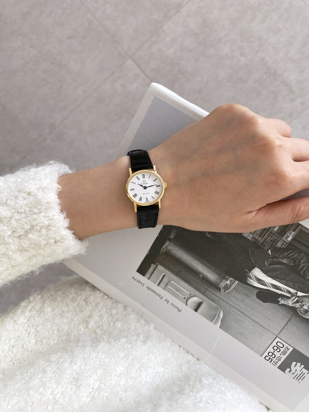 1978년도에 제작된 오메가 드빌 모델로 부드러운 곡선의 라운드 타입의 골드 케이스,