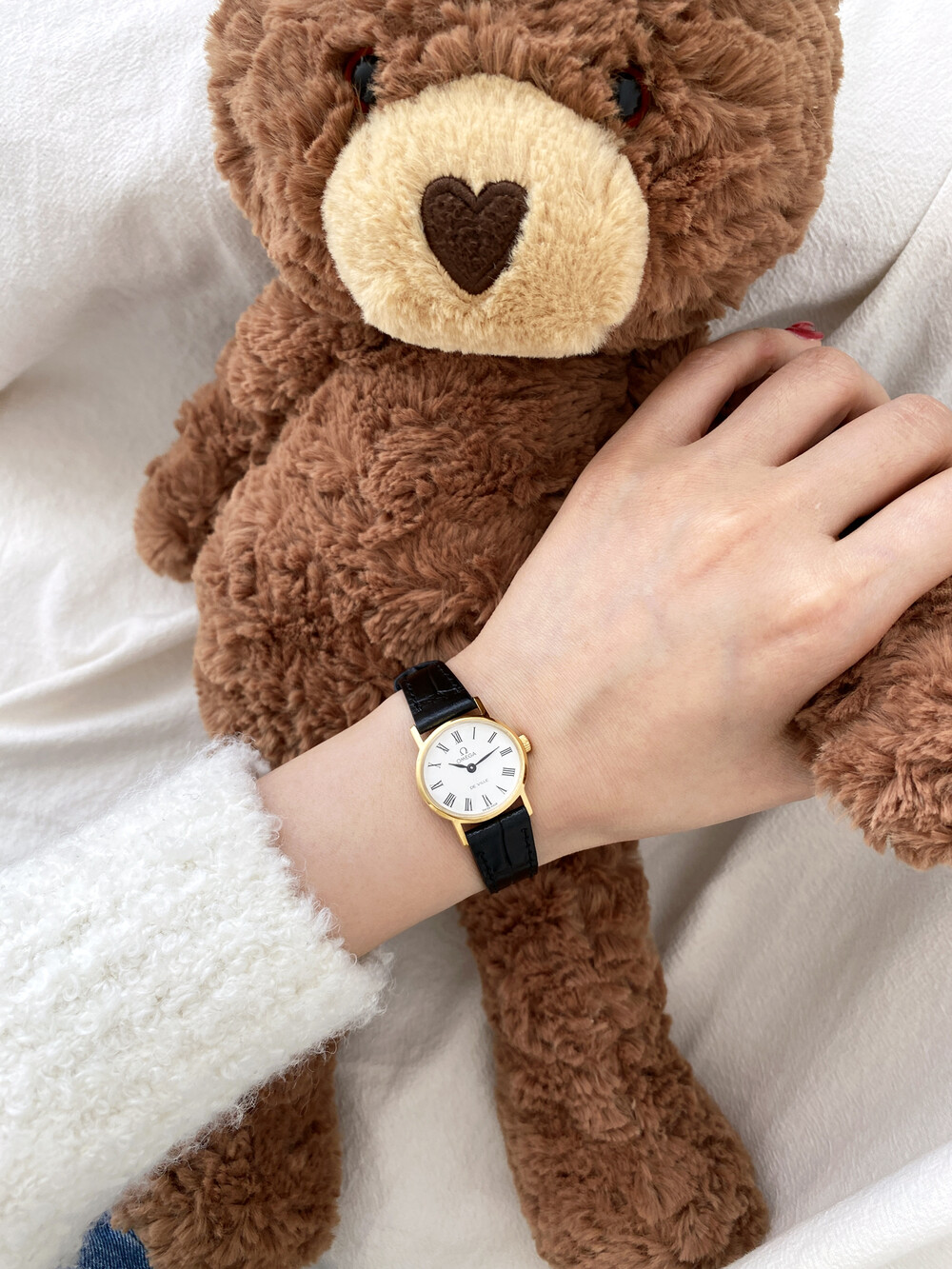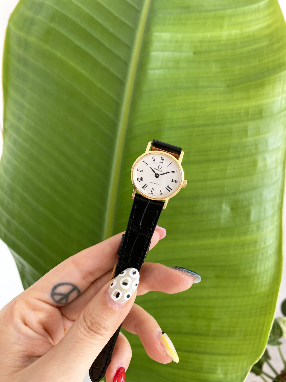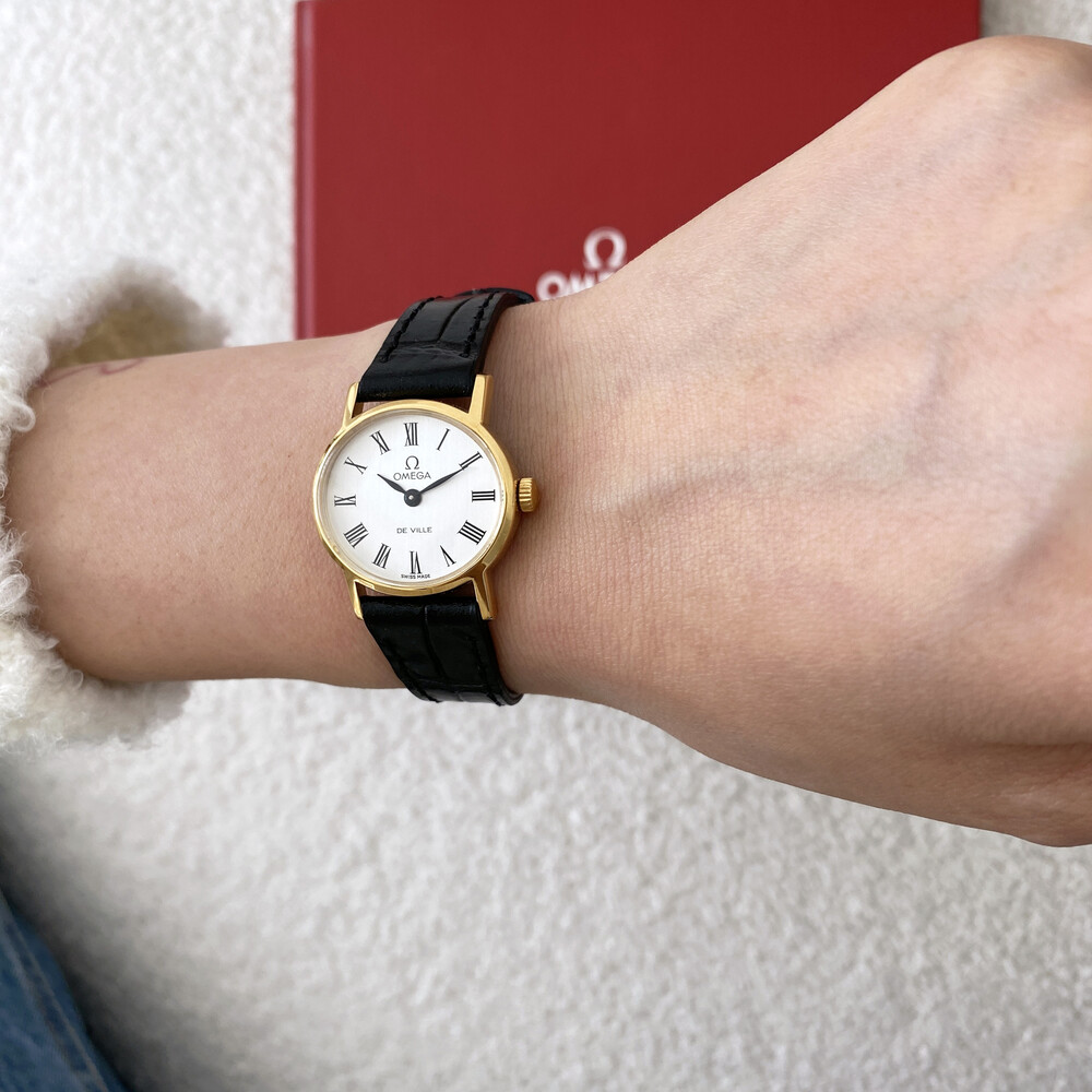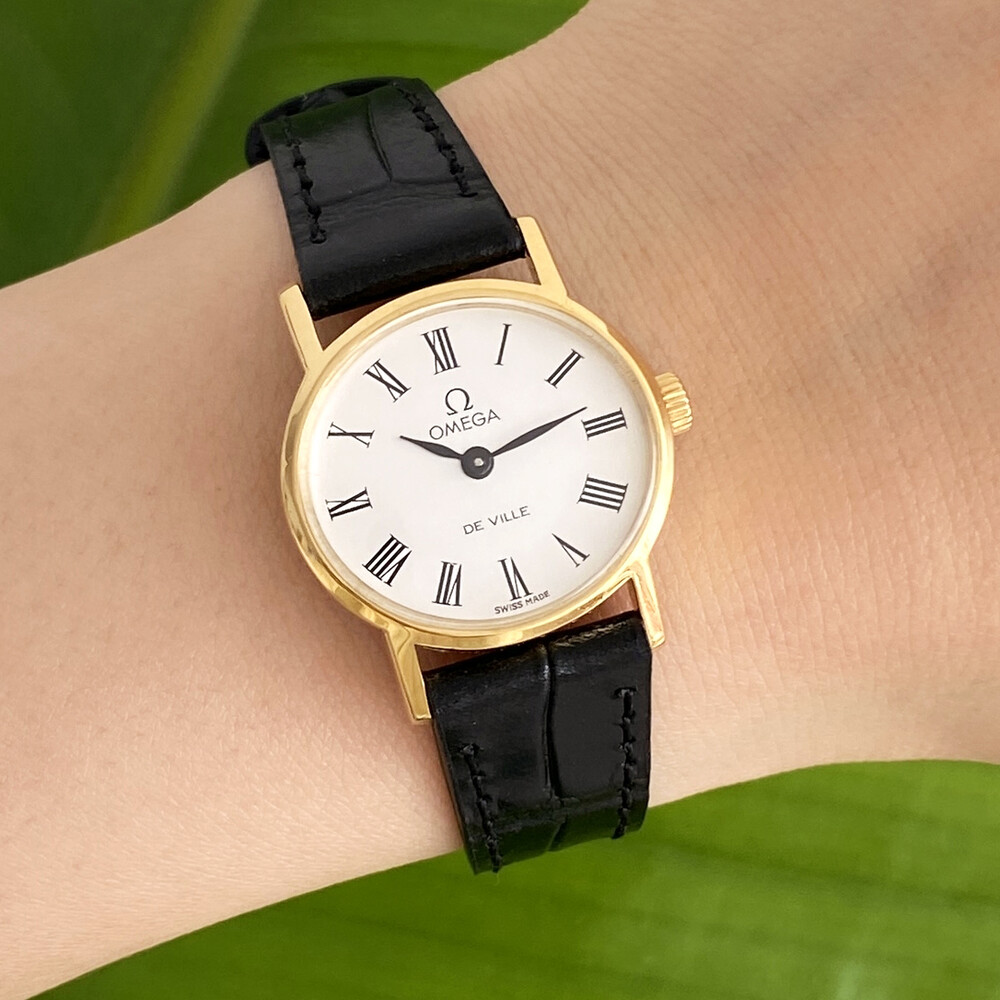 1978년도에 제작된 오메가 드빌 모델로 부드러운 곡선의 라운드 타입의 골드 케이스,