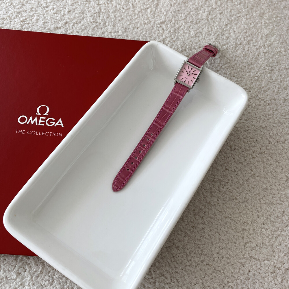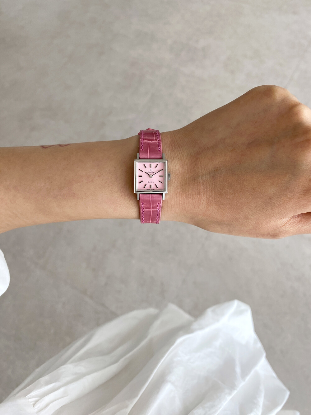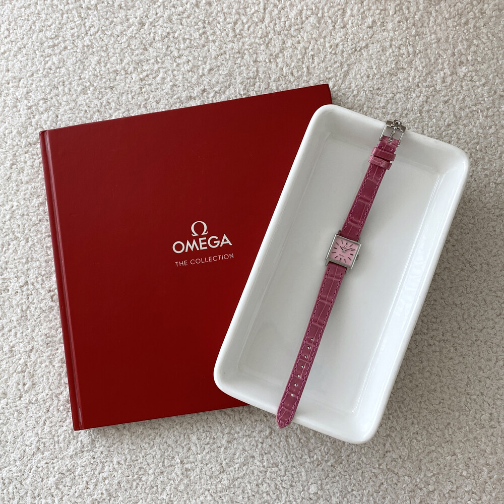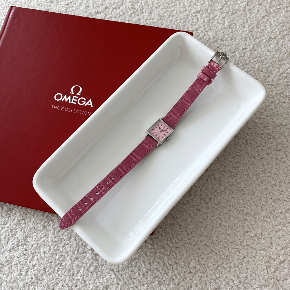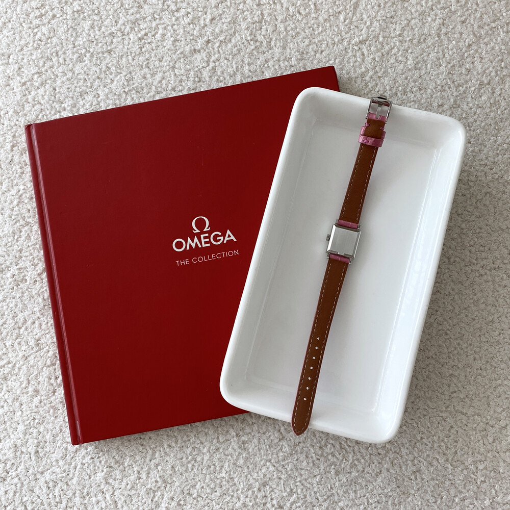 1974년도에 제작된 여성용 오메가 제네브 모델로 스퀘어 타입의 실버 케이스와