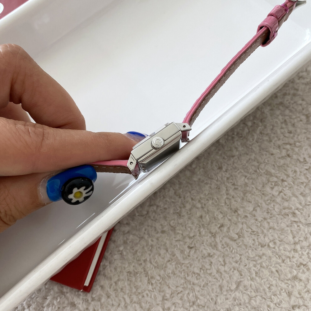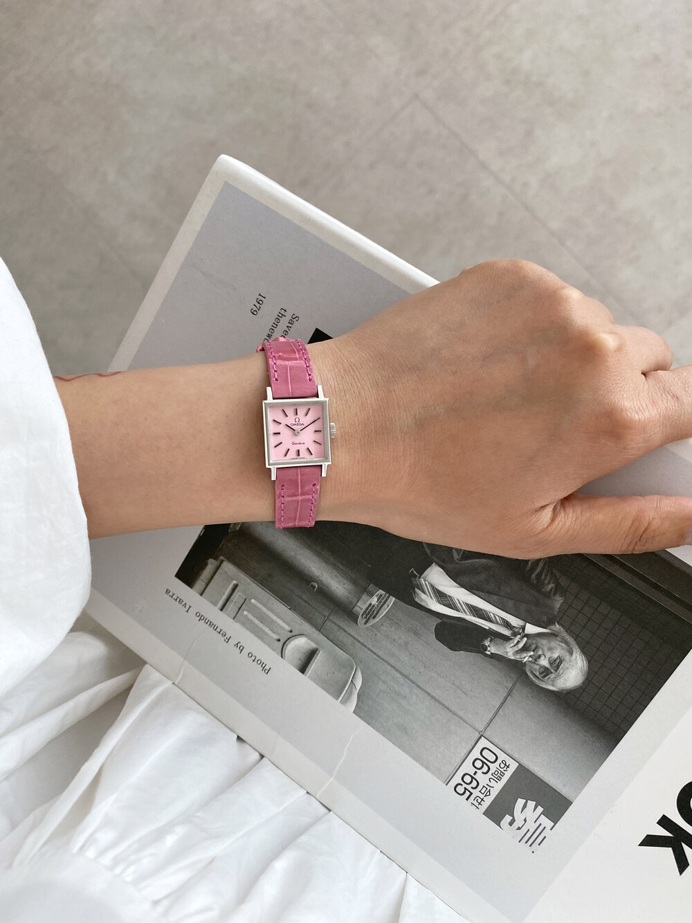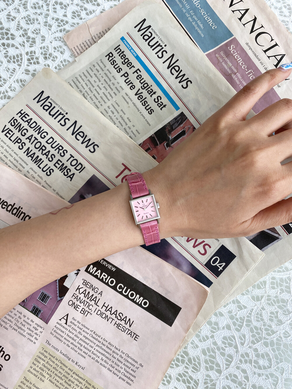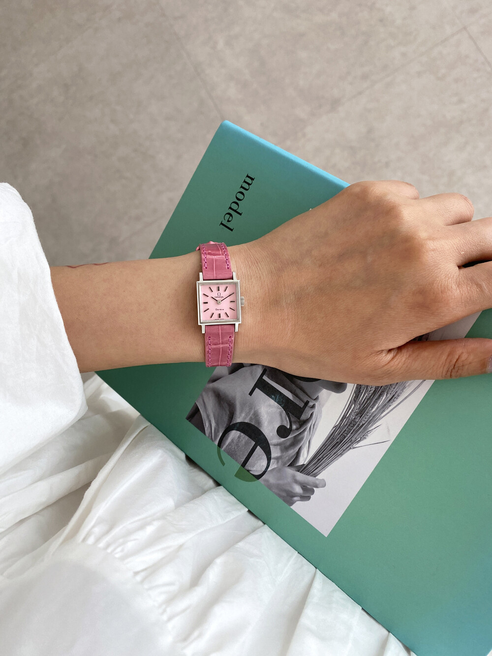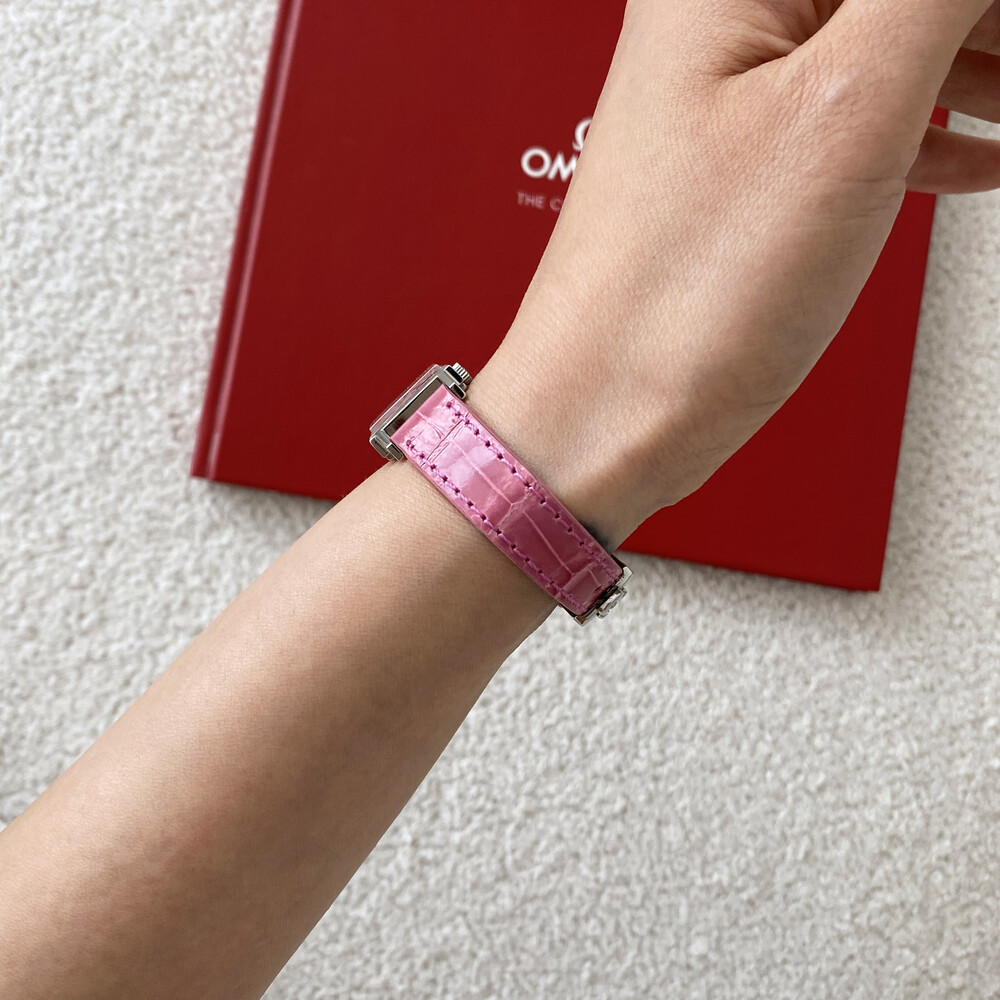 1974년도에 제작된 여성용 오메가 제네브 모델로 스퀘어 타입의 실버 케이스와
