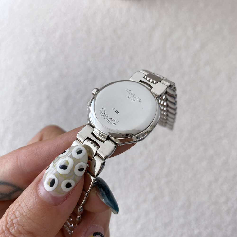 여성용으로 제작된 빈티지 디올 시계이며 스위스에서 생산된 쿼츠 무브먼트로 제작되었습니다.