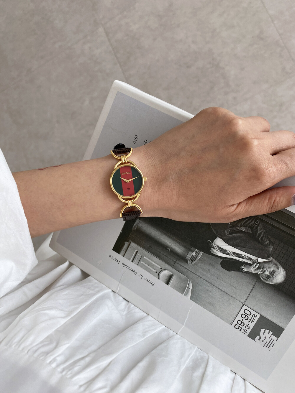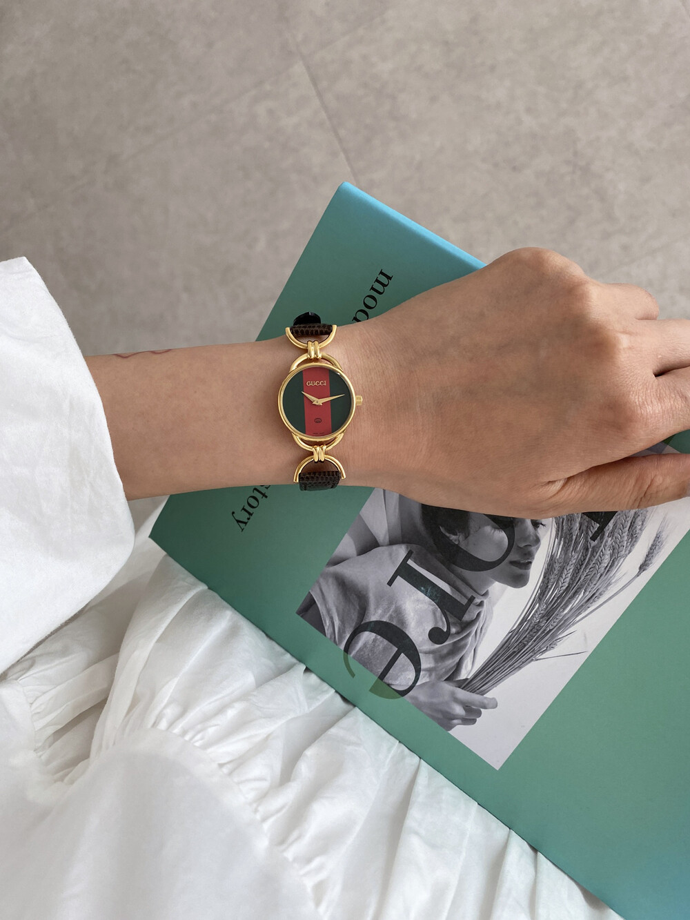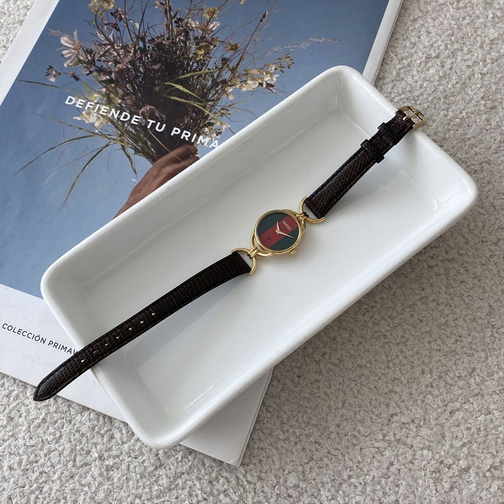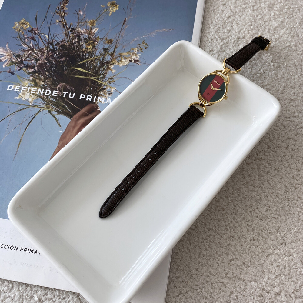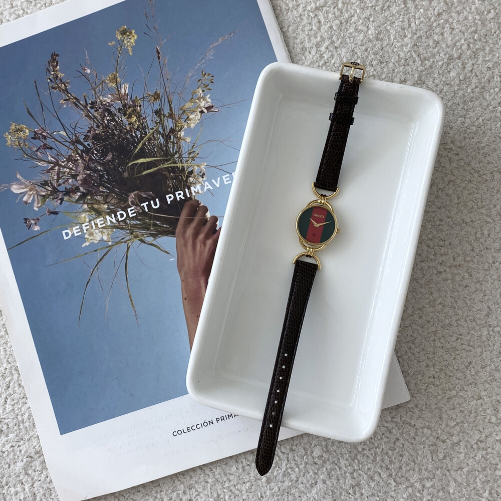 여성용으로 제작된 빈티지 구찌 시계이며 스위스에서 생산된 쿼츠 무브먼트로 제작되었습니다.