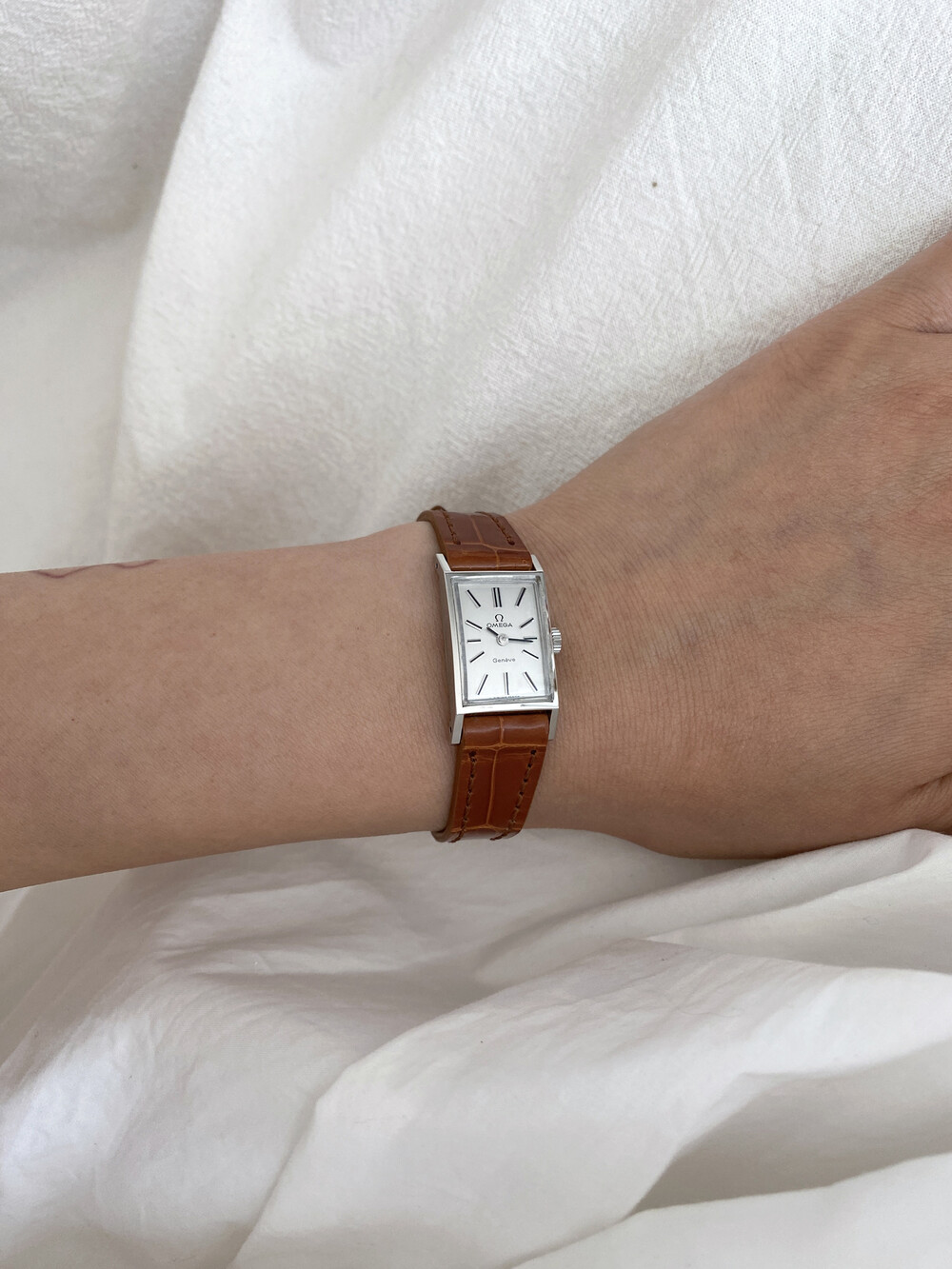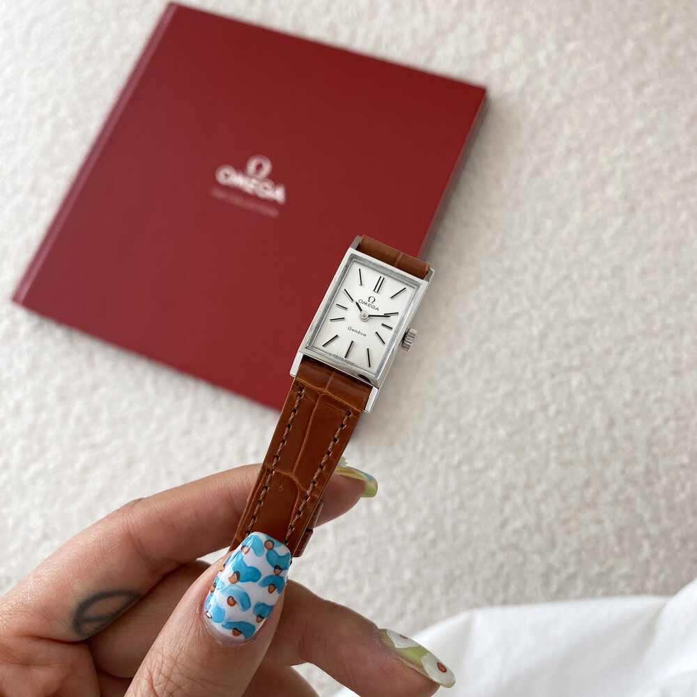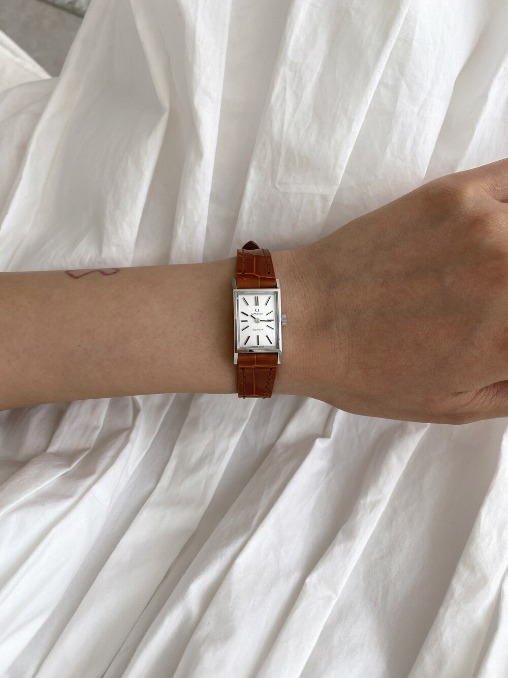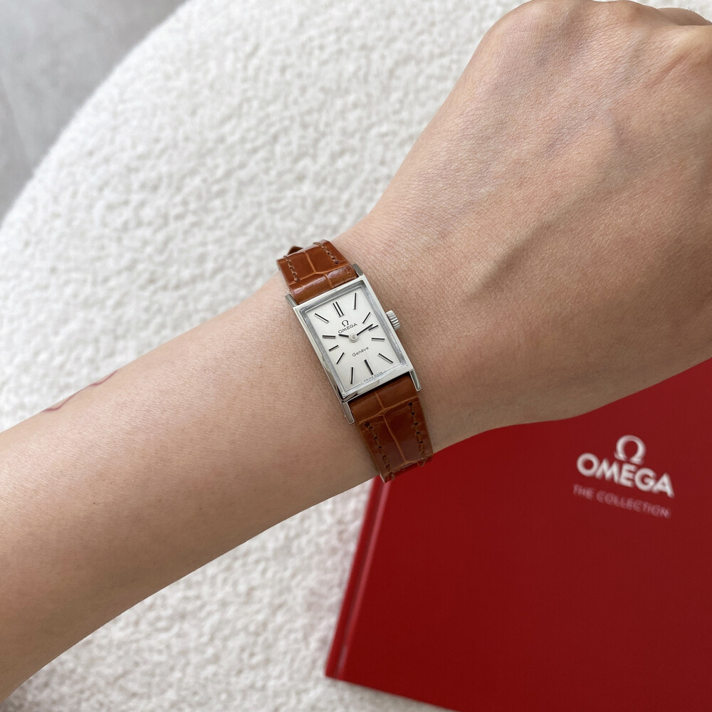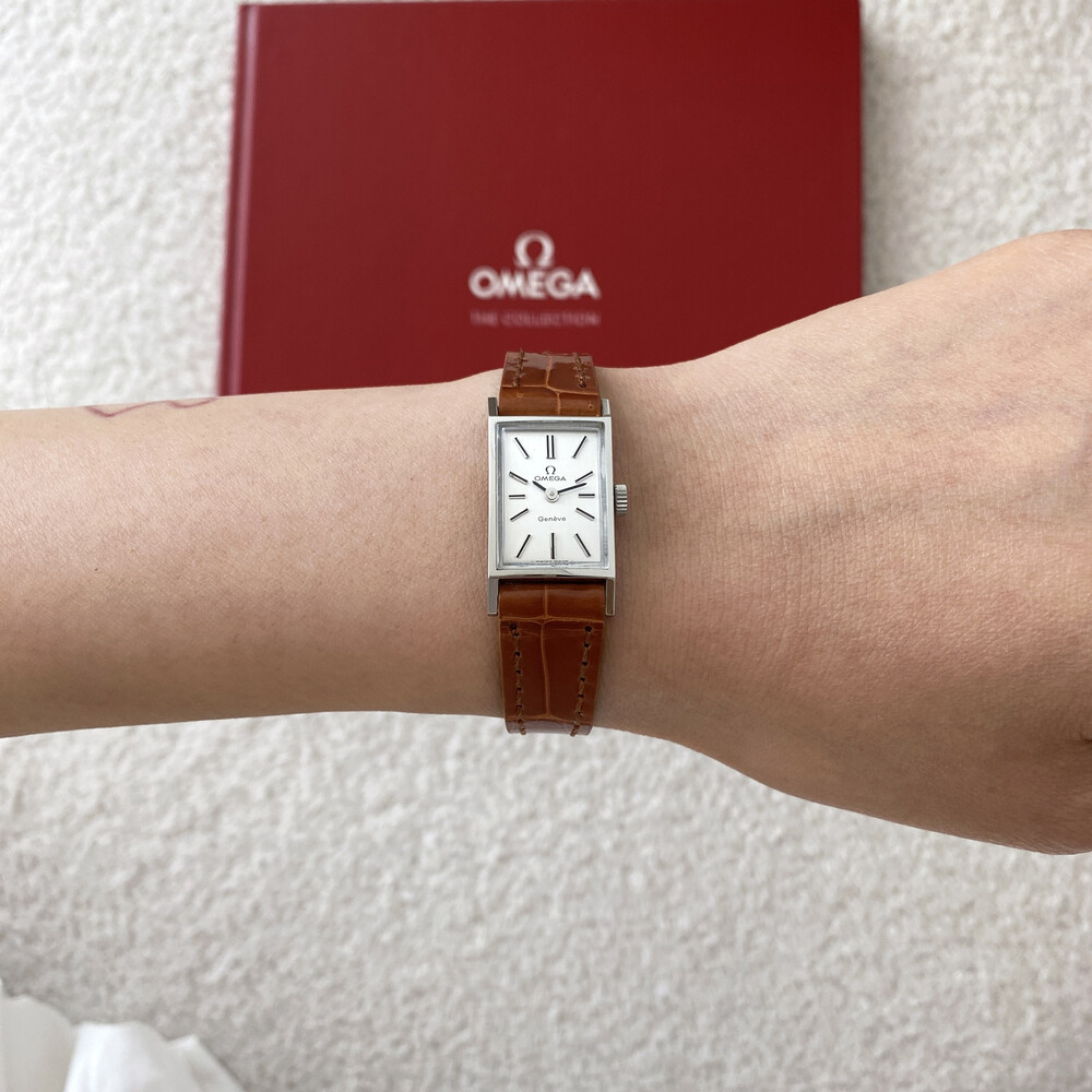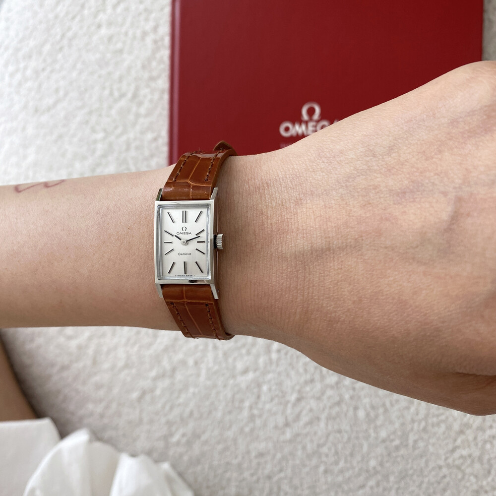 1970년도에 제작된 오메가 제네브 모델로 클래식한 스퀘어 케이스와
