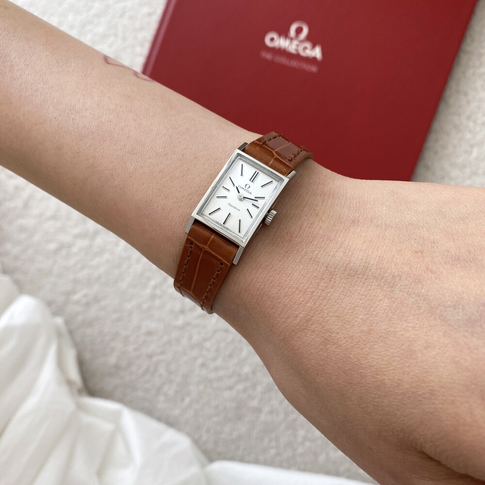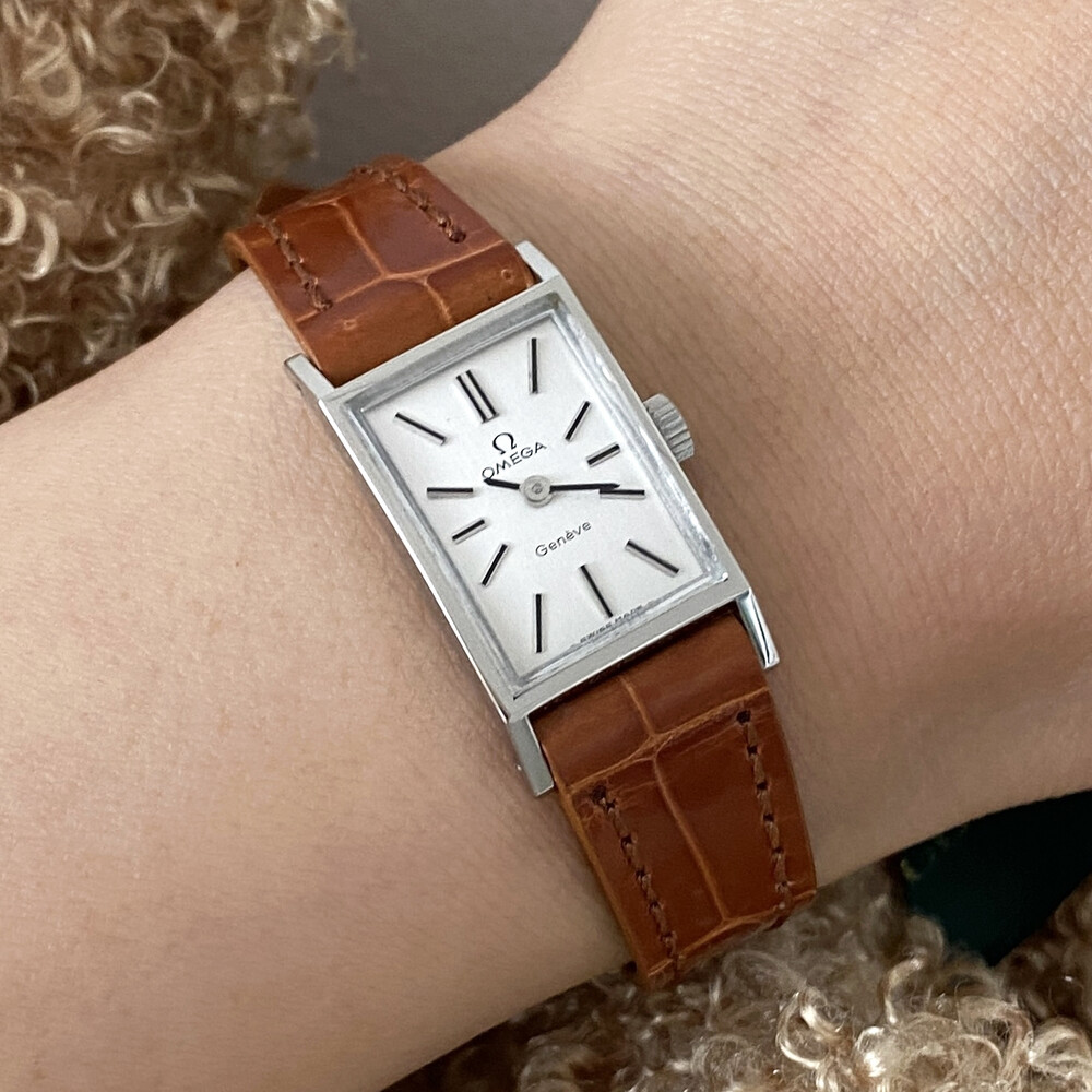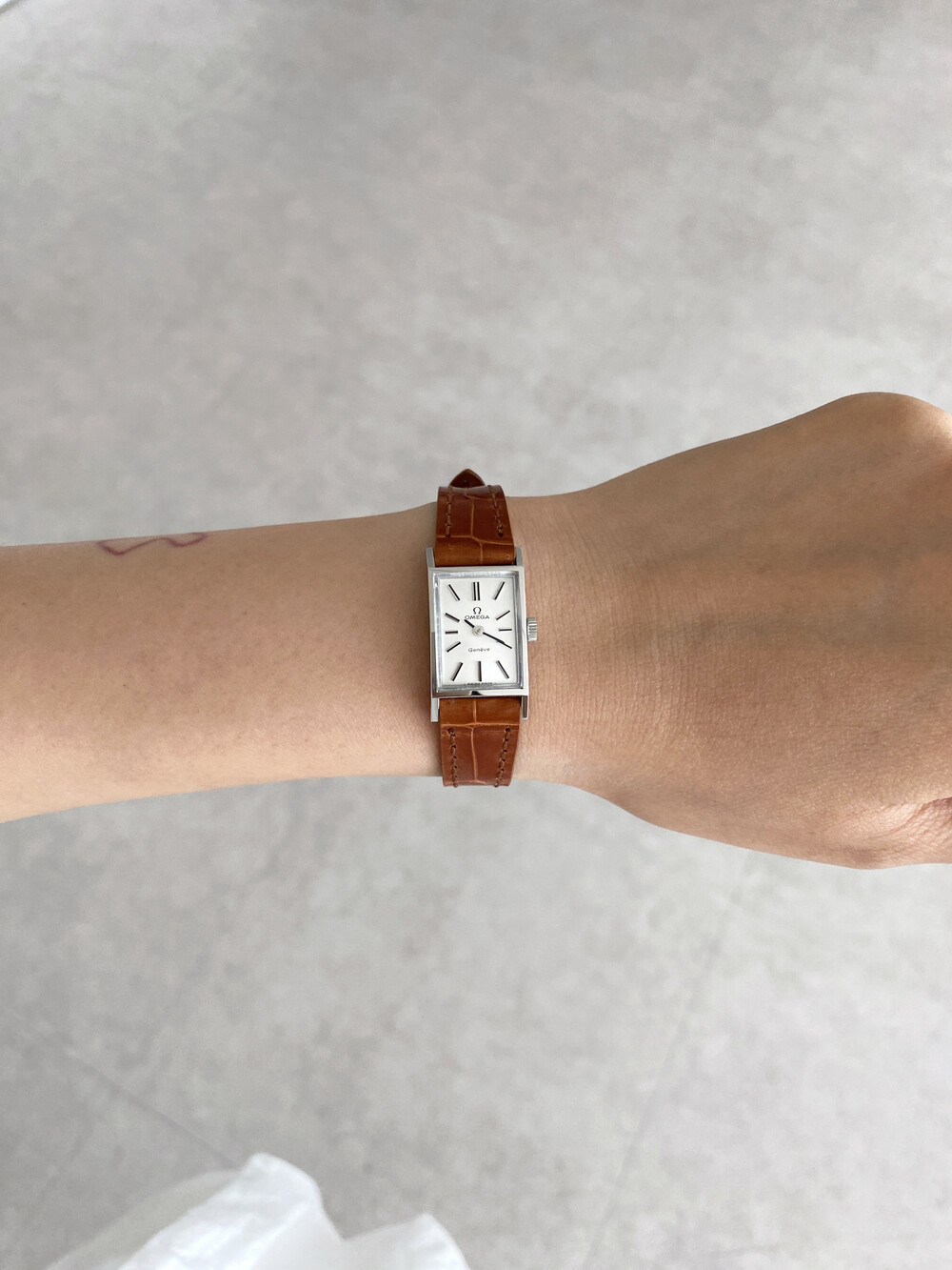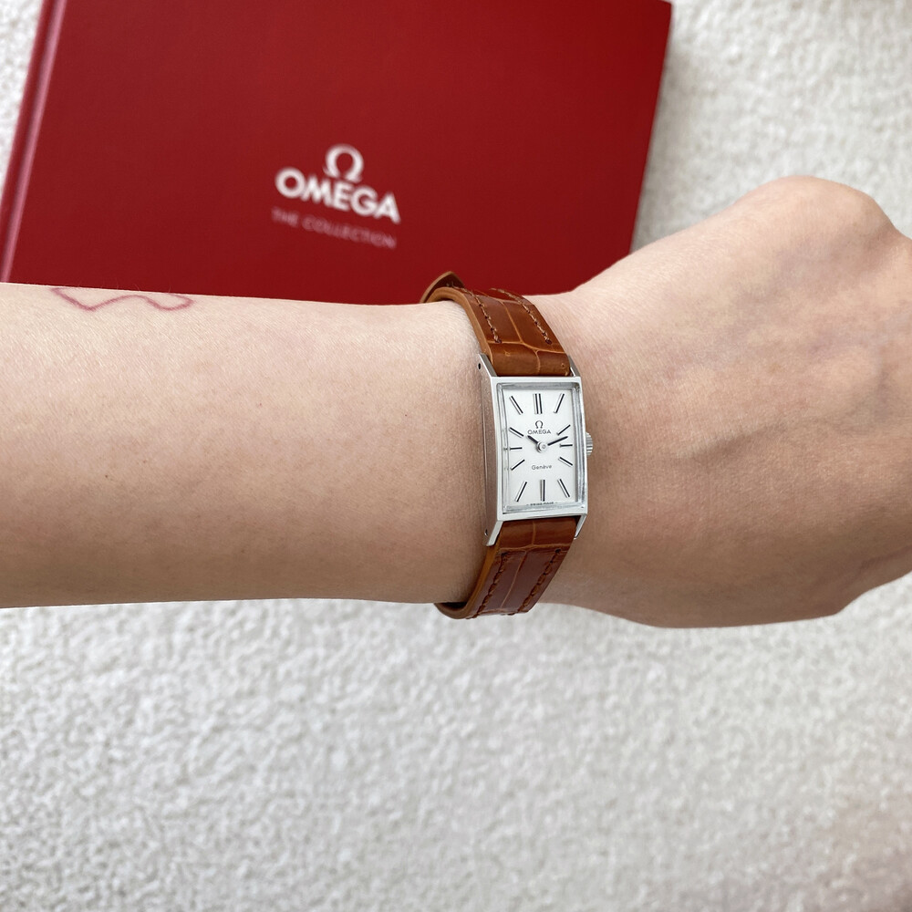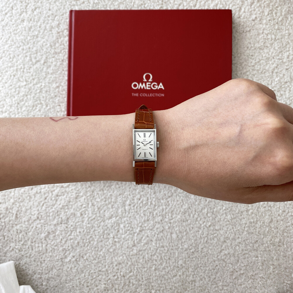 1970년도에 제작된 오메가 제네브 모델로 클래식한 스퀘어 케이스와