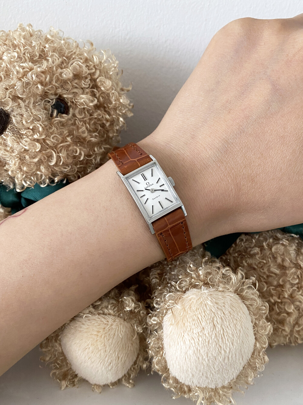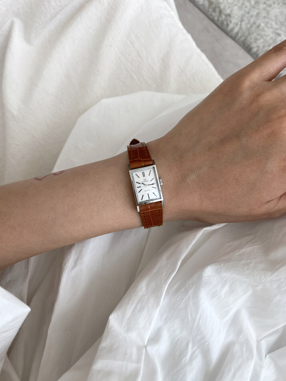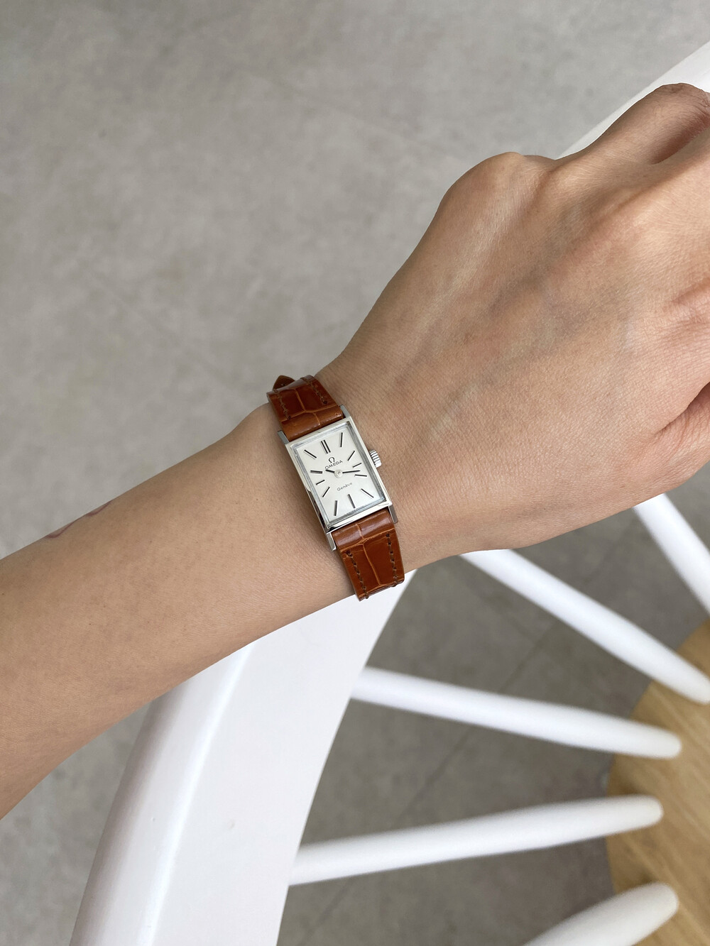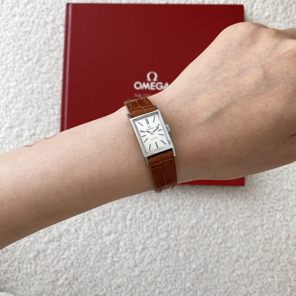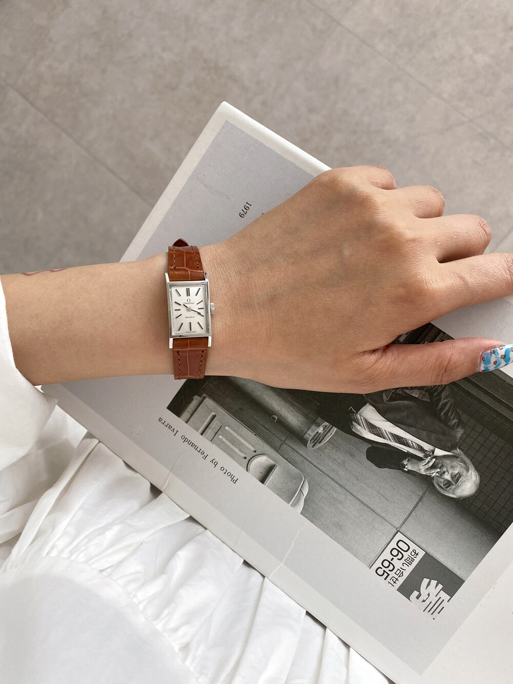 1970년도에 제작된 오메가 제네브 모델로 클래식한 스퀘어 케이스와