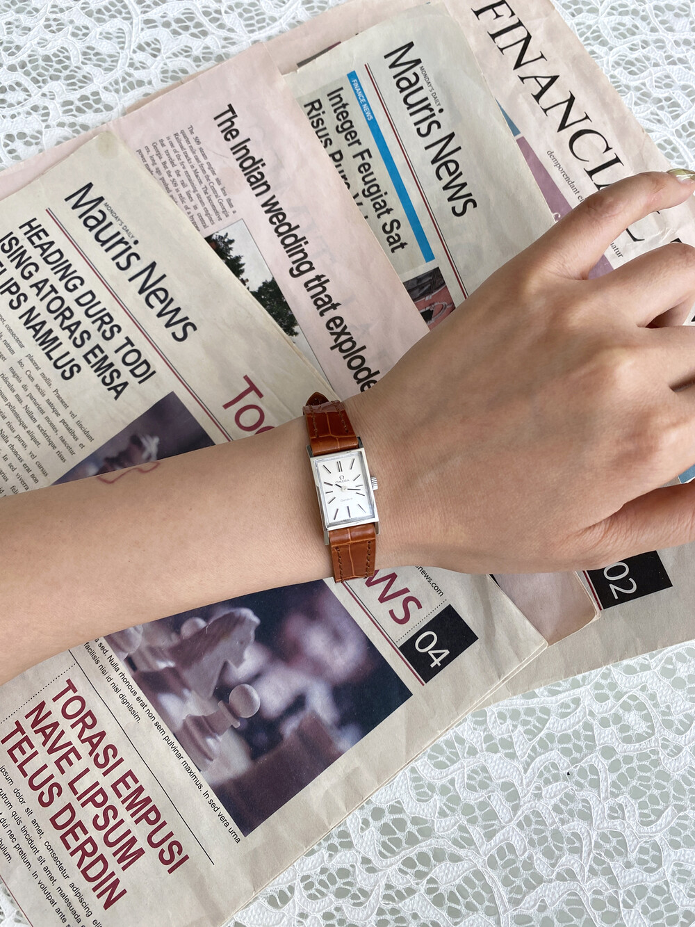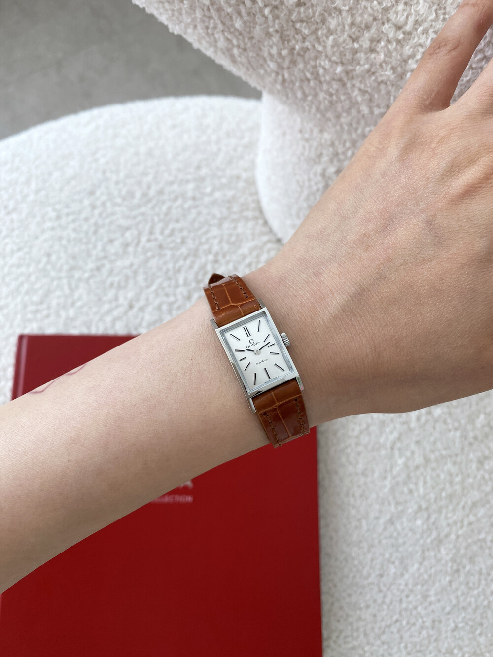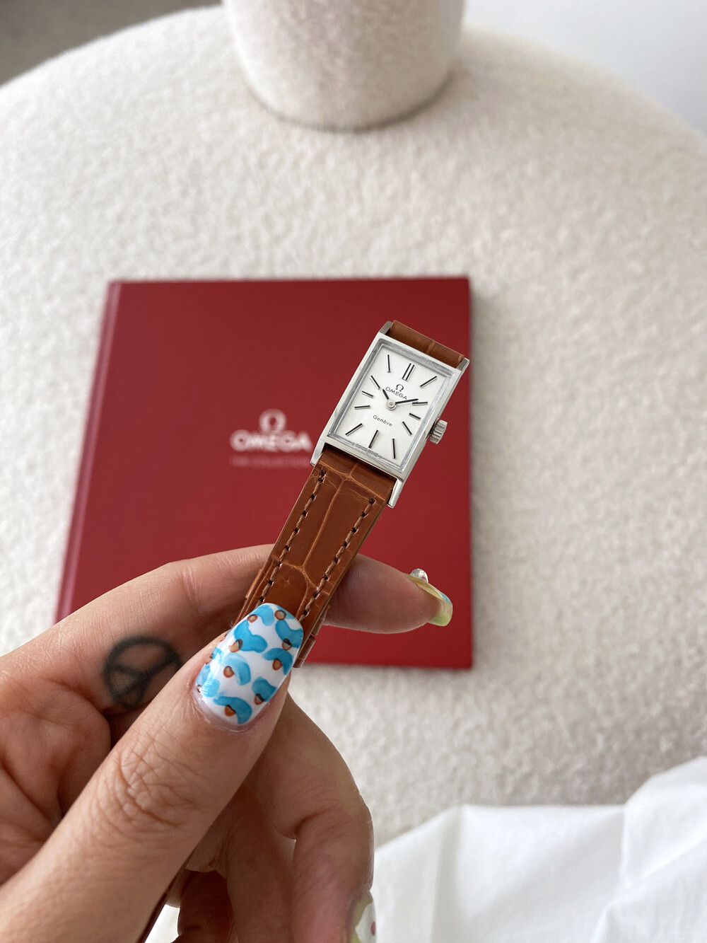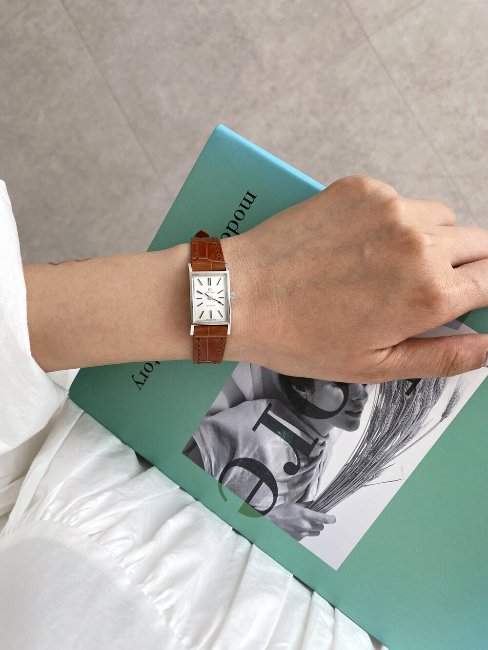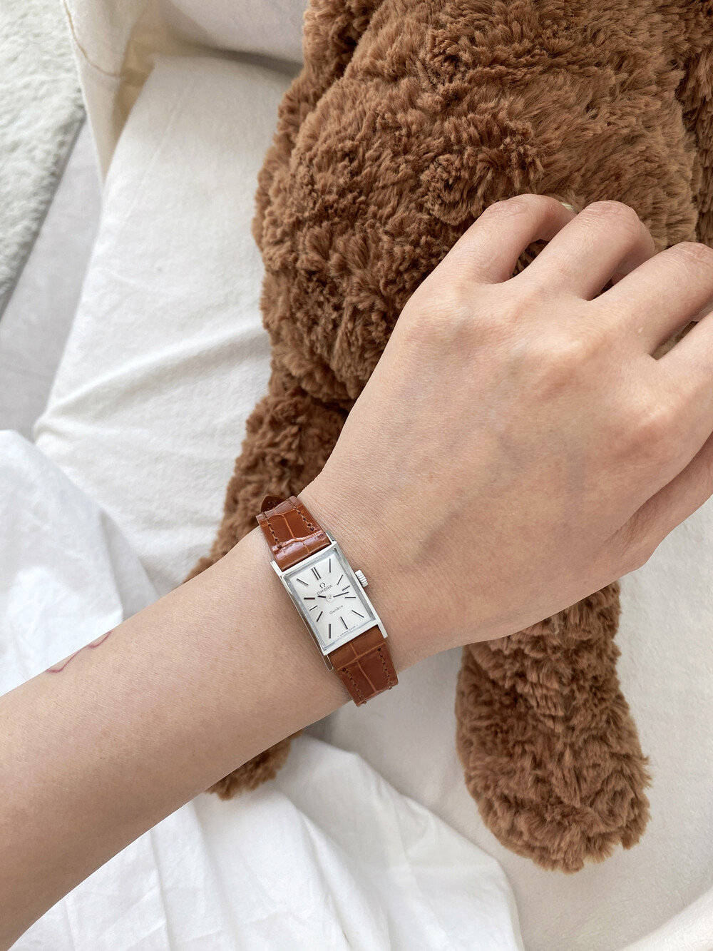 1970년도에 제작된 오메가 제네브 모델로 클래식한 스퀘어 케이스와