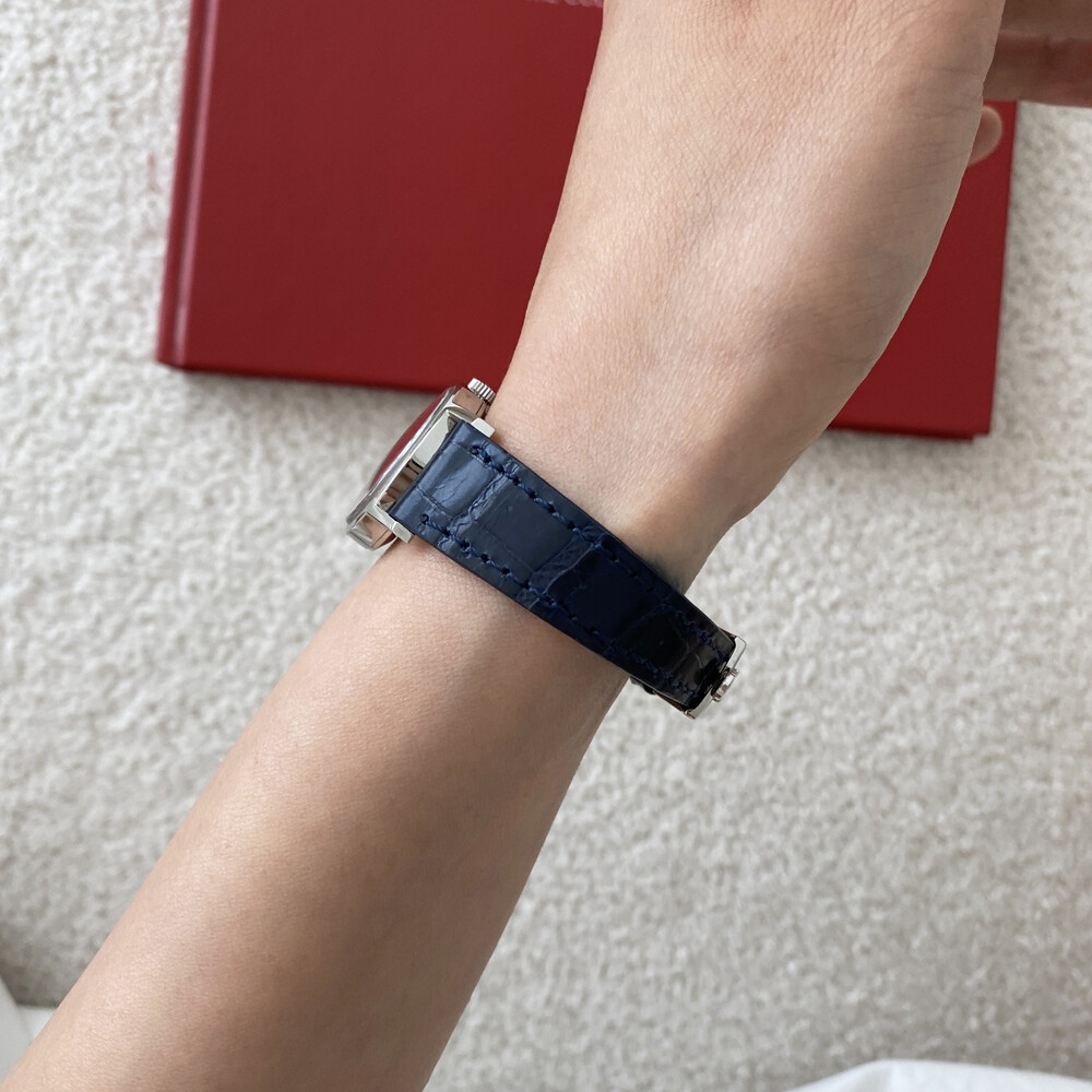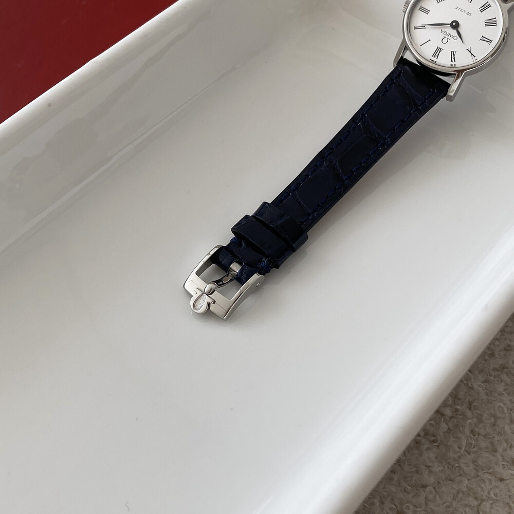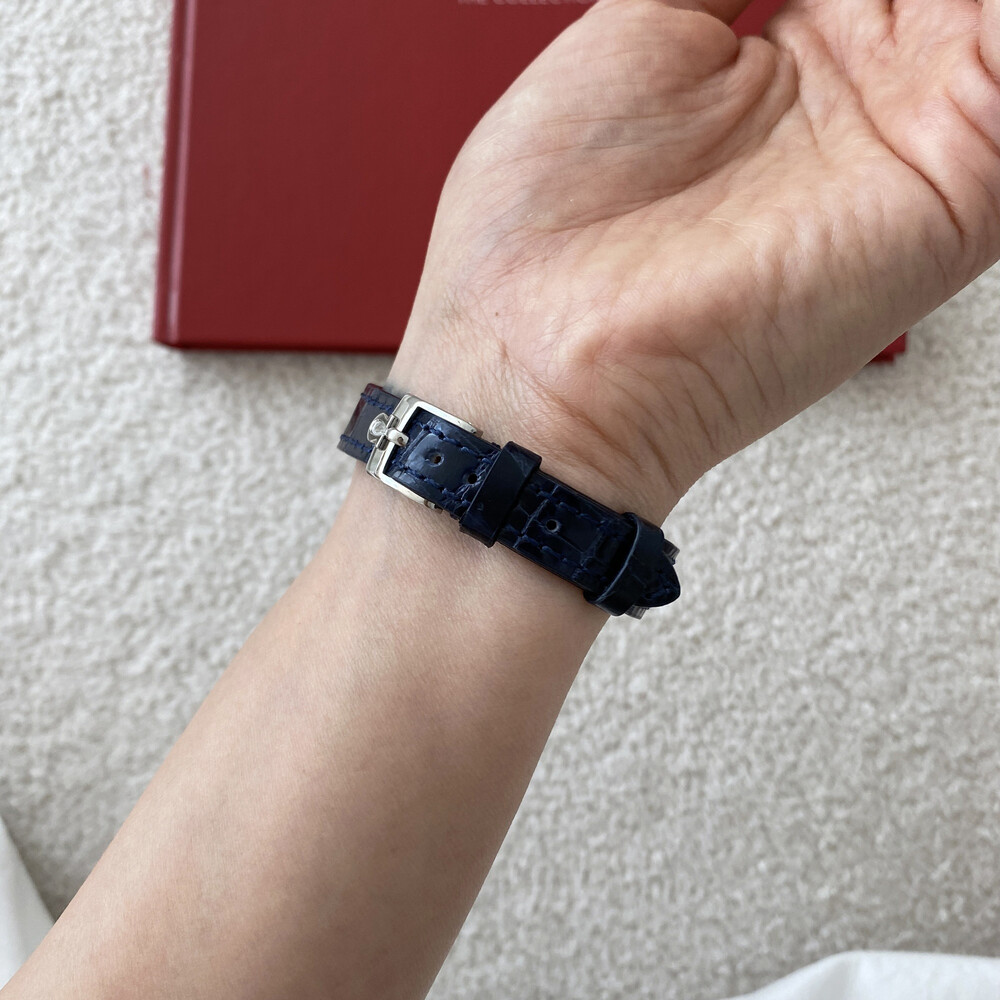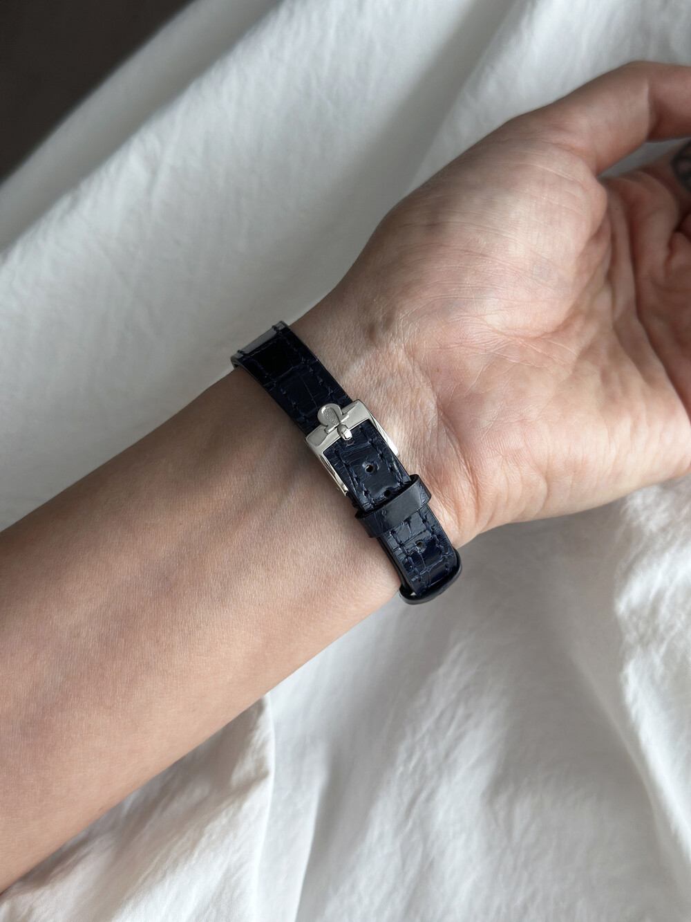시계줄은 네이비 컬러의 악어가죽으로 맞춤 제작하였습니다.