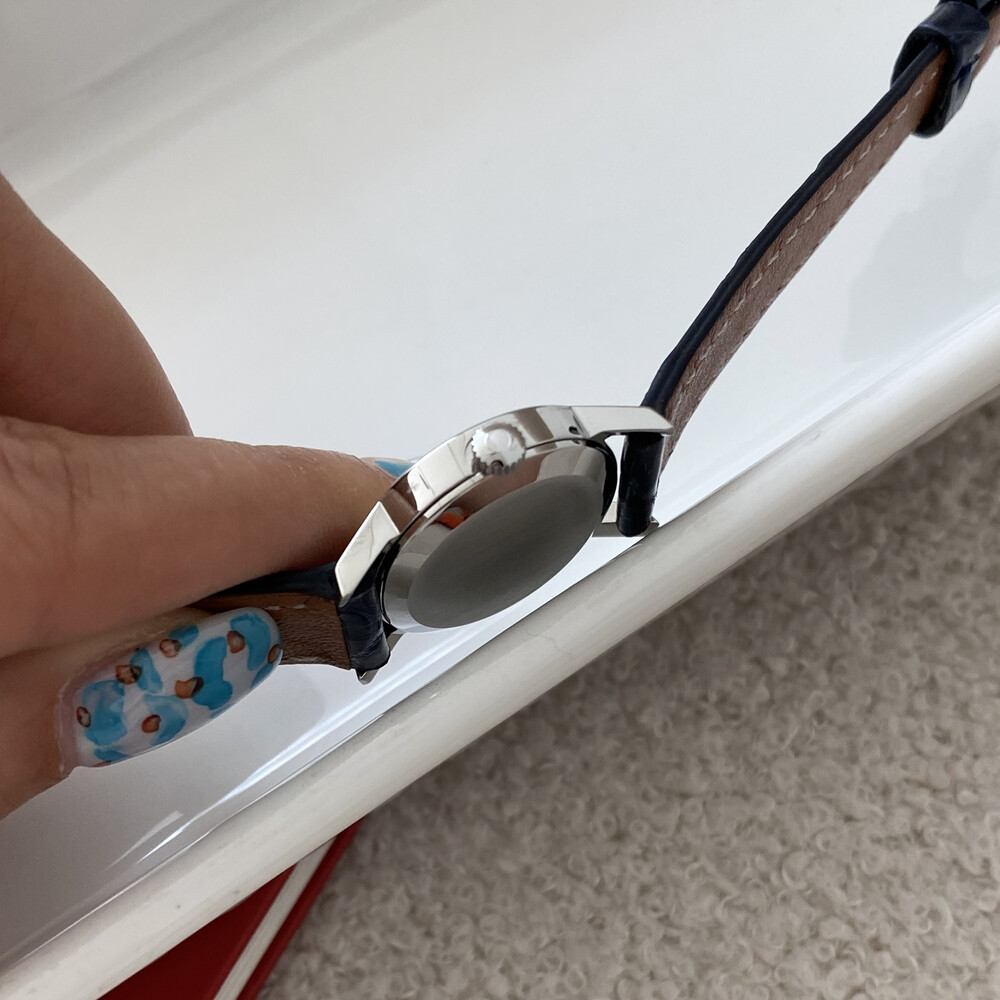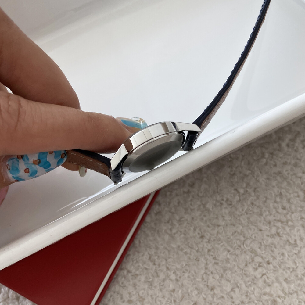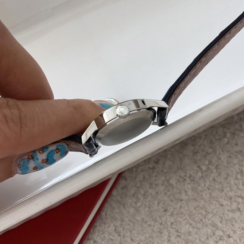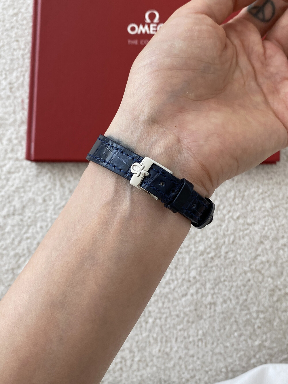 시계줄은 네이비 컬러의 악어가죽으로 맞춤 제작하였습니다.