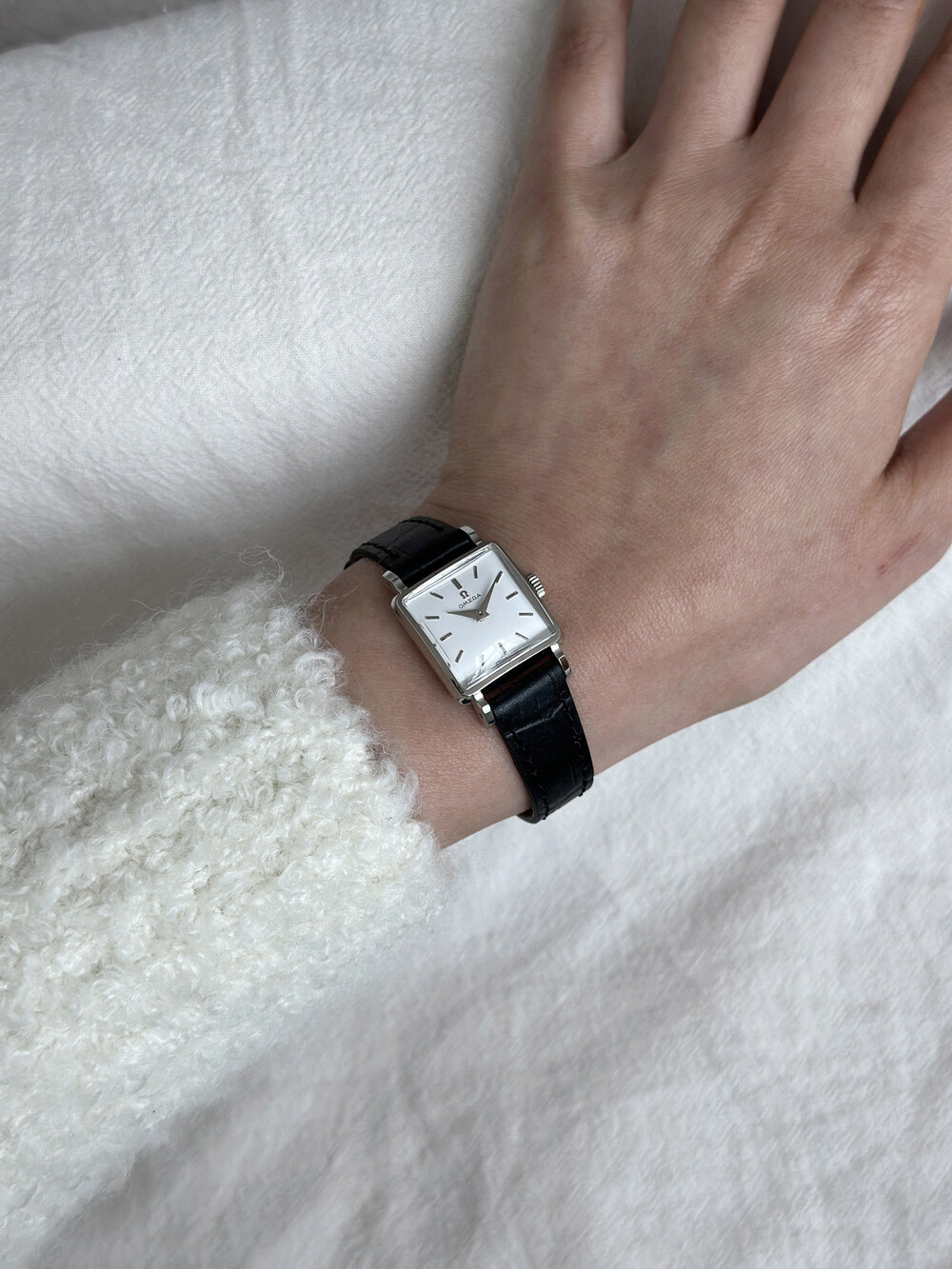 1956년도에 제작된 오메가 모델로 깔끔한 화이트 다이얼과