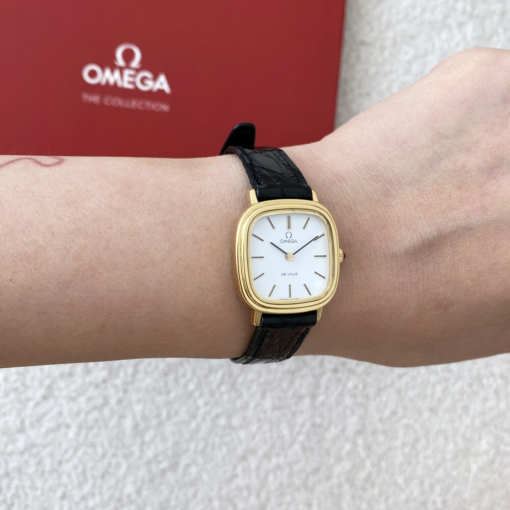 1978년도에 제작된 오메가 드빌 모델로 깔끔한 화이트 다이얼과