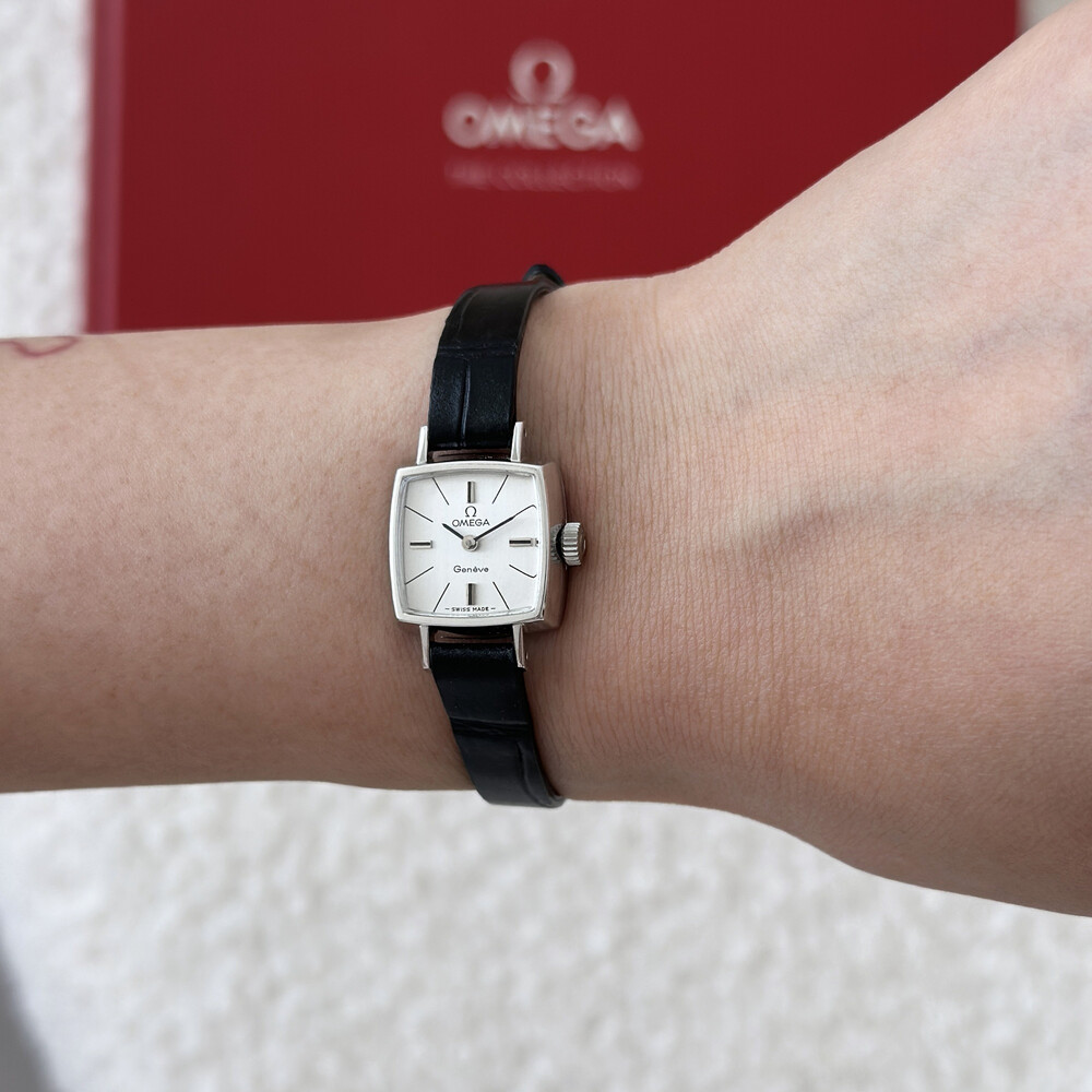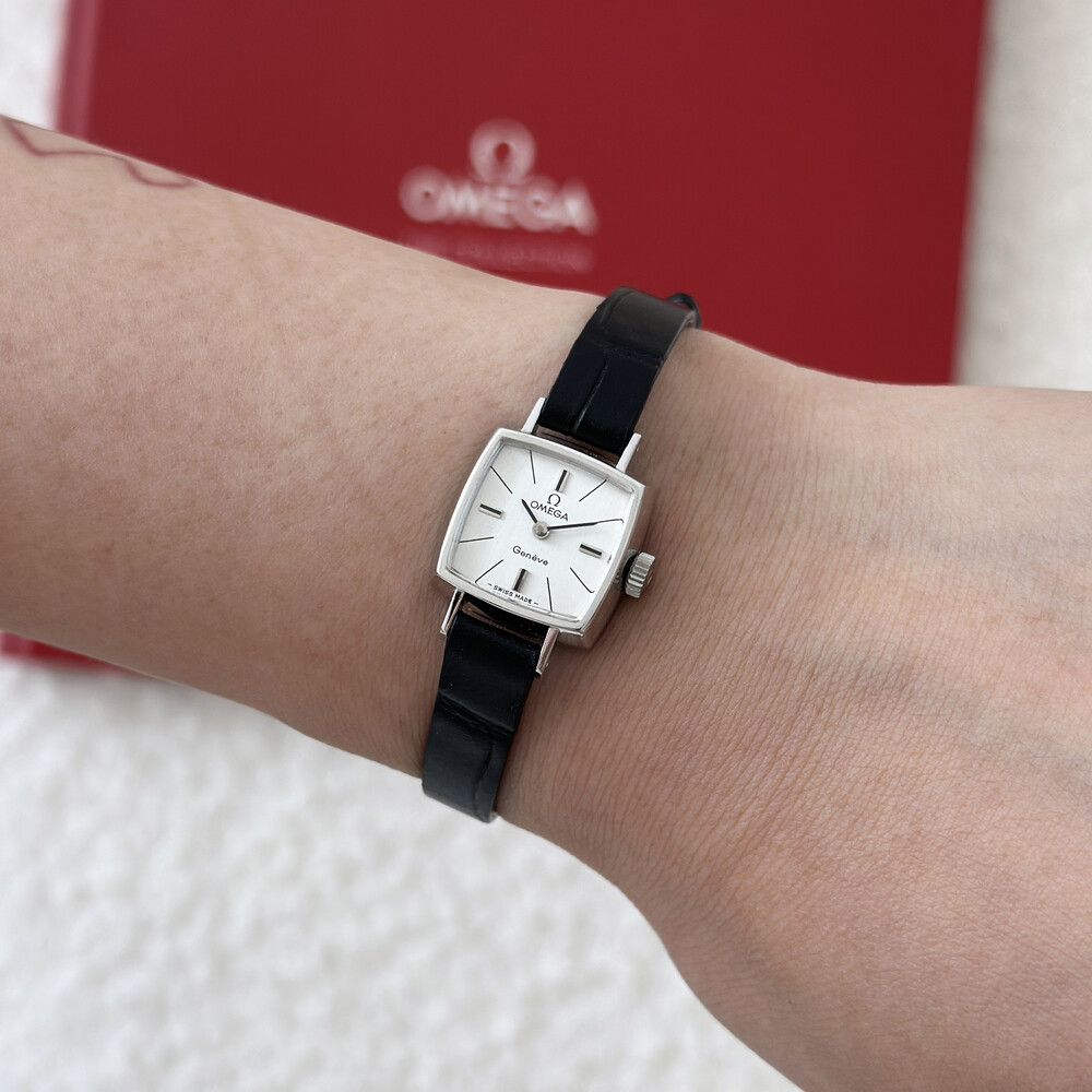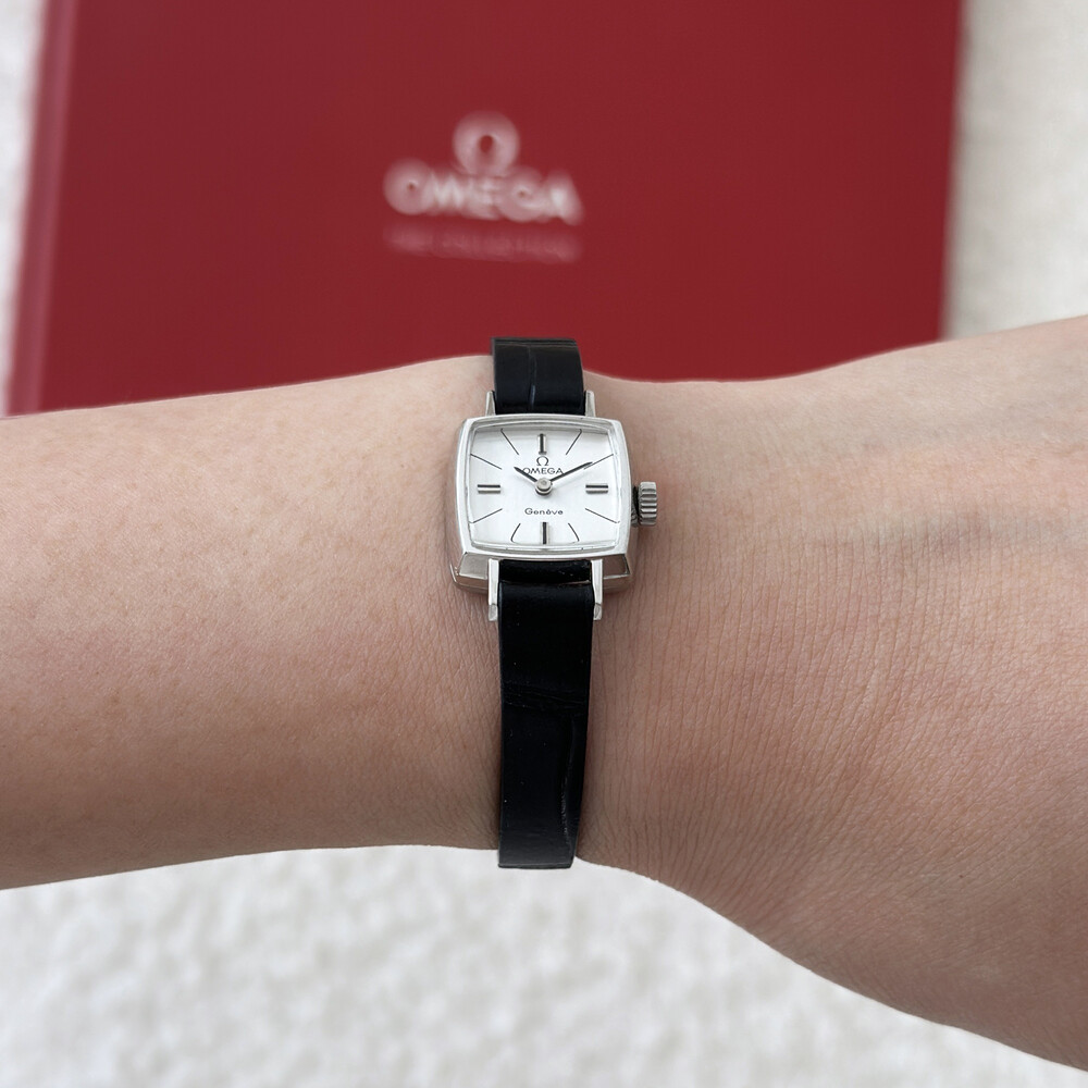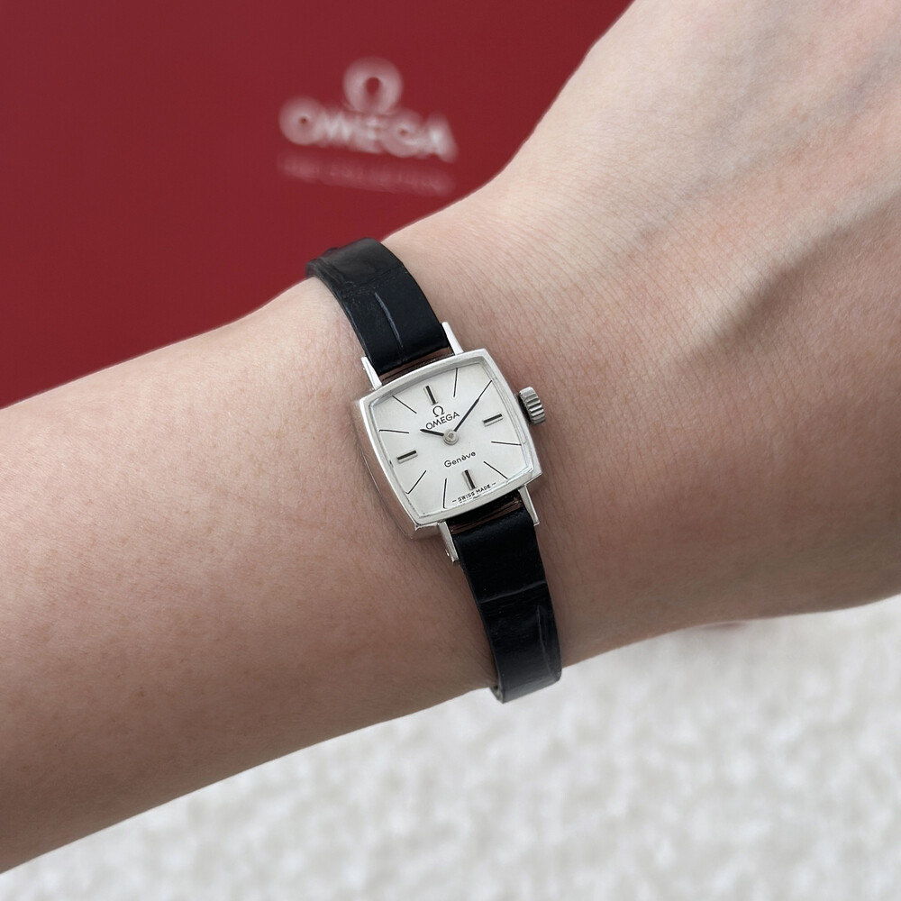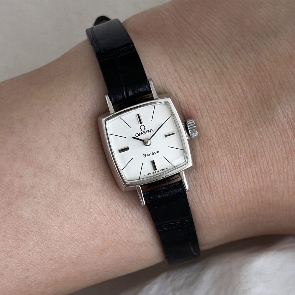 1970년도에 제작된 오메가 제네브 모델로 클래식한 스퀘어 케이스와