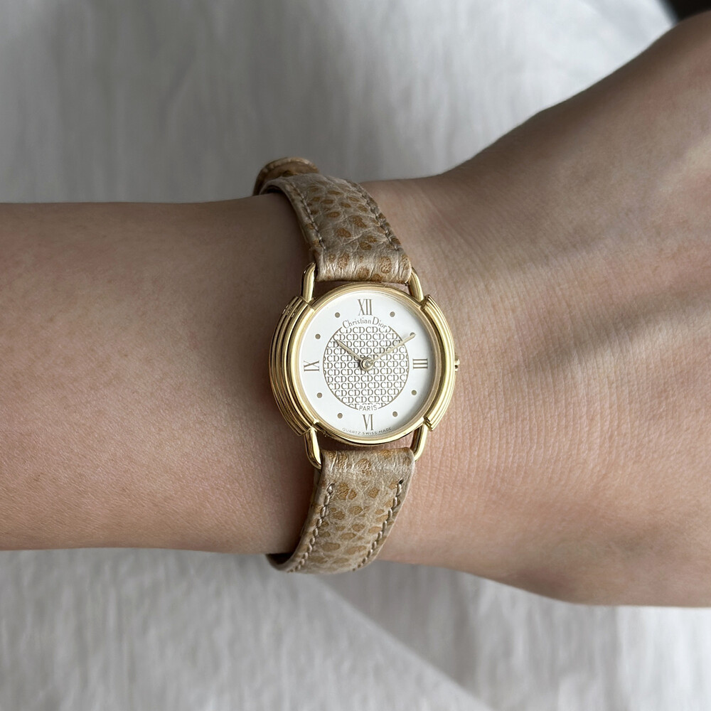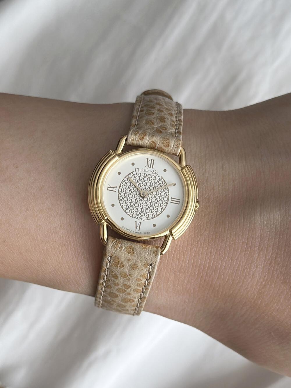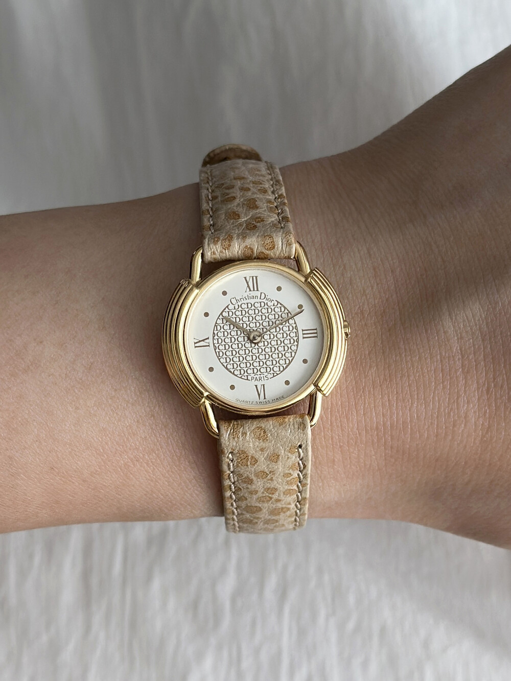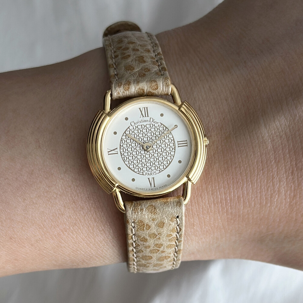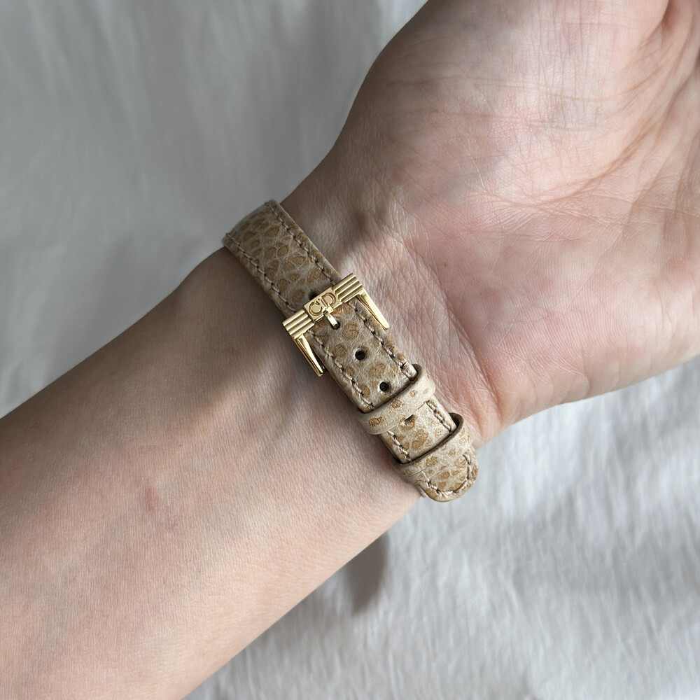 여성용으로 제작된 디올 시계이며 스위스 쿼츠 무브먼트로 제작되었습니다.