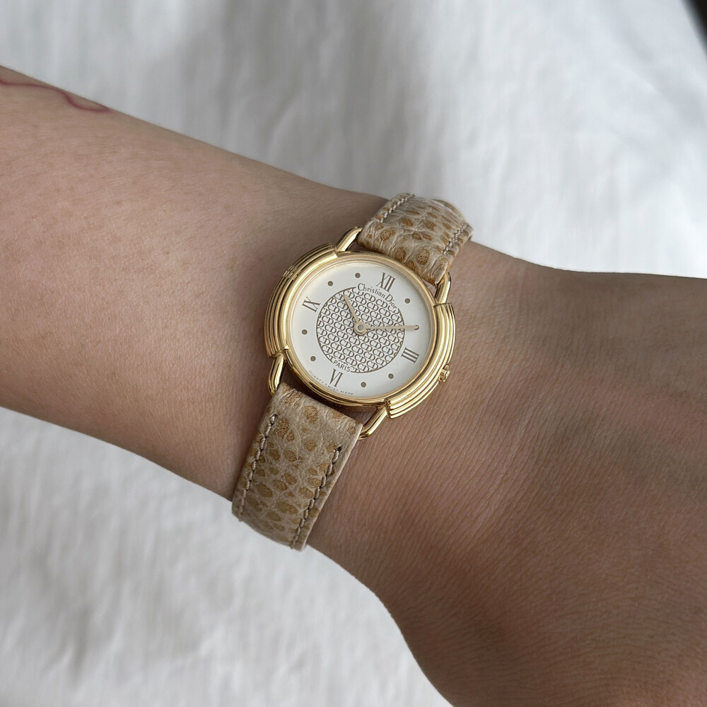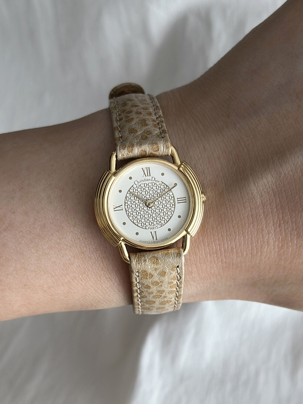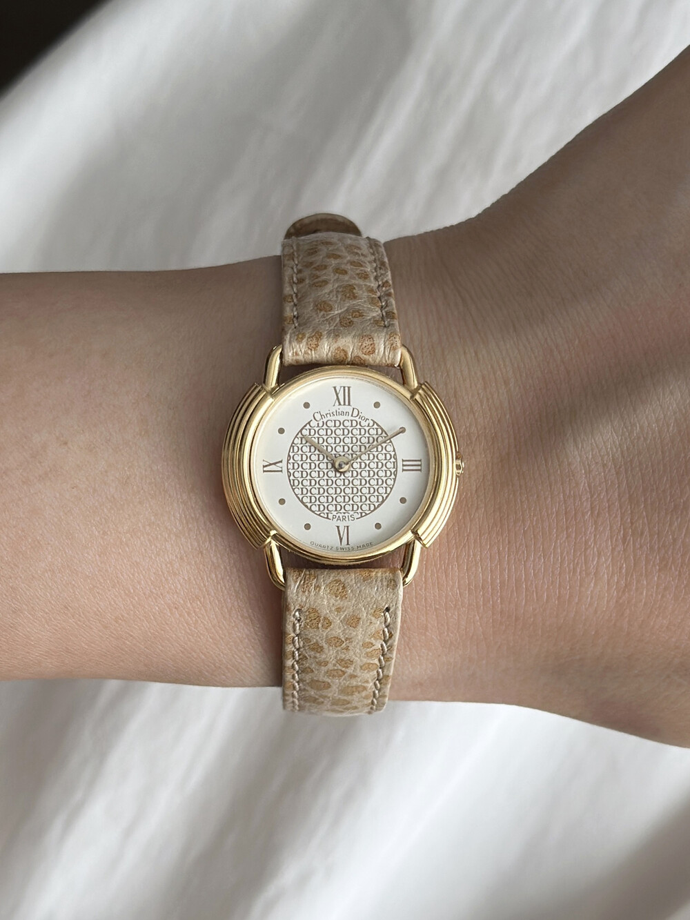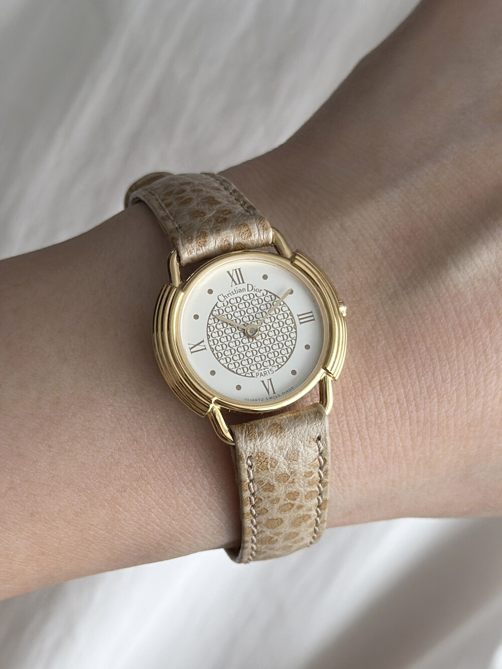 여성용으로 제작된 디올 시계이며 스위스 쿼츠 무브먼트로 제작되었습니다.