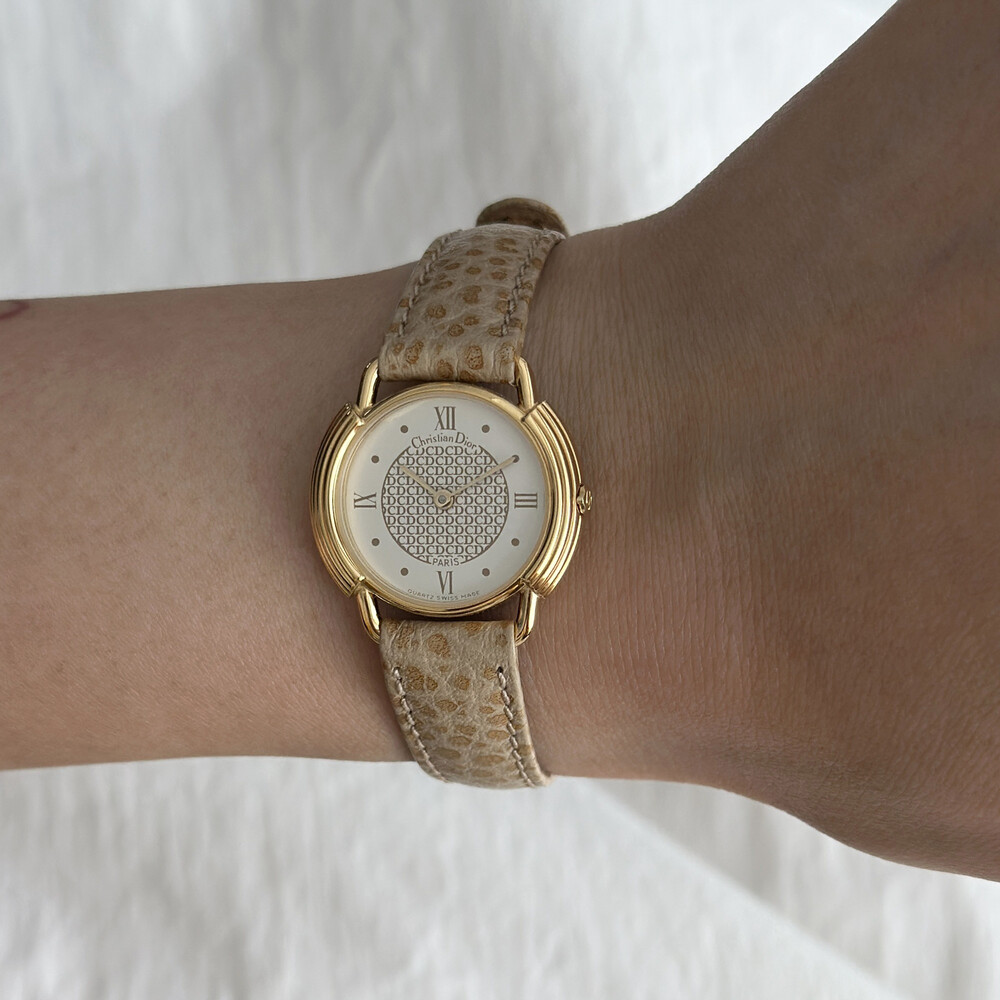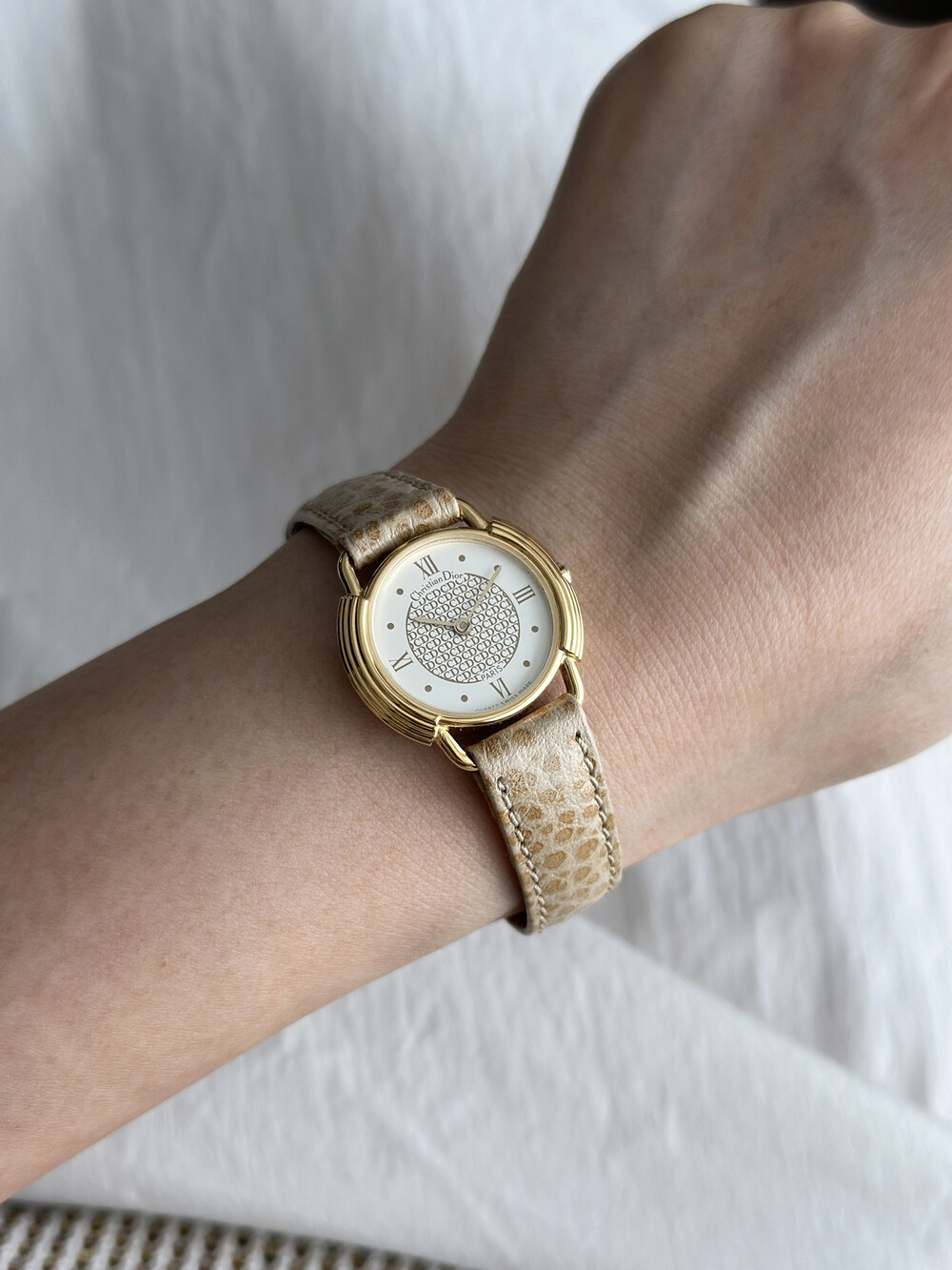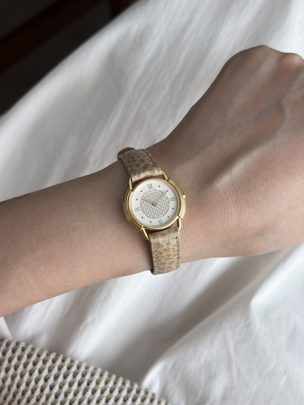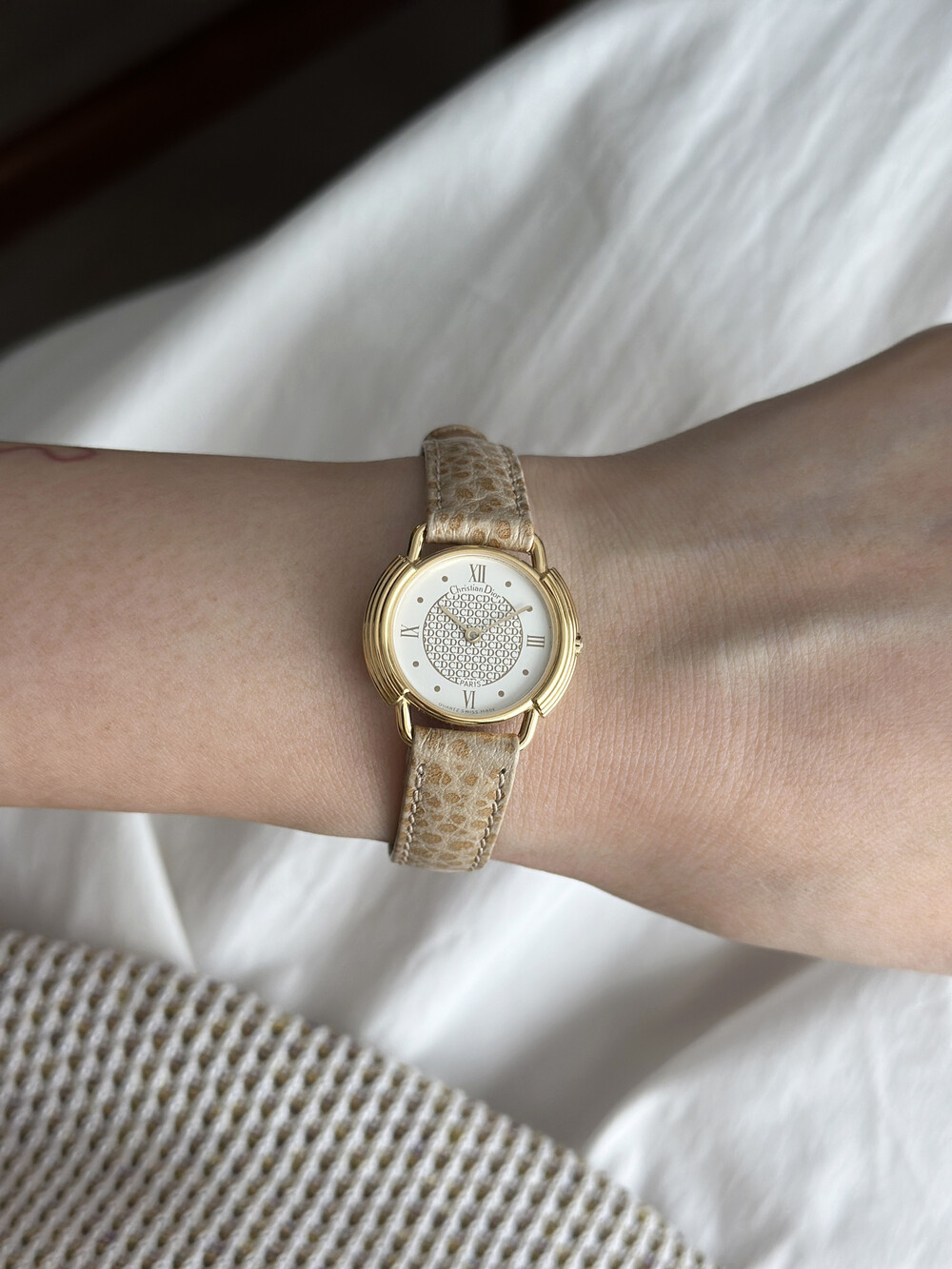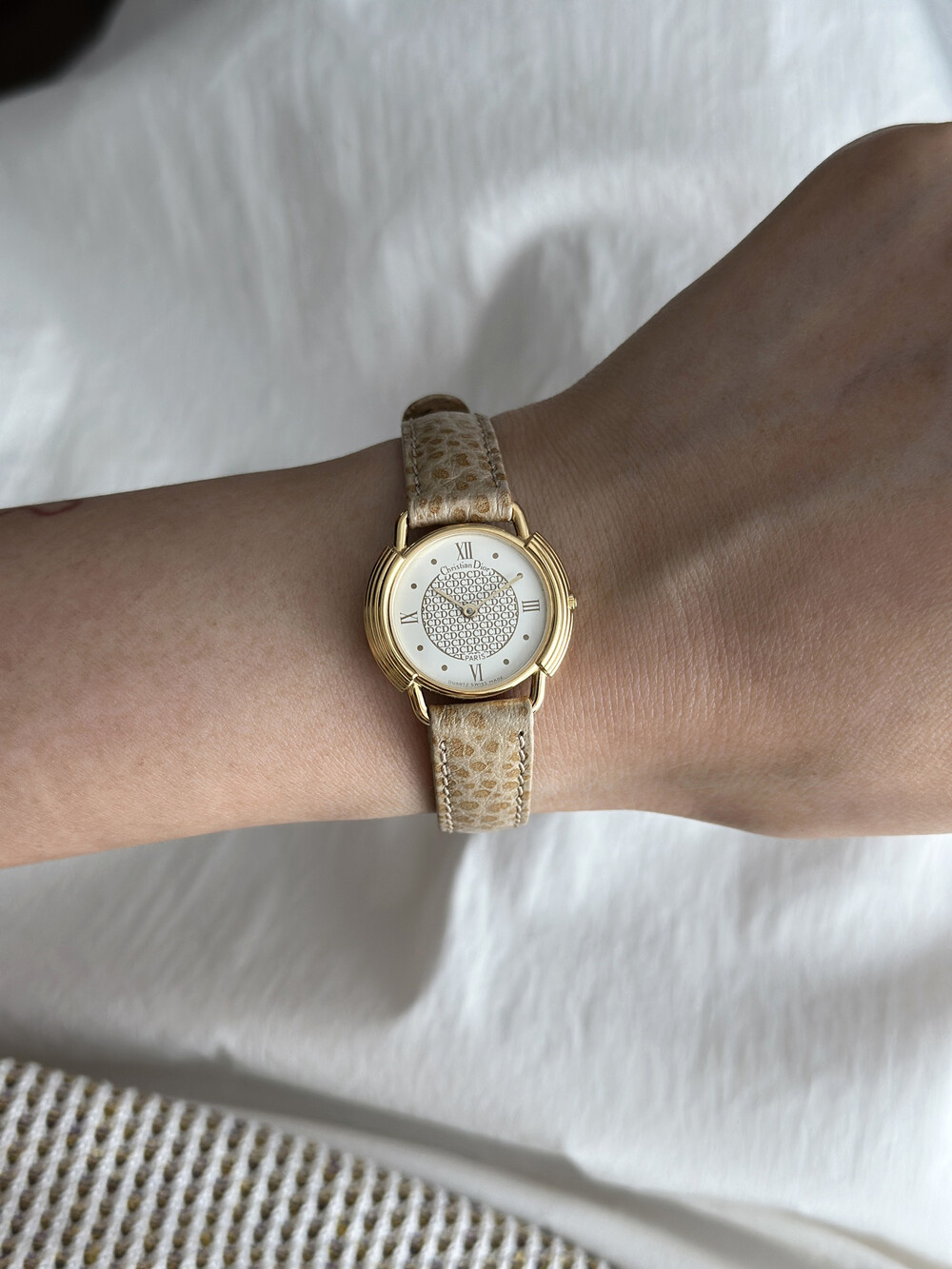 여성용으로 제작된 디올 시계이며 스위스 쿼츠 무브먼트로 제작되었습니다.