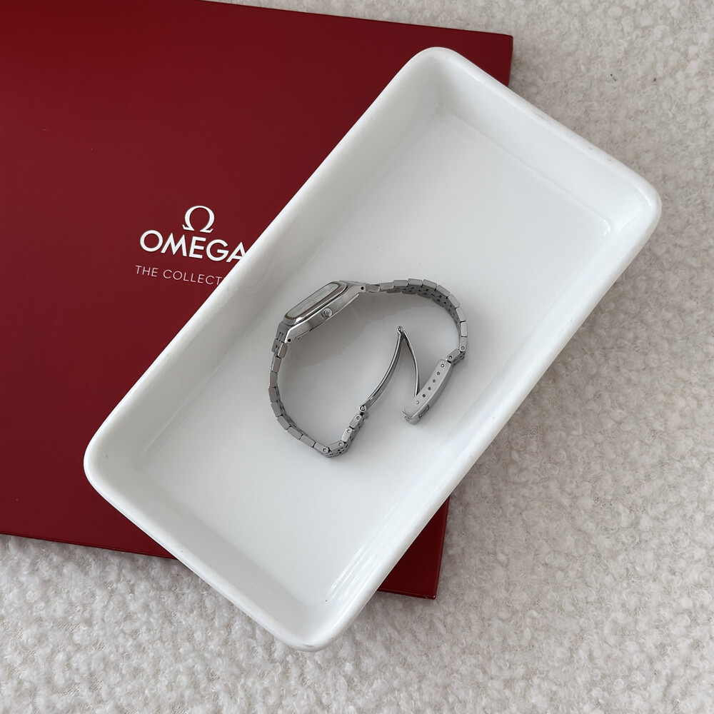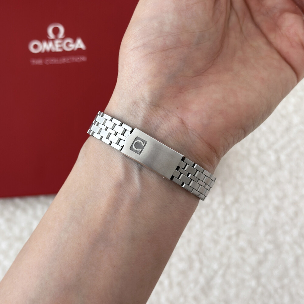 깔끔한 실버 다이얼 위를 장식하는 오메가 심볼이 매력적인 모델입니다.