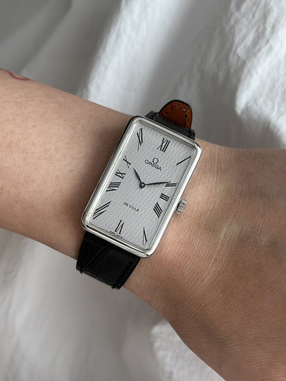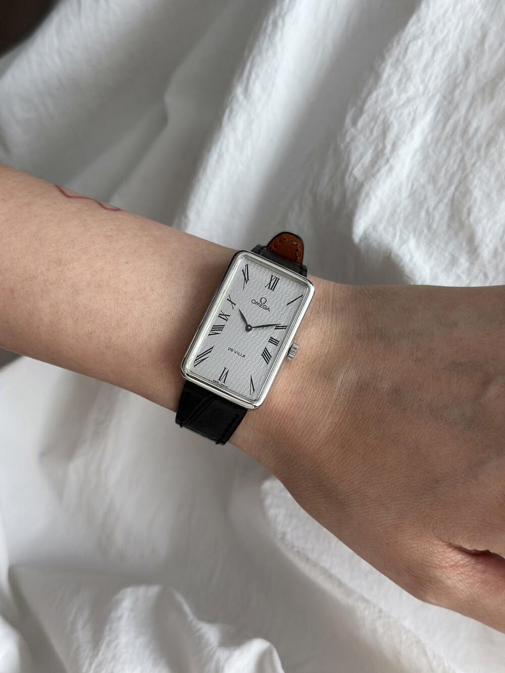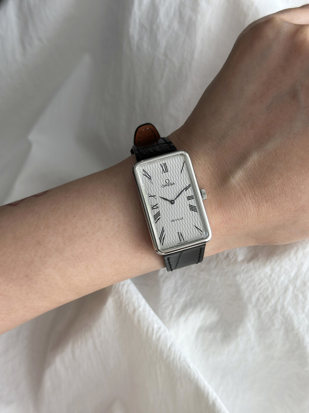 1971년도에 제작된 오메가 드빌 모델로 깔끔한 실버톤 다이얼과