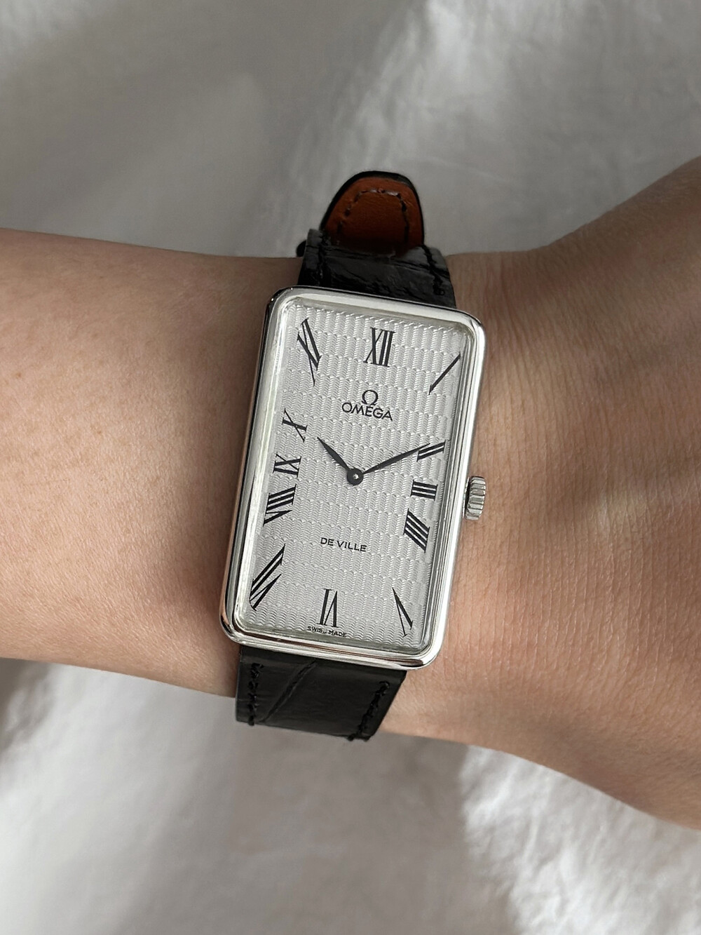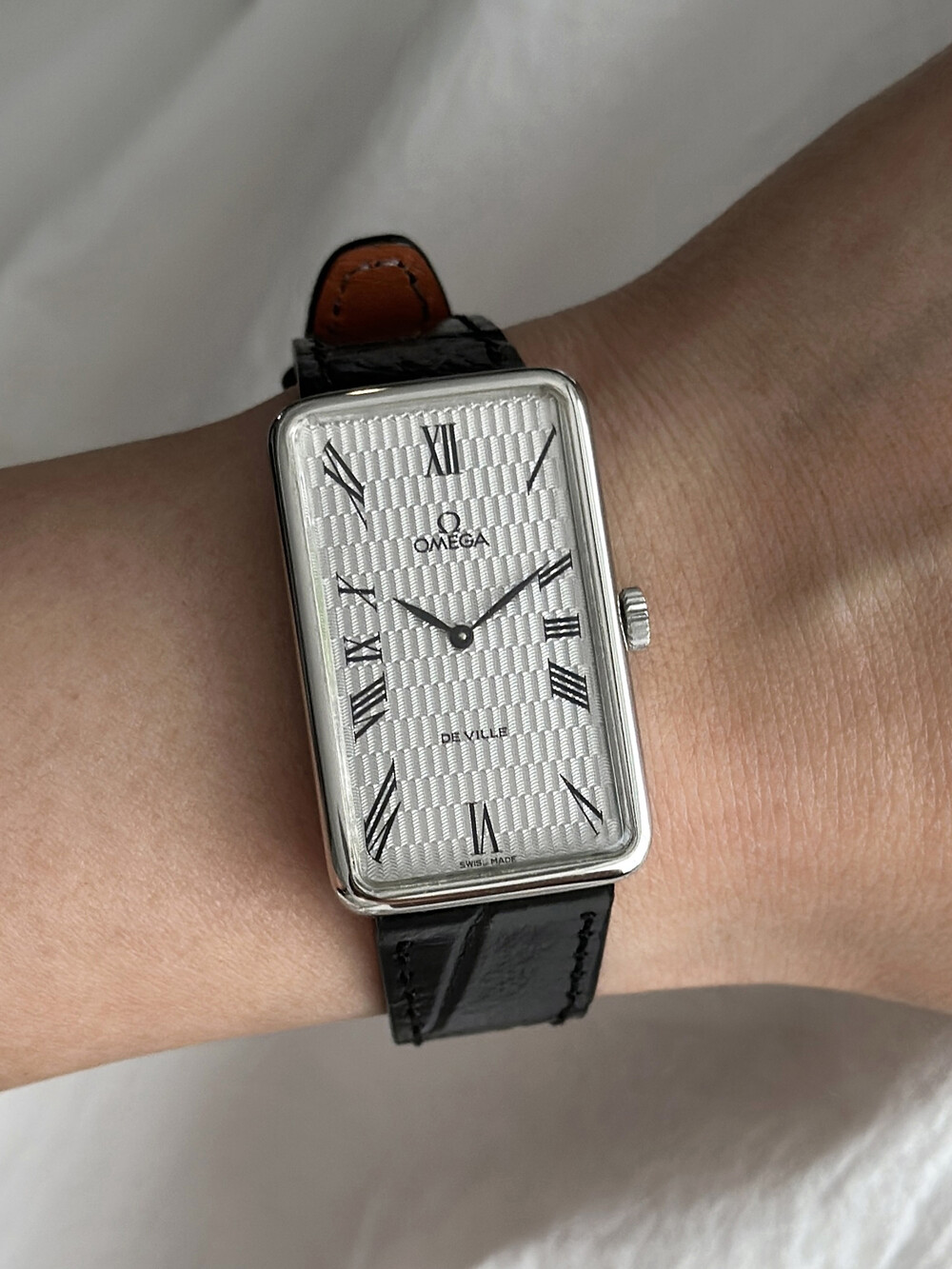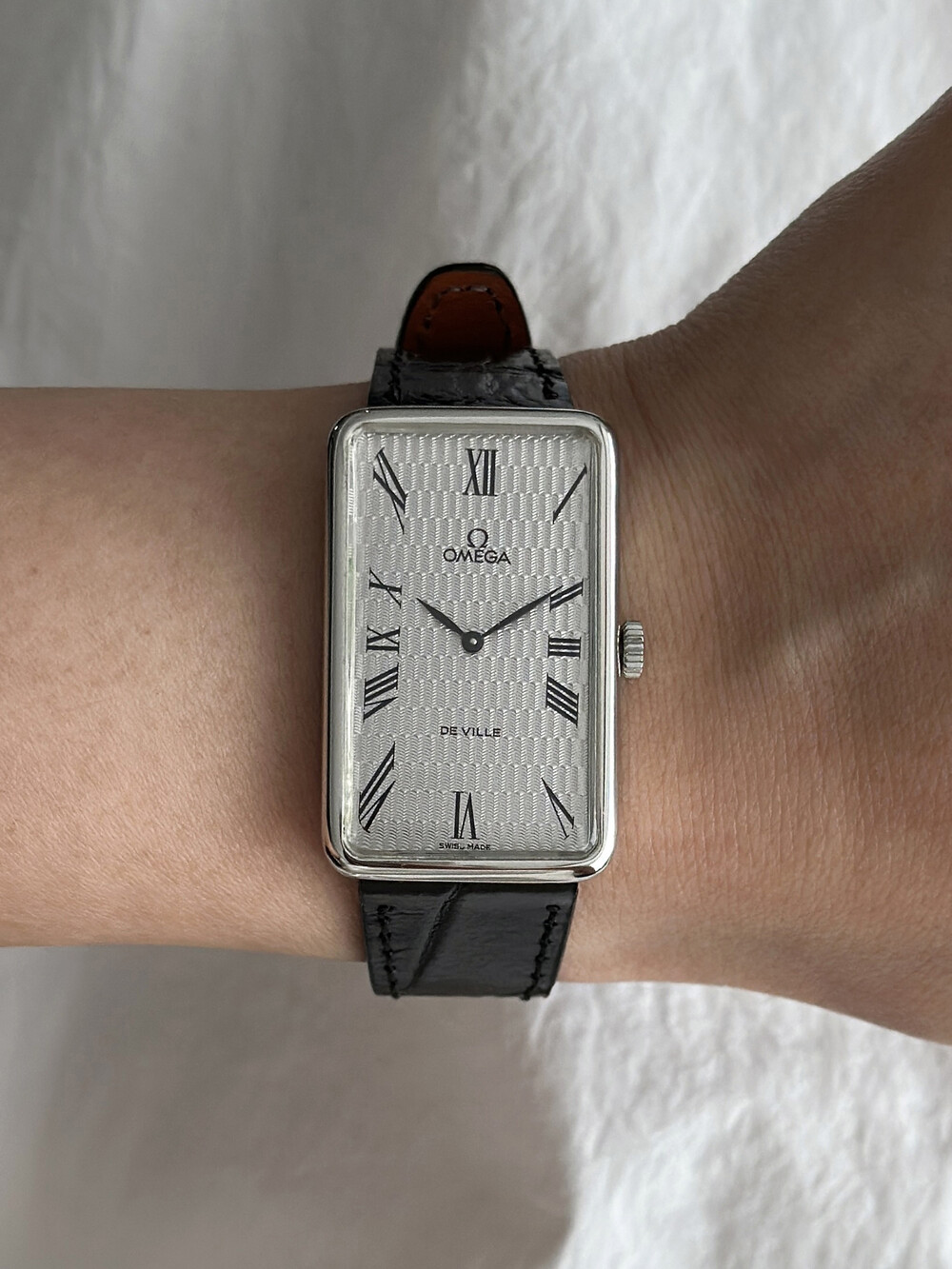 1971년도에 제작된 오메가 드빌 모델로 깔끔한 실버톤 다이얼과