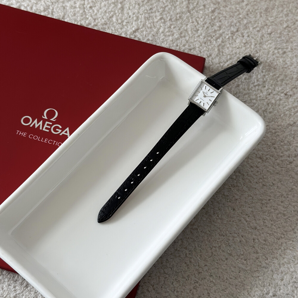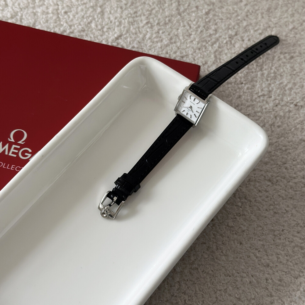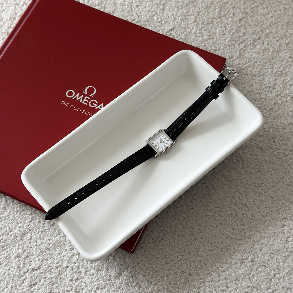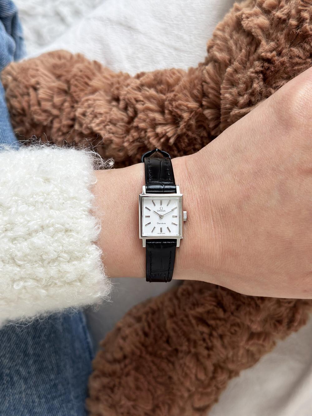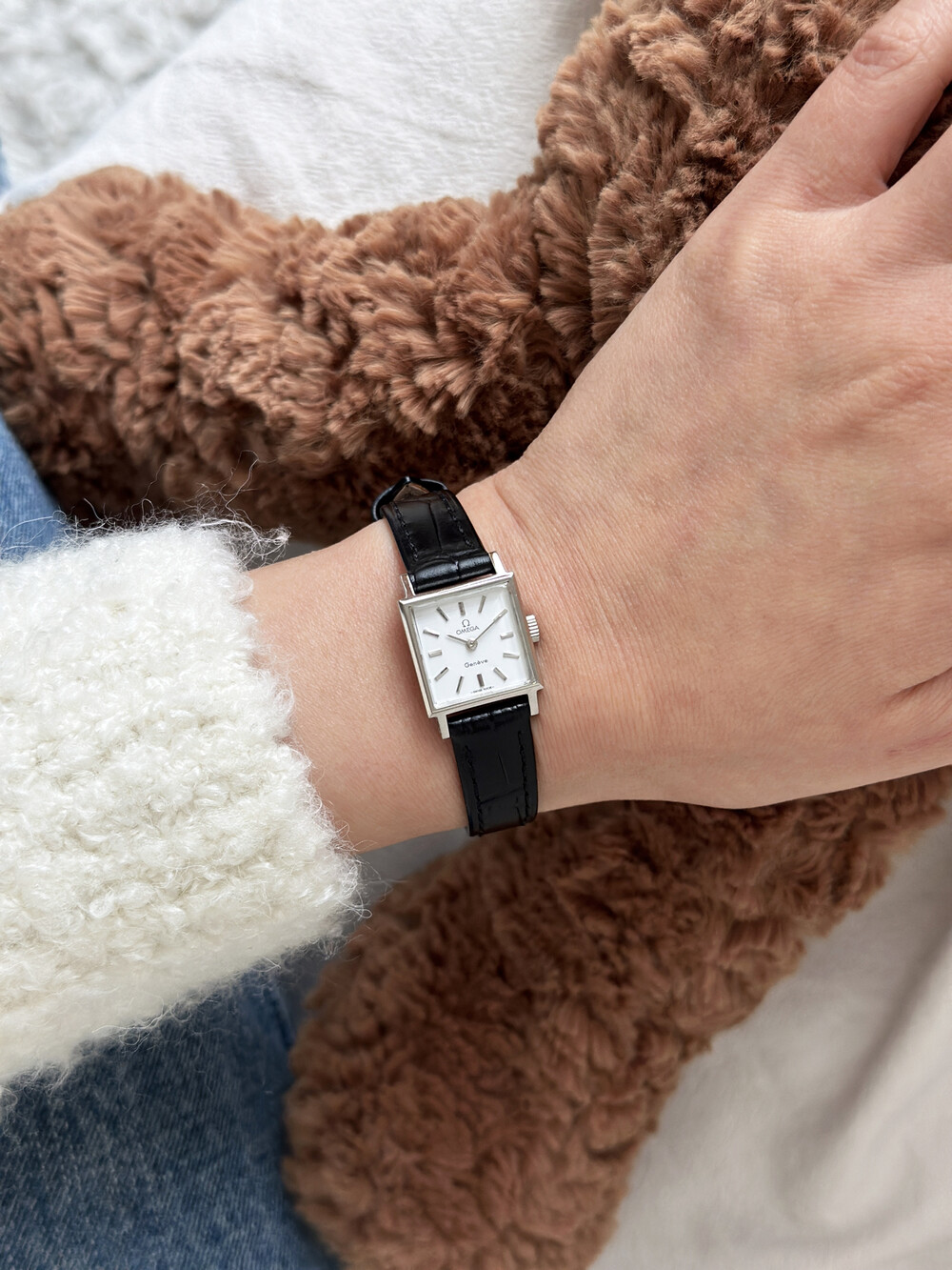 1973년도에 제작된 여성용 오메가 제네브 모델로 스퀘어 타입의 실버 케이스와