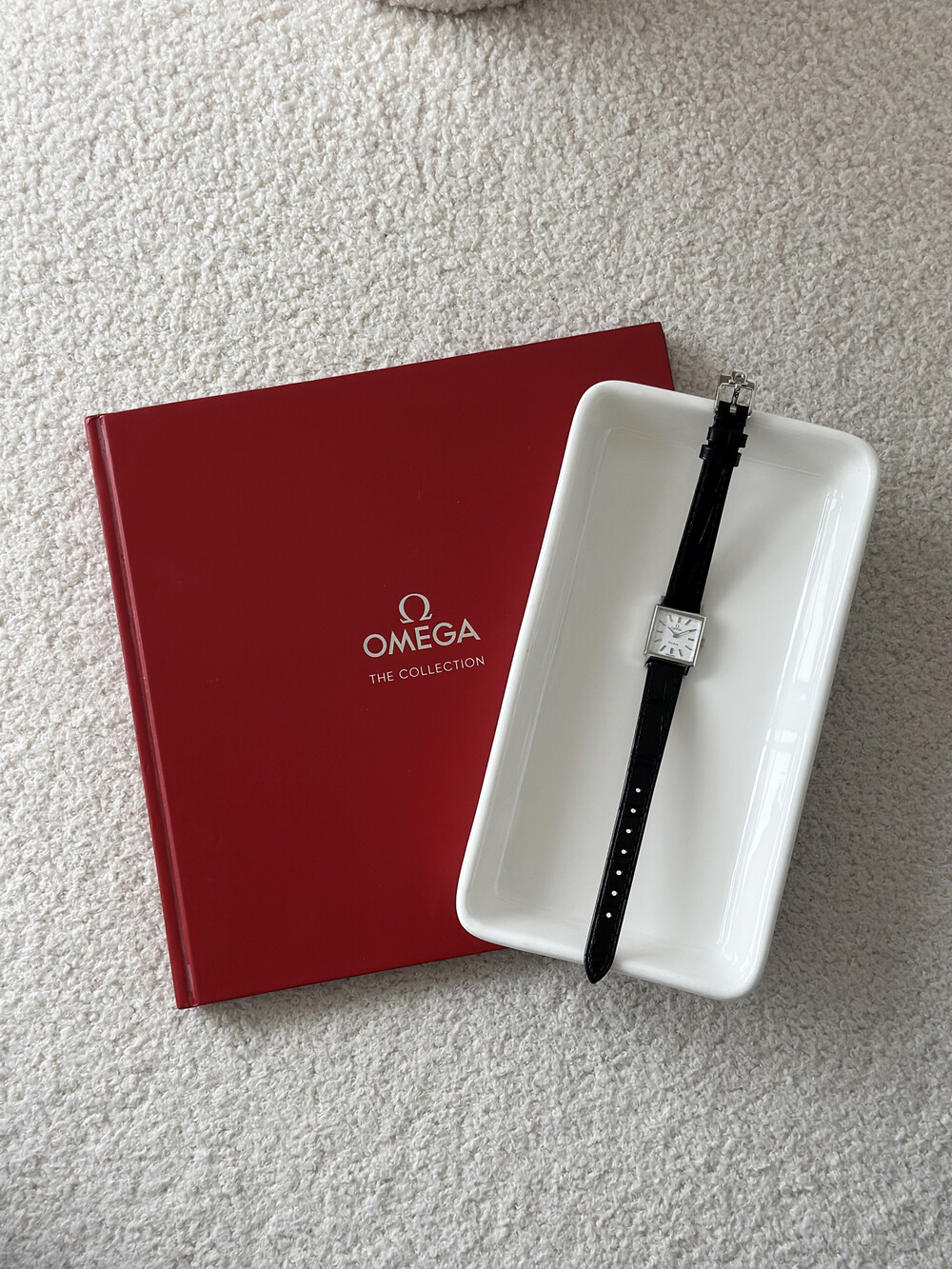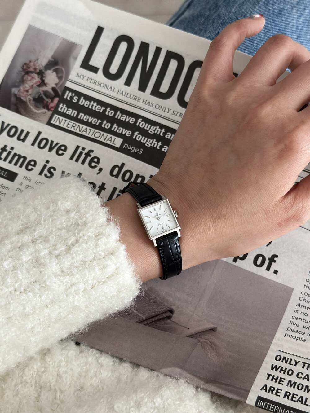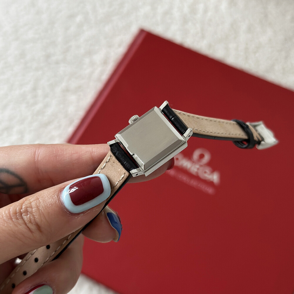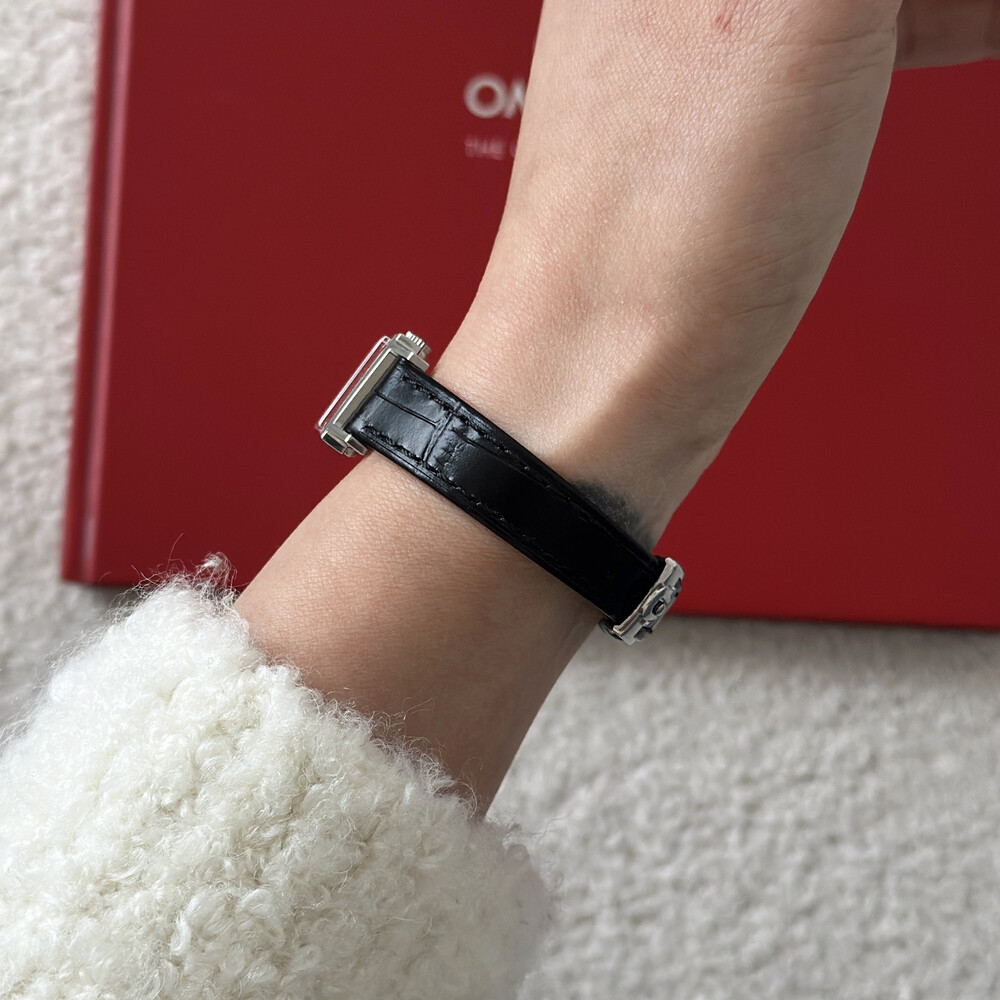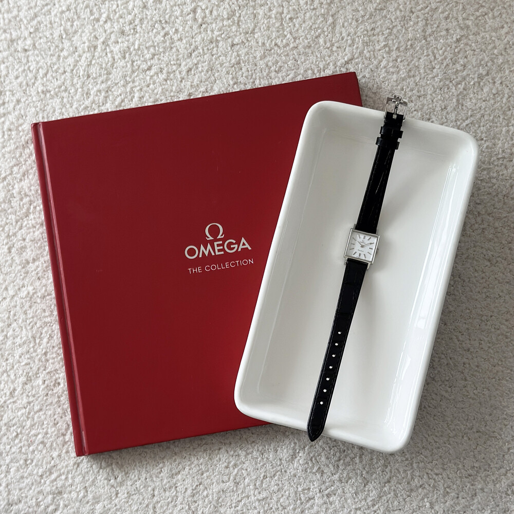 1973년도에 제작된 여성용 오메가 제네브 모델로 스퀘어 타입의 실버 케이스와