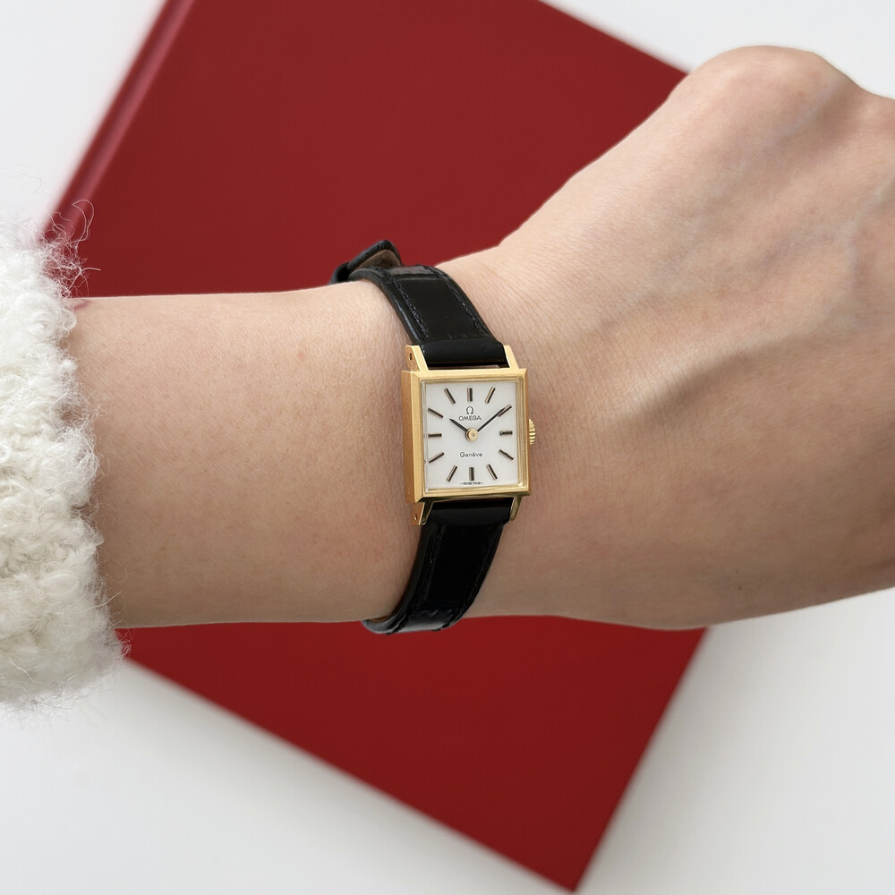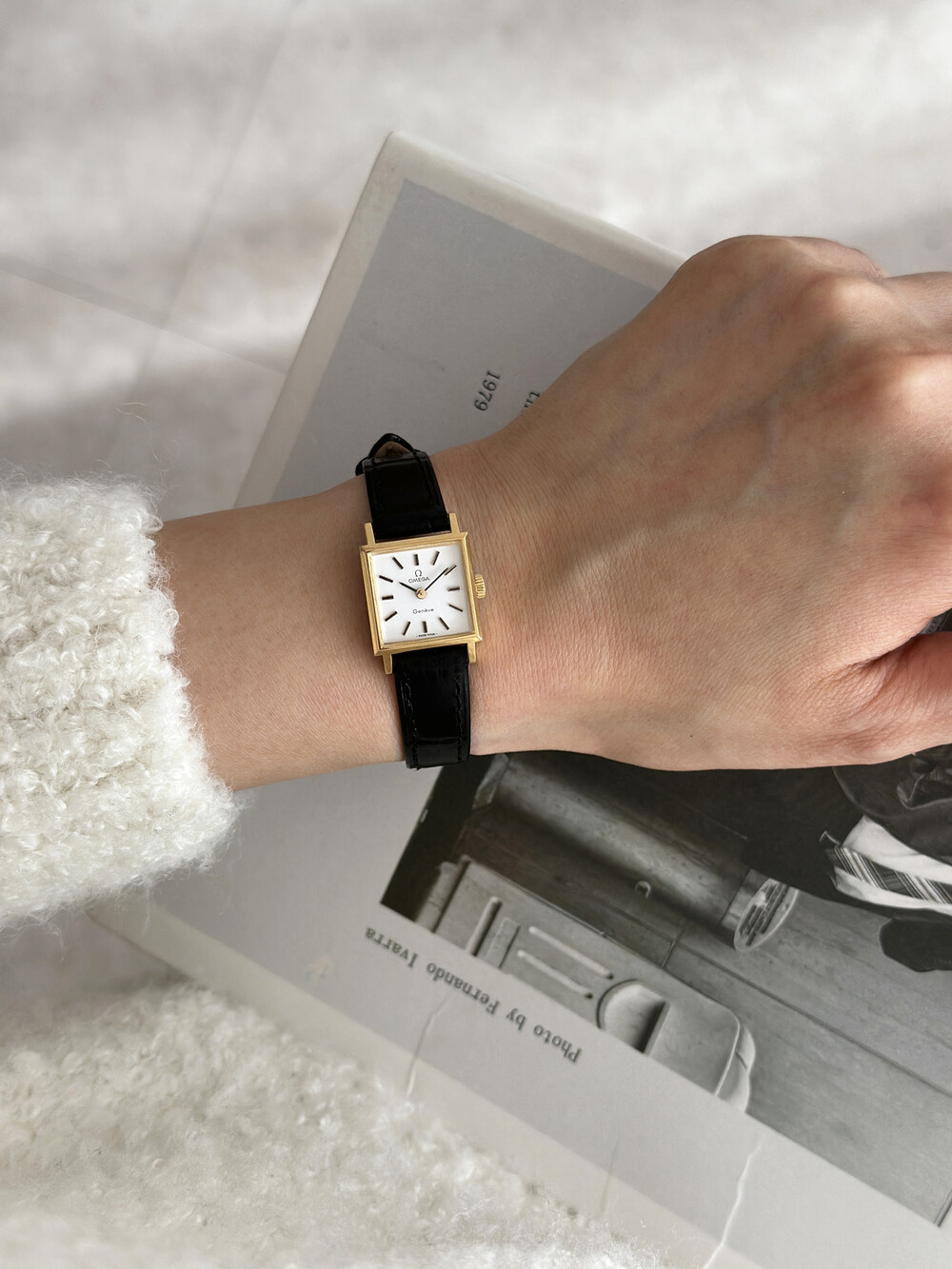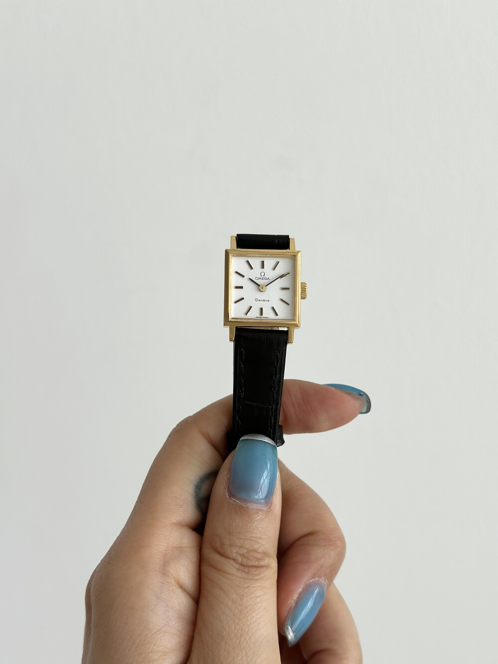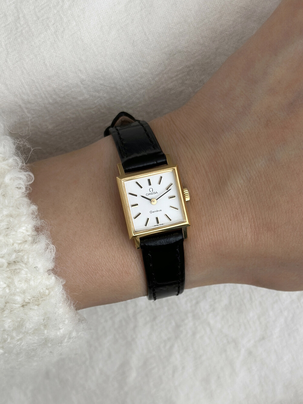 1973년도에 제작된 여성용 오메가 제네브 모델로 스퀘어 타입의 골드 케이스와