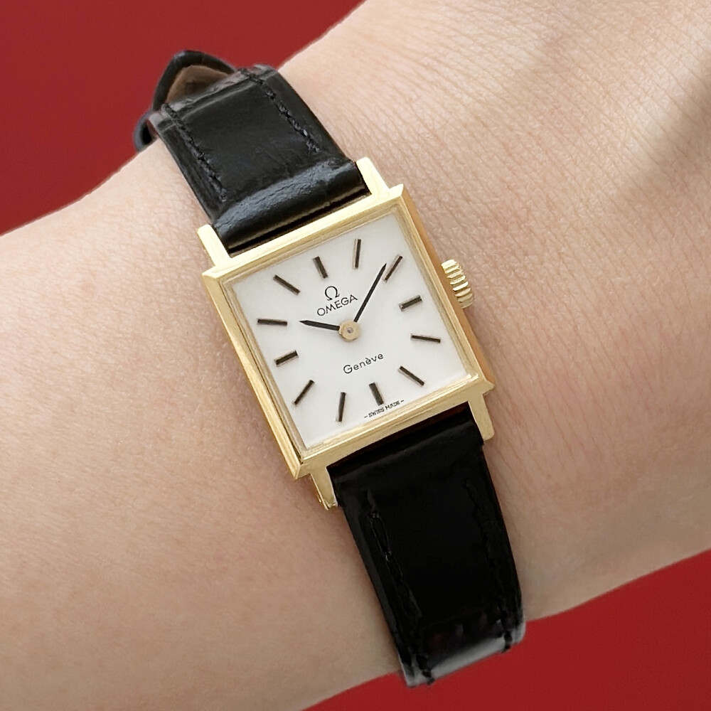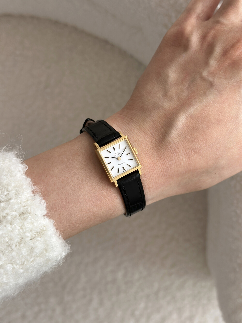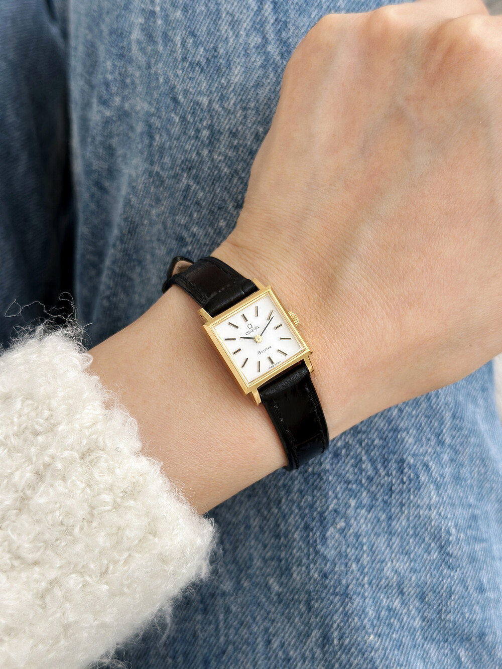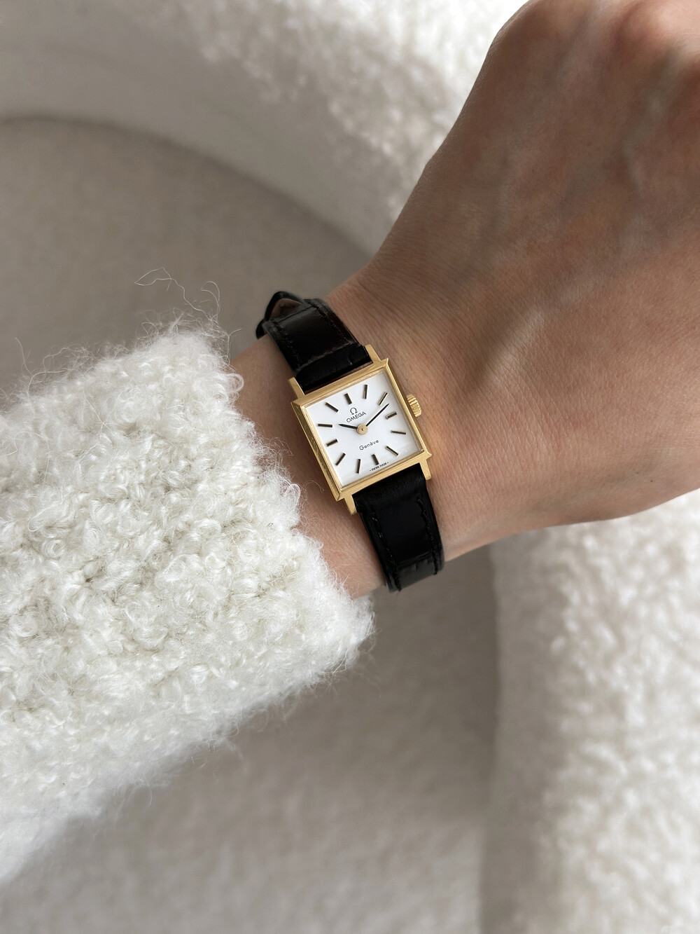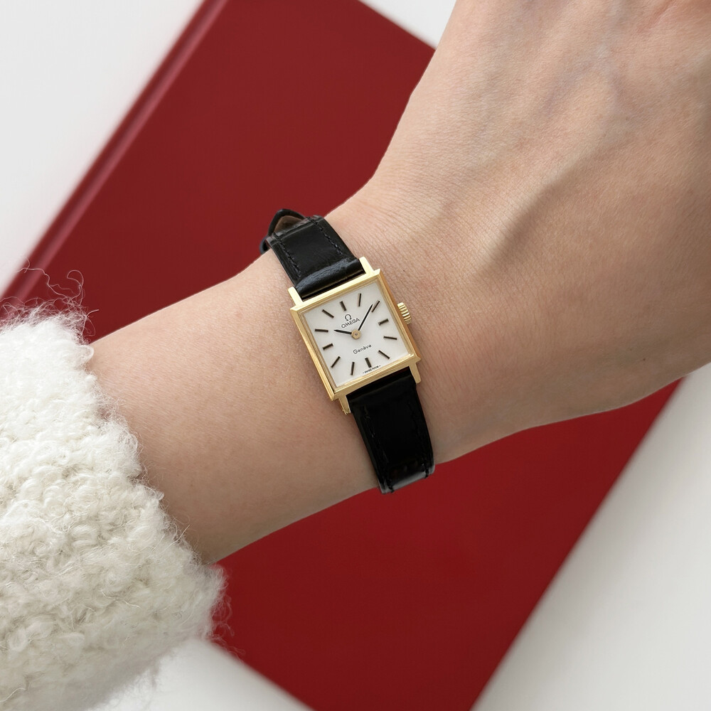 1973년도에 제작된 여성용 오메가 제네브 모델로 스퀘어 타입의 골드 케이스와