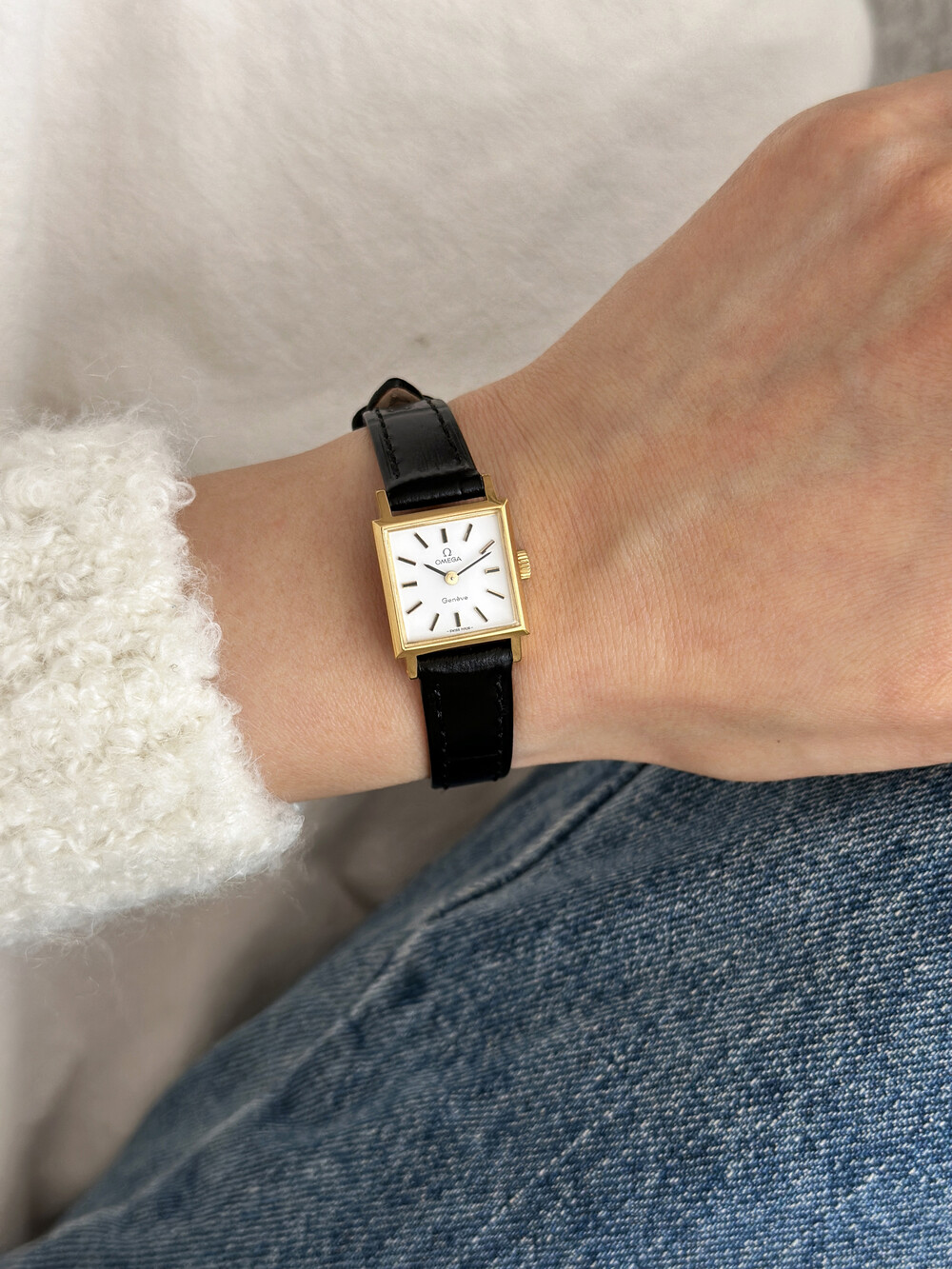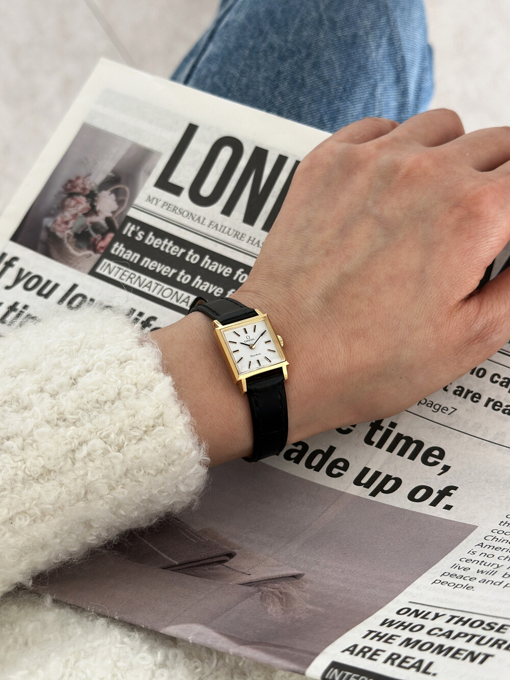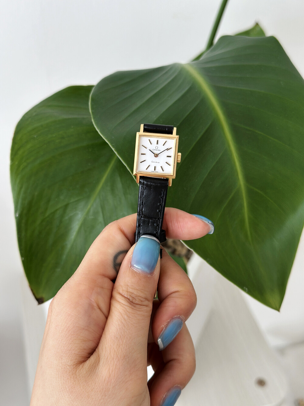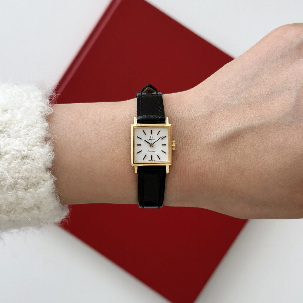 1973년도에 제작된 여성용 오메가 제네브 모델로 스퀘어 타입의 골드 케이스와