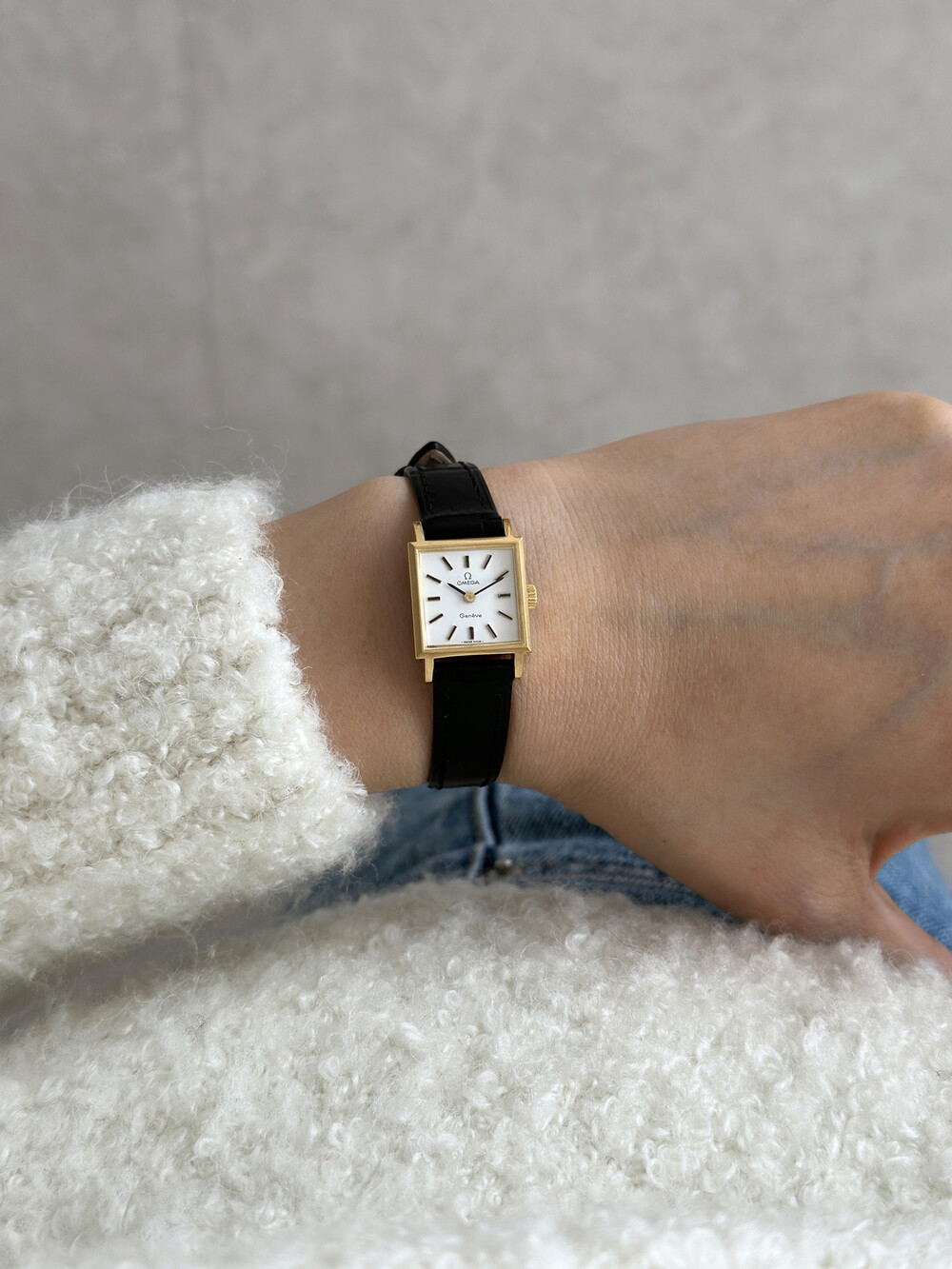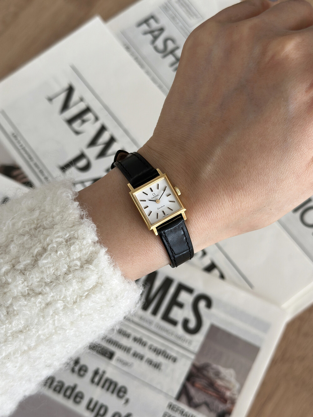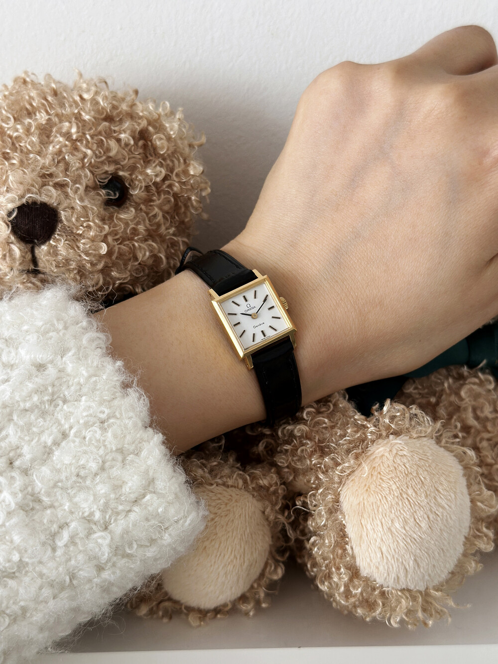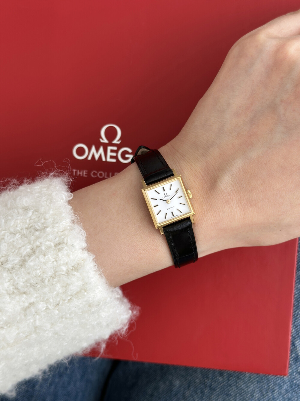 1973년도에 제작된 여성용 오메가 제네브 모델로 스퀘어 타입의 골드 케이스와