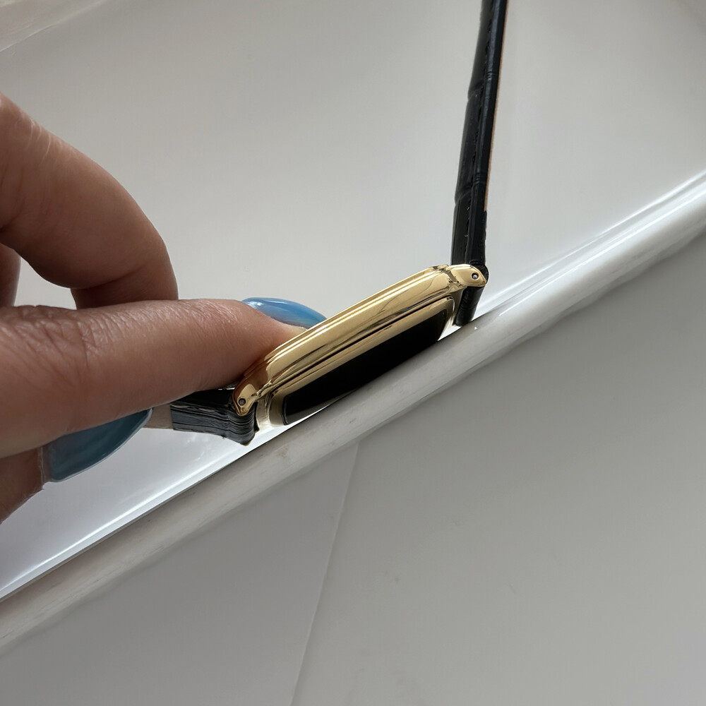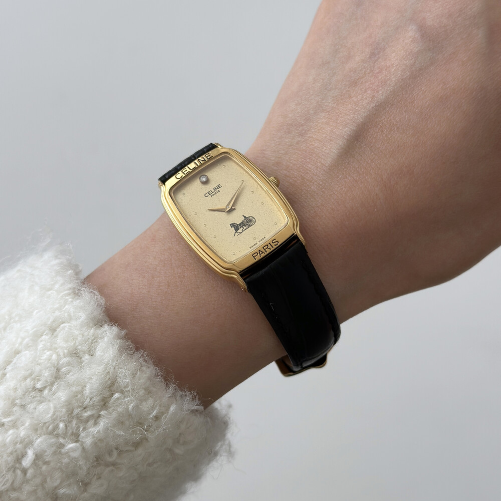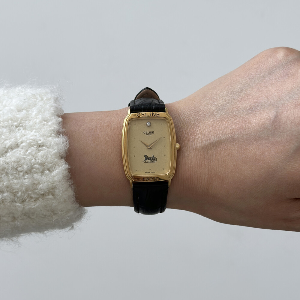 골드 펄 다이얼 위를 장식하는 셀린느 시그니처 마차 심볼이 매력적인 모델입니다.