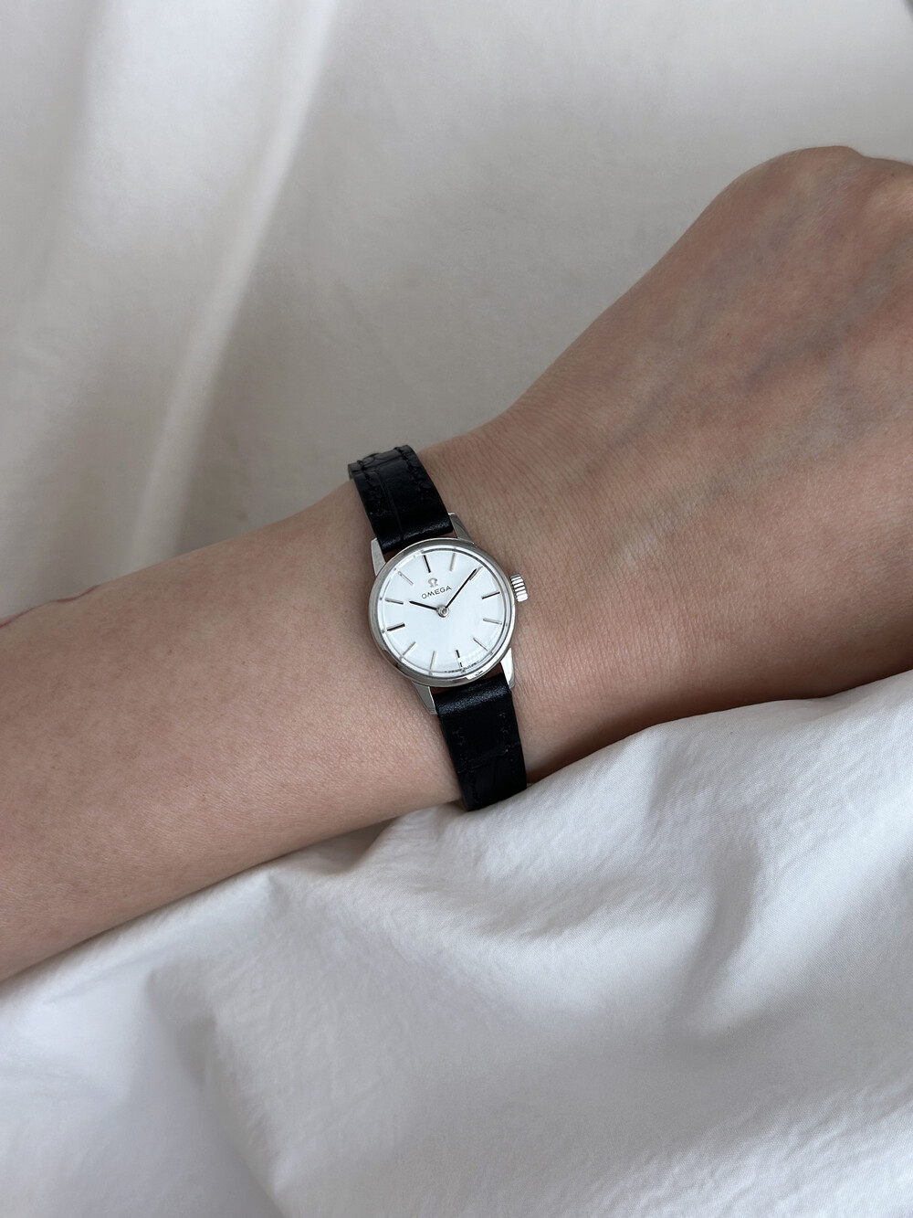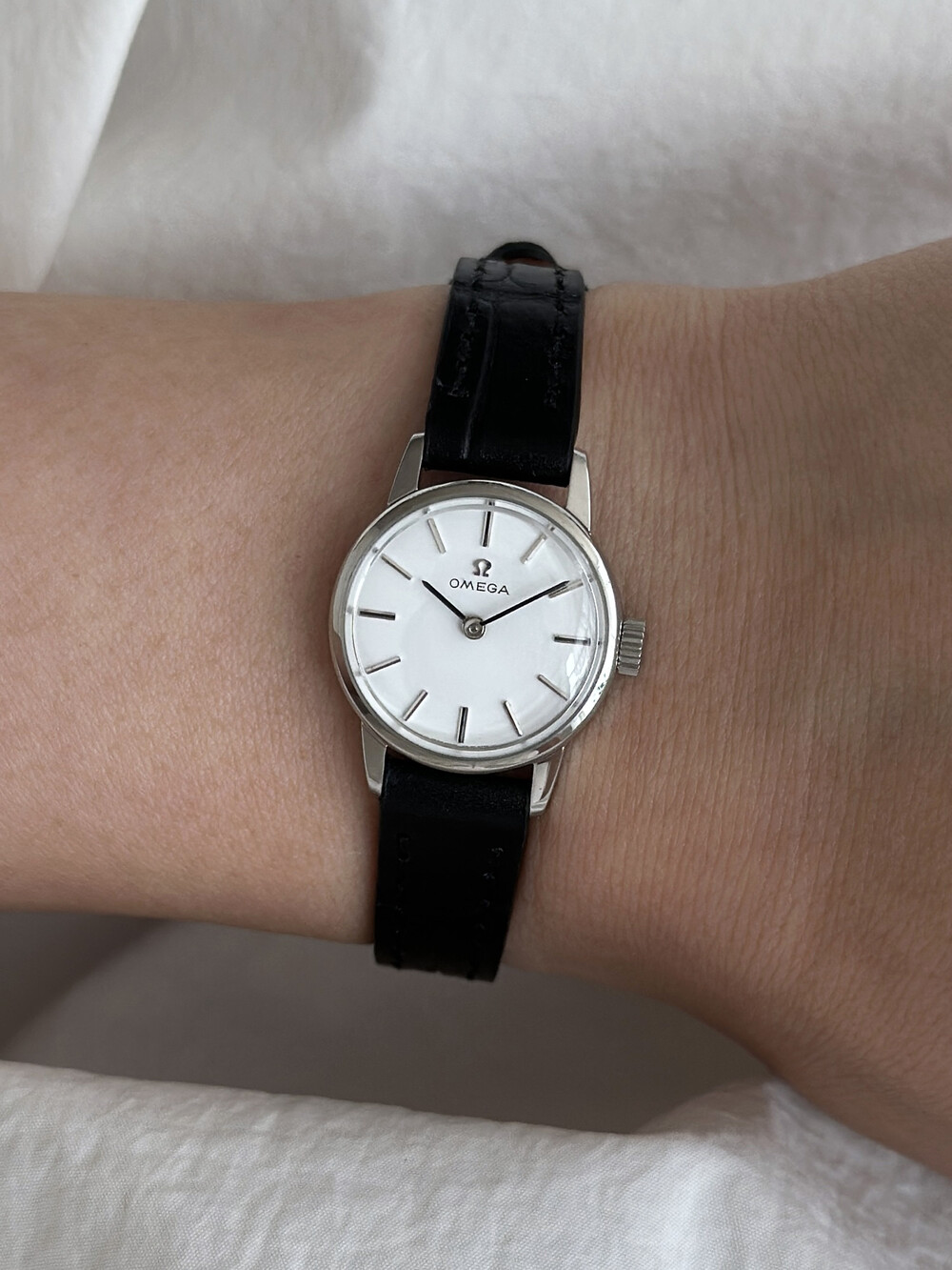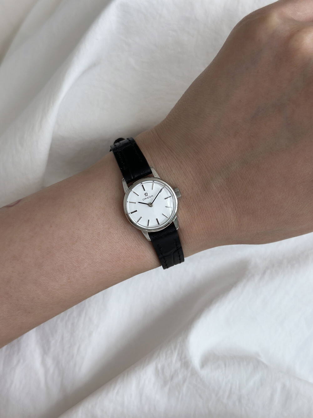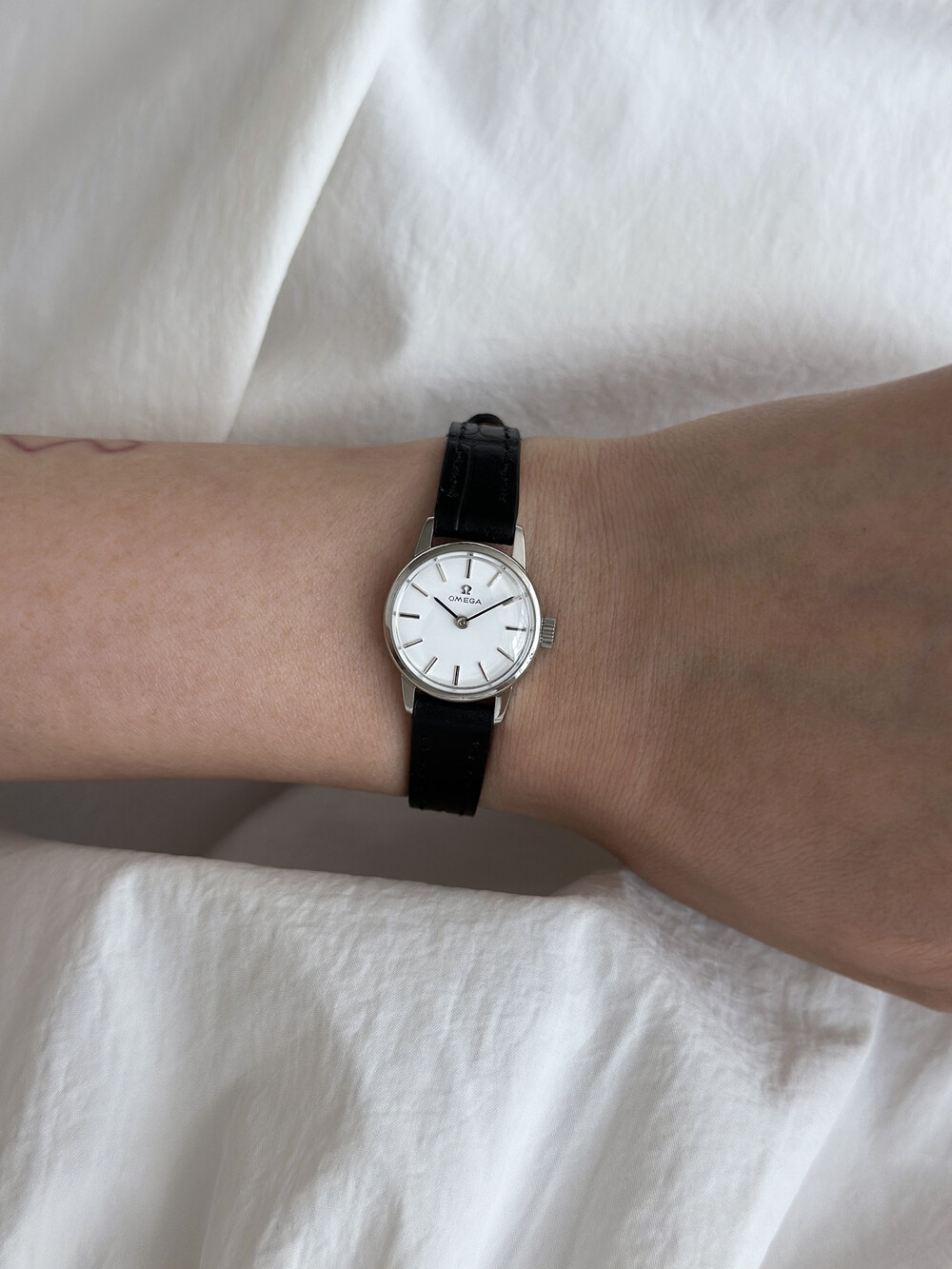 1965년도에 제작된 오메가 모델로 깔끔한 화이트 다이얼 위를 장식하는