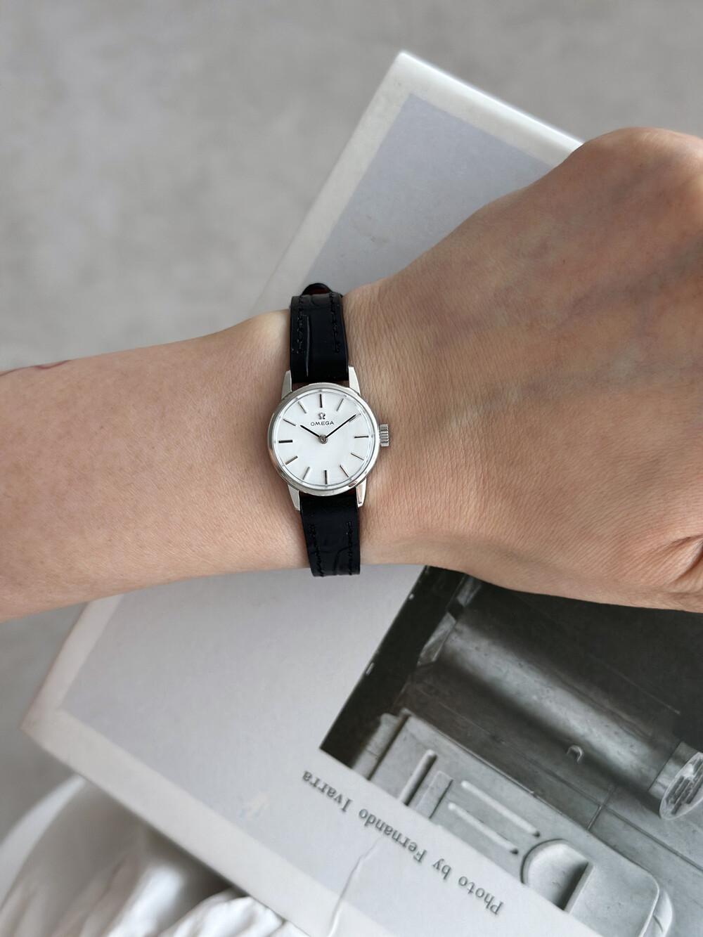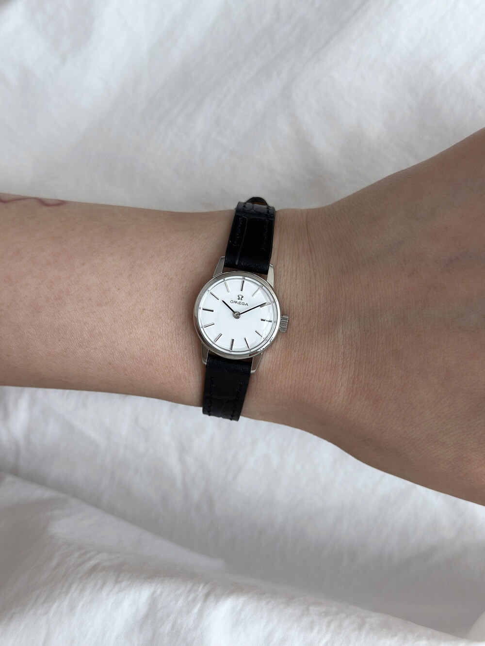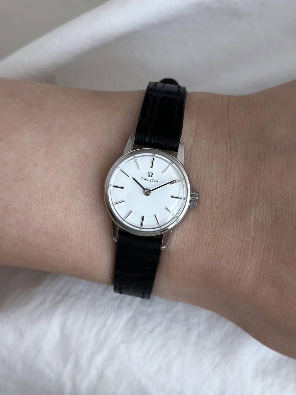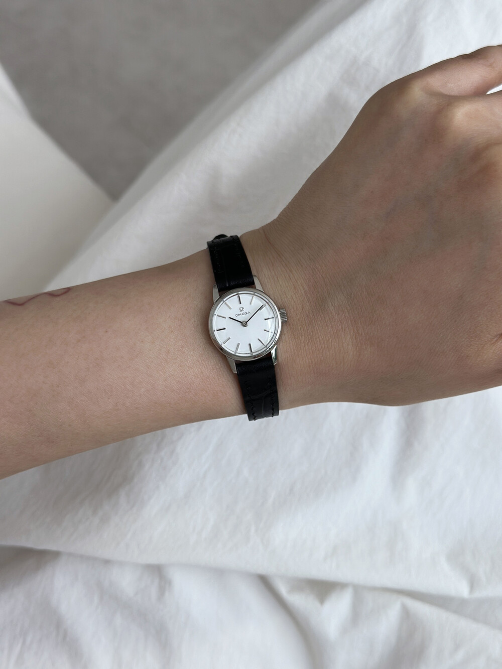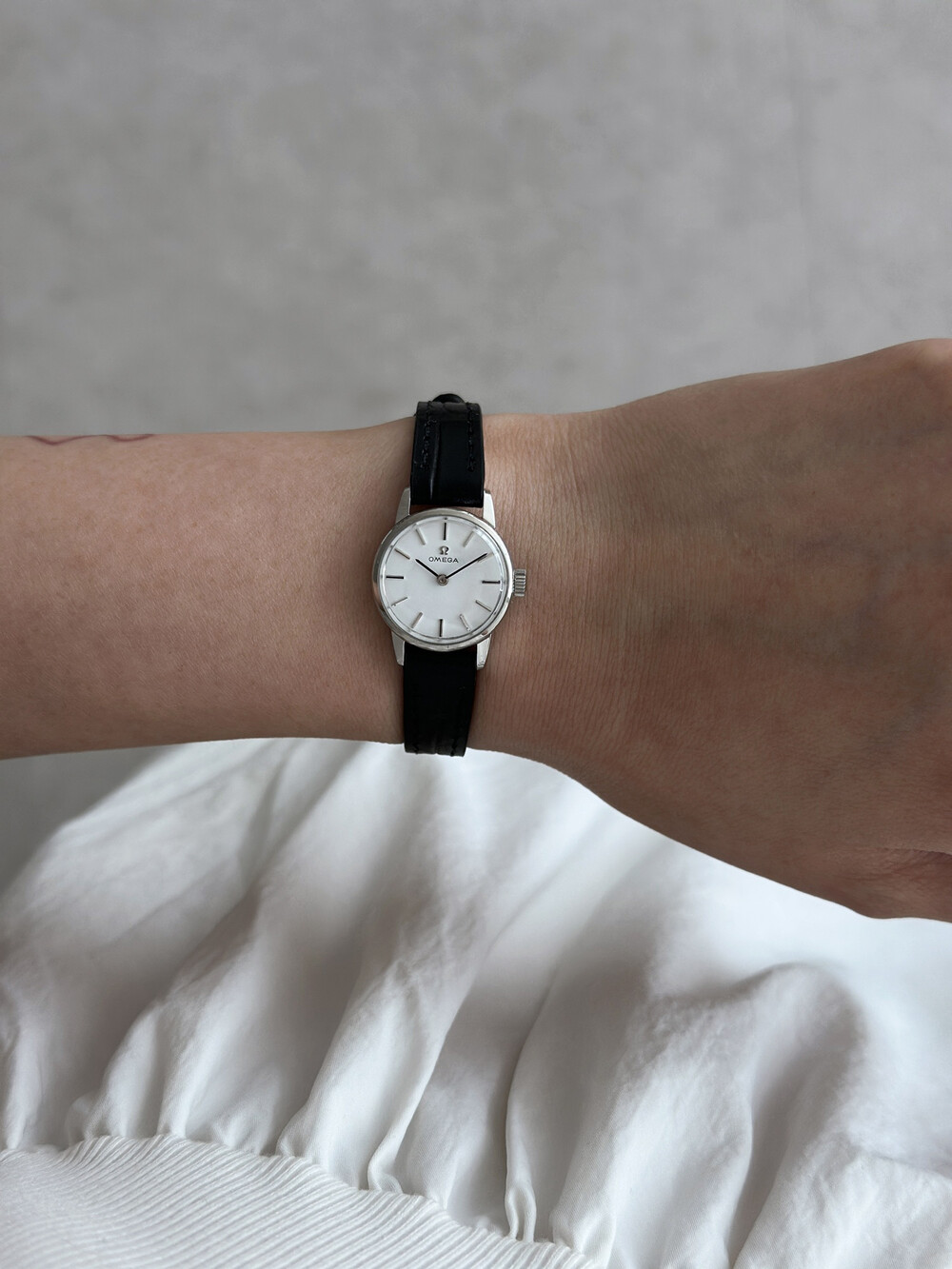 1965년도에 제작된 오메가 모델로 깔끔한 화이트 다이얼 위를 장식하는