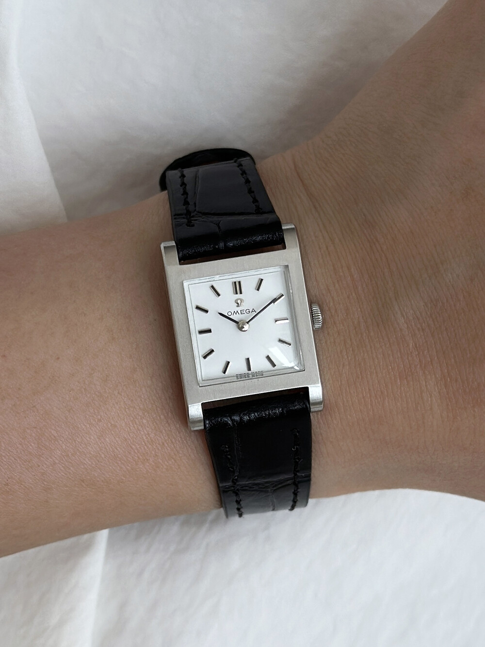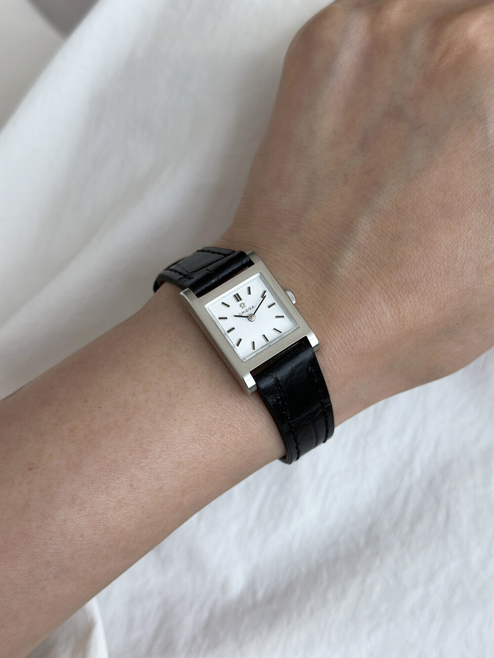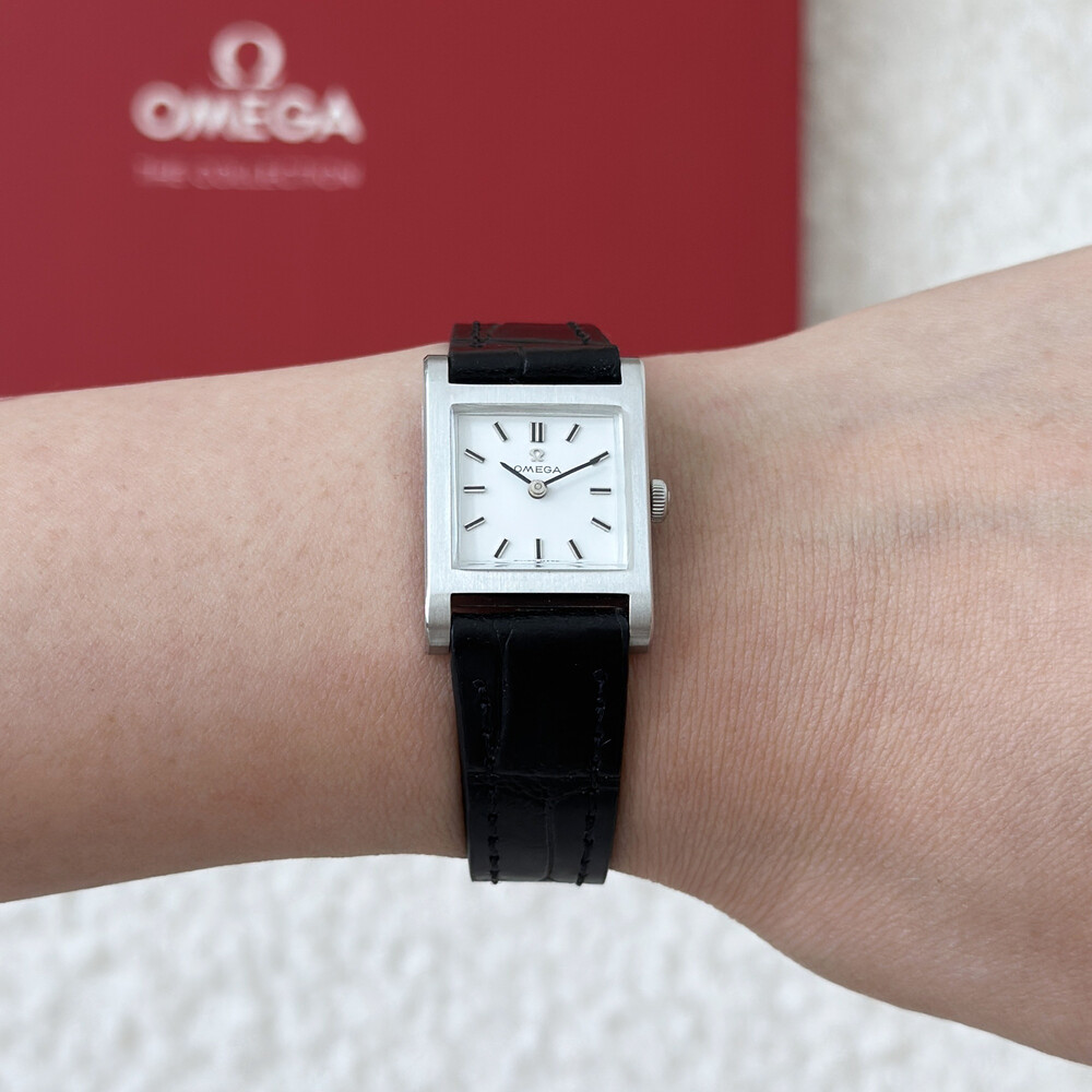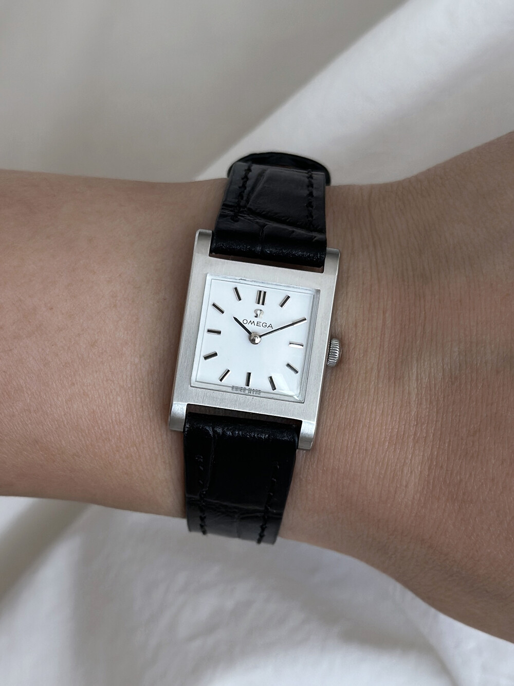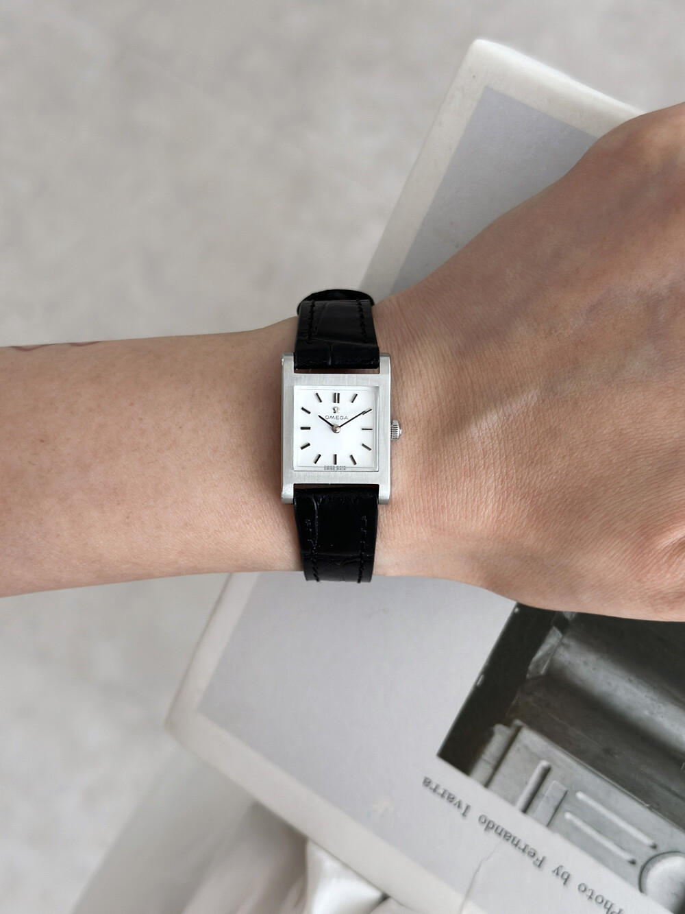1963년도에 제작된 오메가 모델로 깔끔한 화이트 다이얼 위를 장식하는