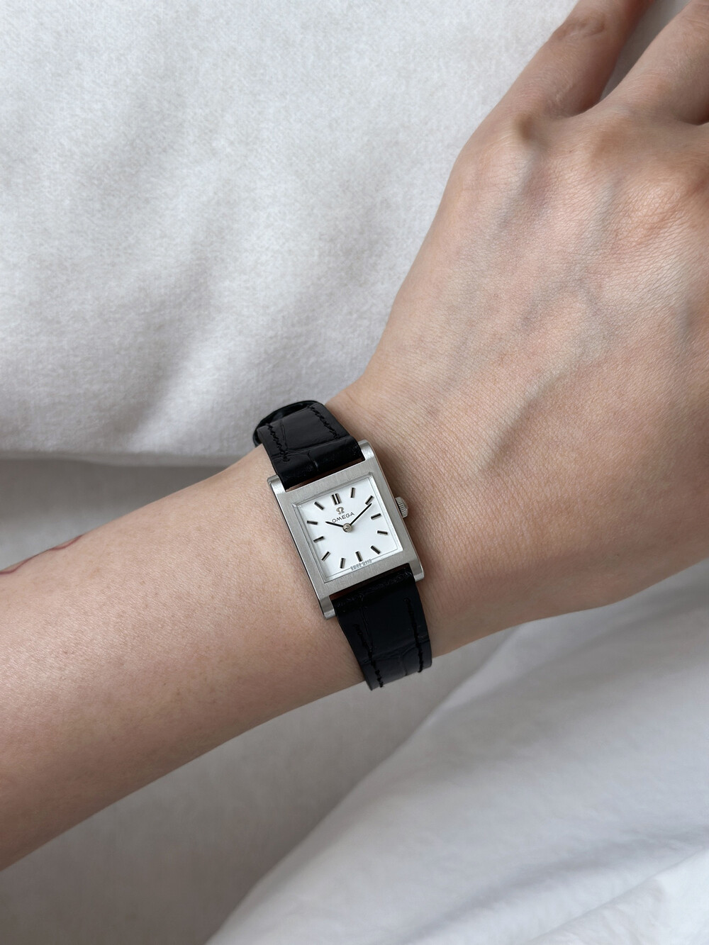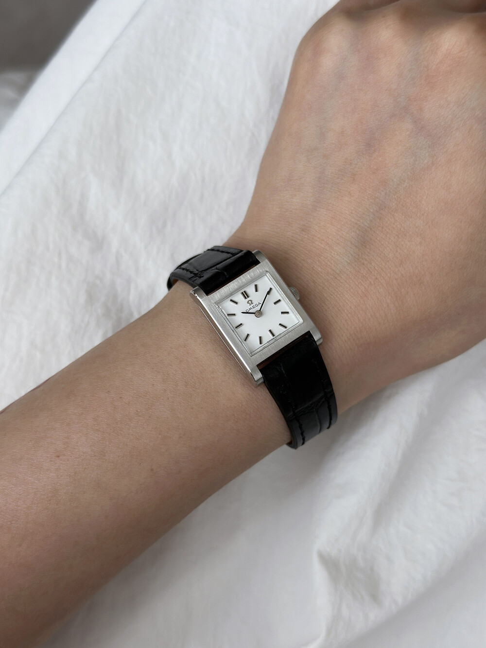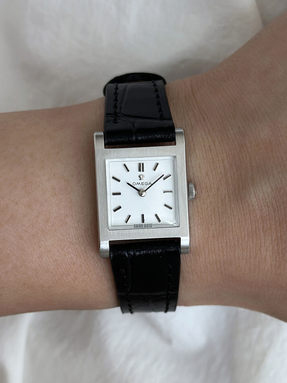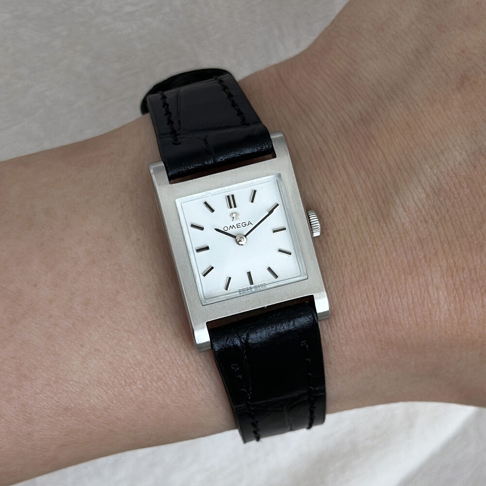 1963년도에 제작된 오메가 모델로 깔끔한 화이트 다이얼 위를 장식하는