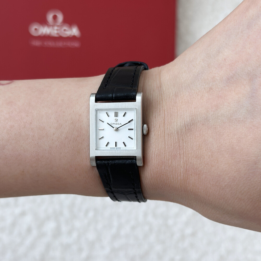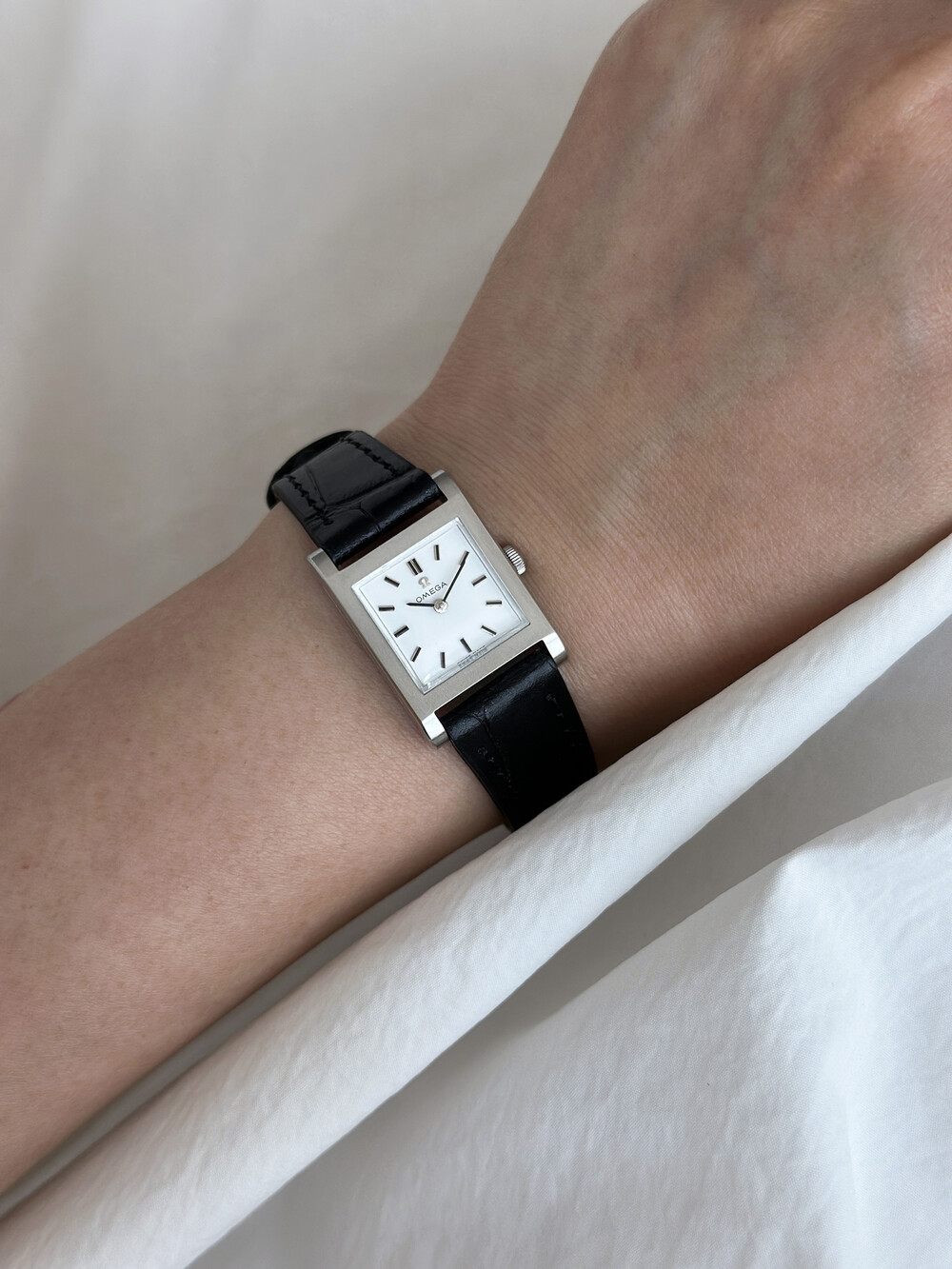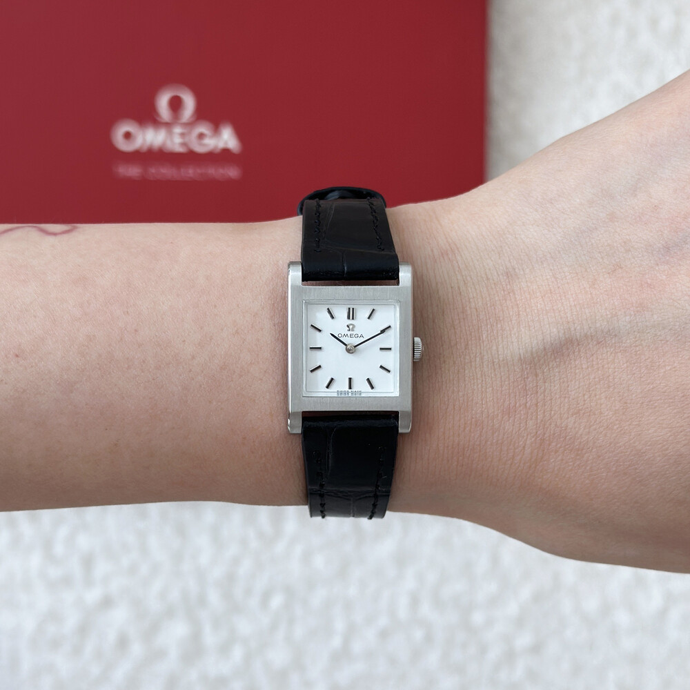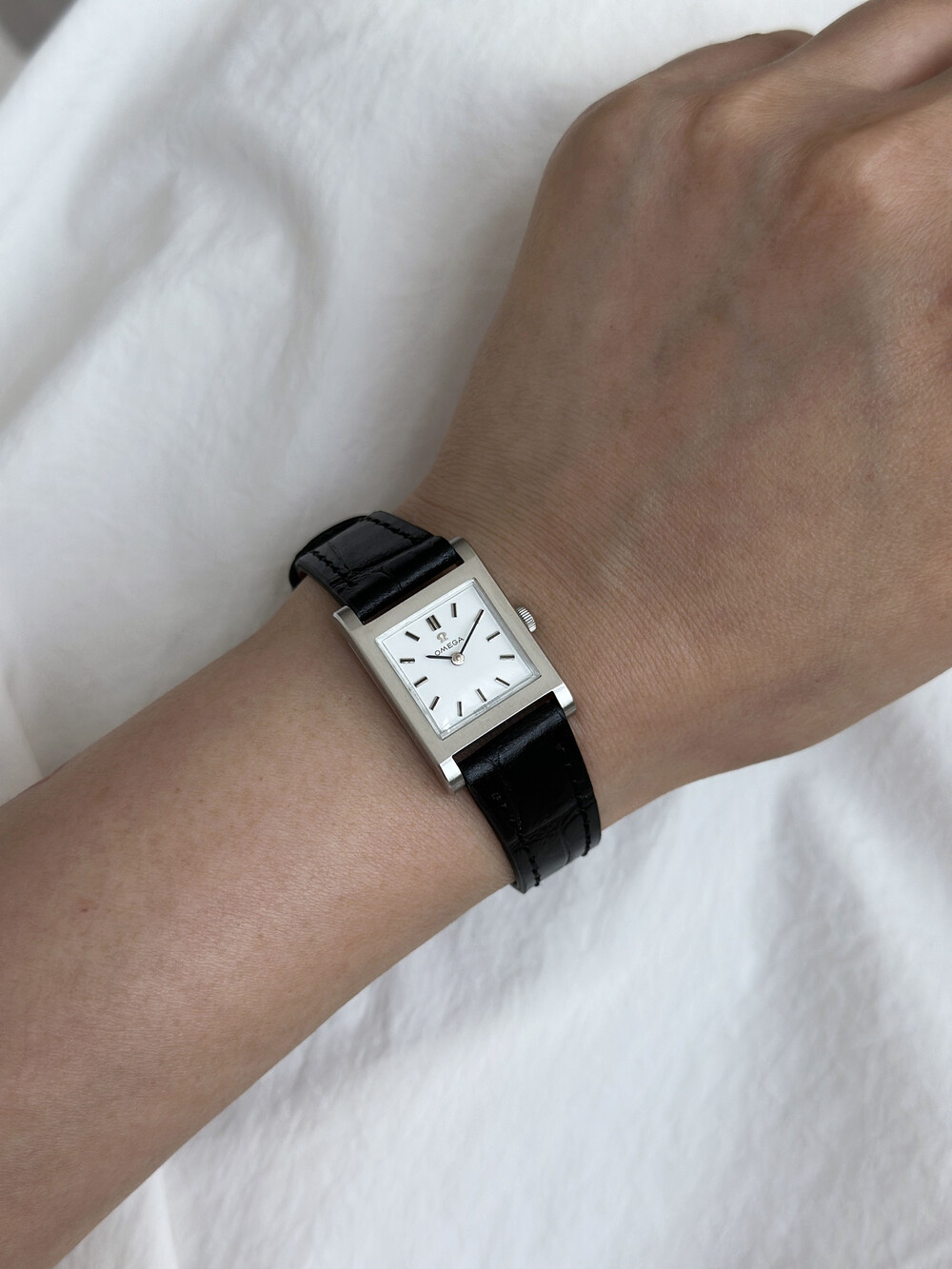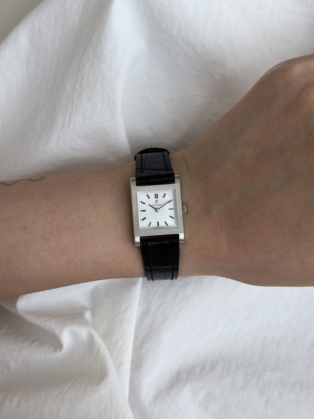 1963년도에 제작된 오메가 모델로 깔끔한 화이트 다이얼 위를 장식하는
