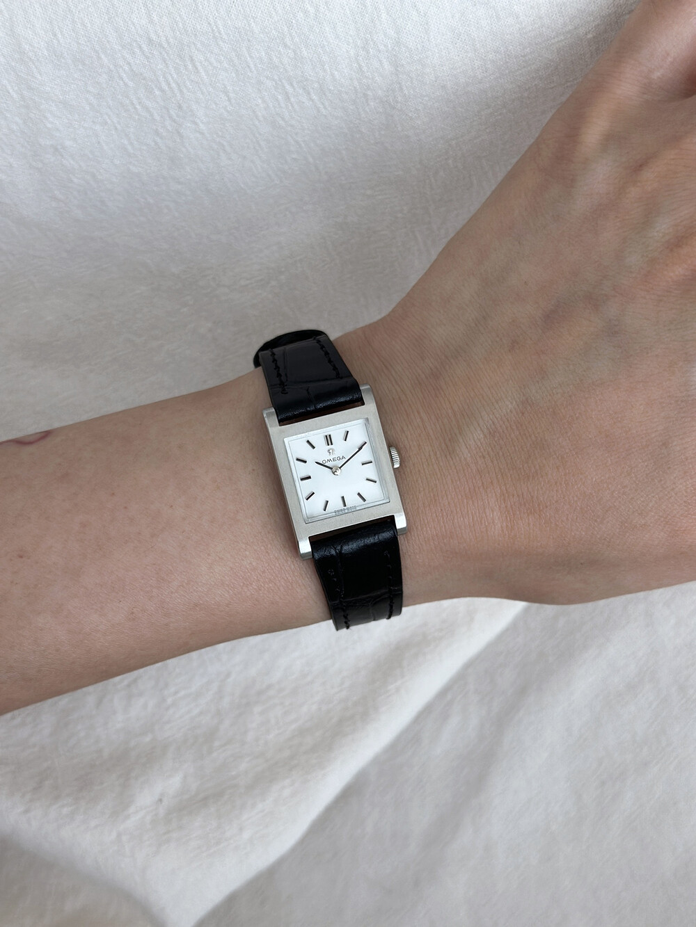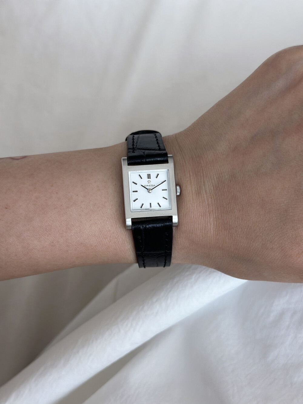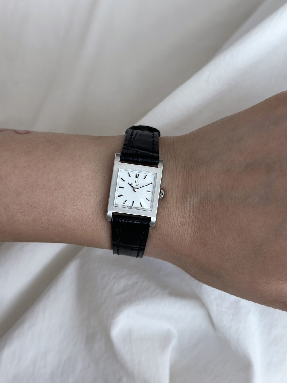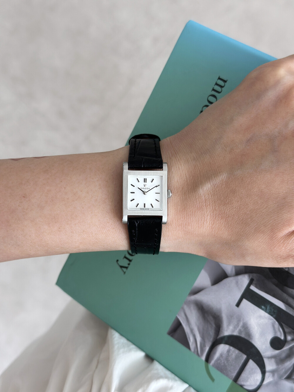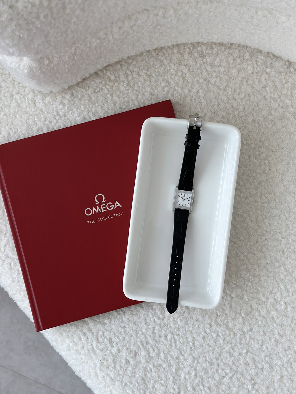 1963년도에 제작된 오메가 모델로 깔끔한 화이트 다이얼 위를 장식하는
