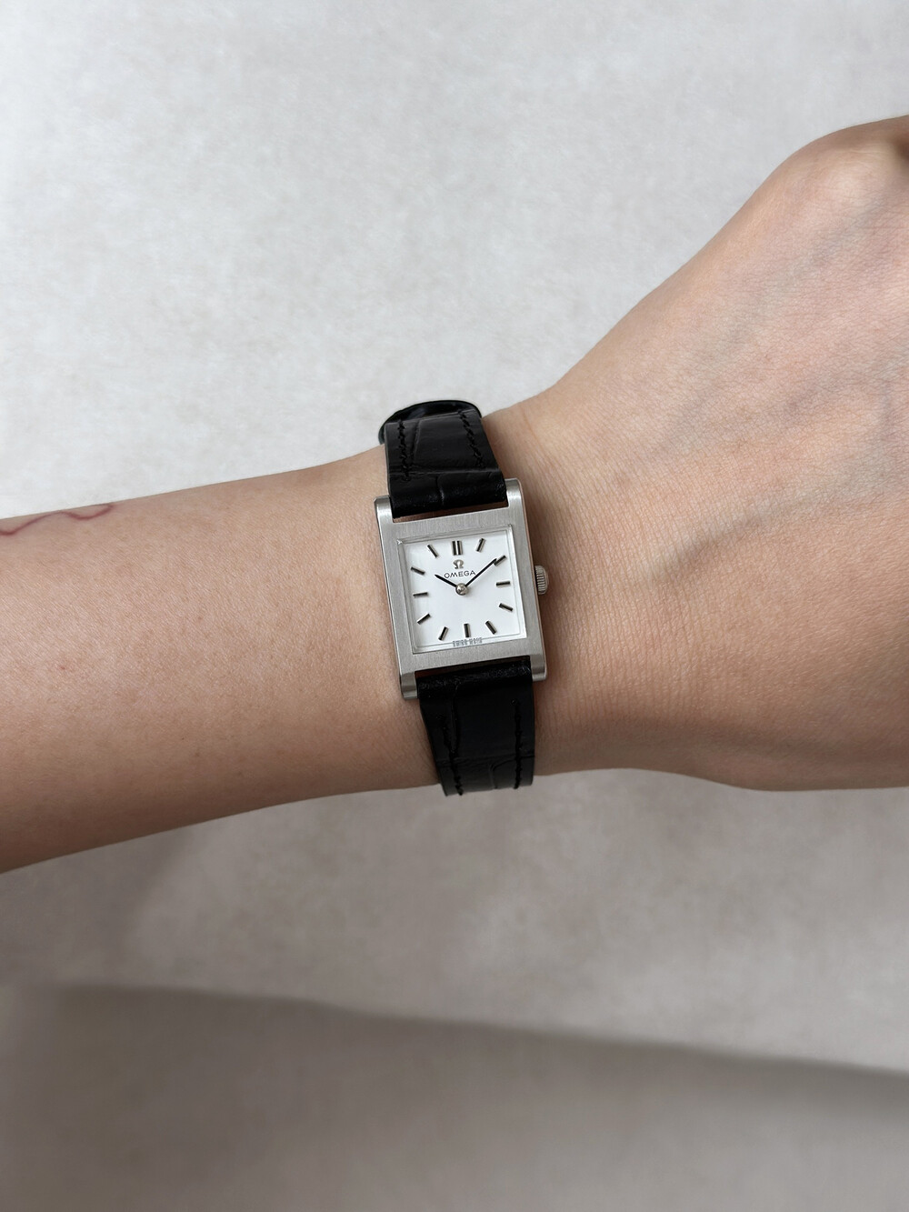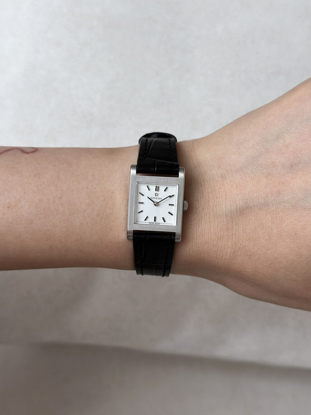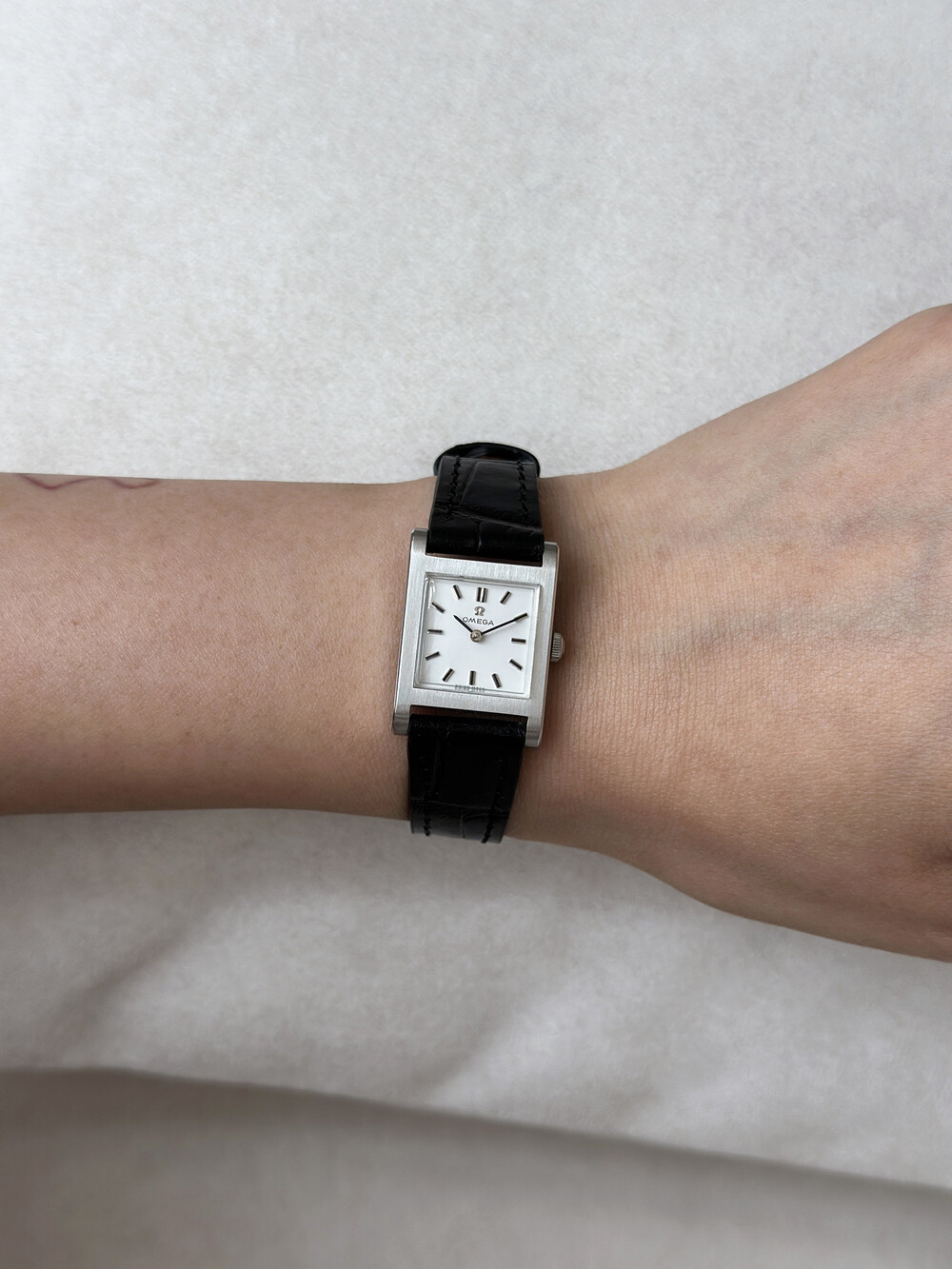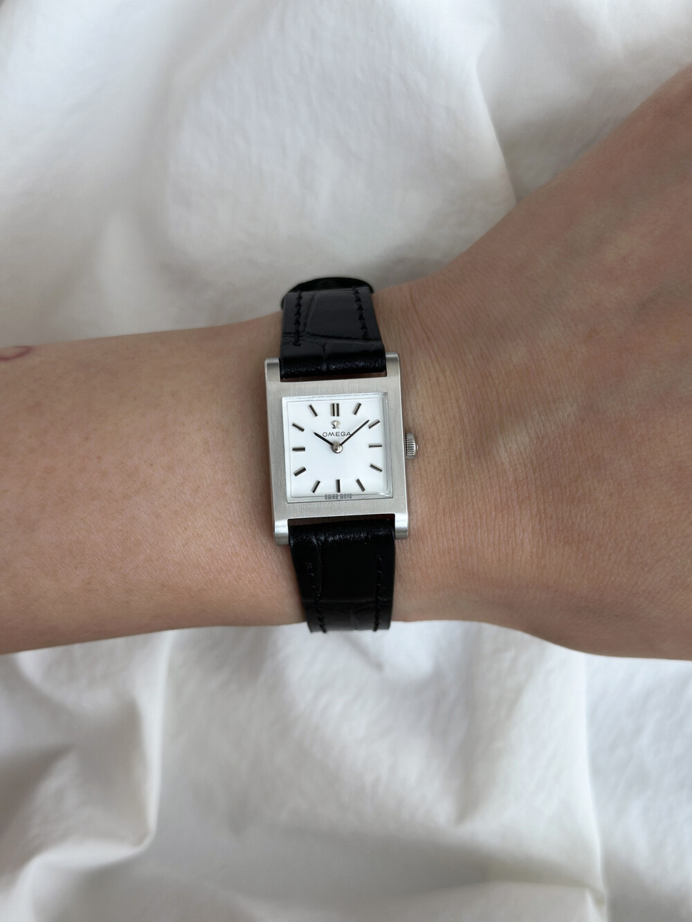 1963년도에 제작된 오메가 모델로 깔끔한 화이트 다이얼 위를 장식하는