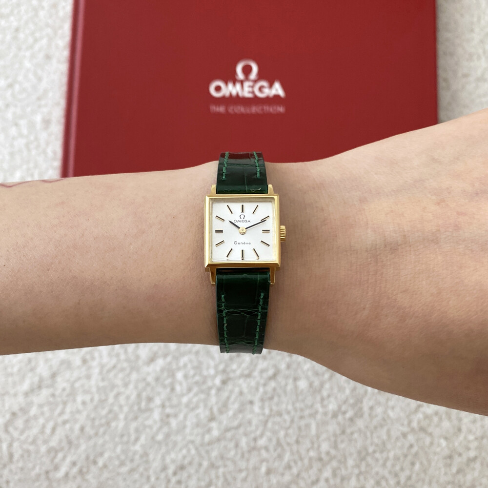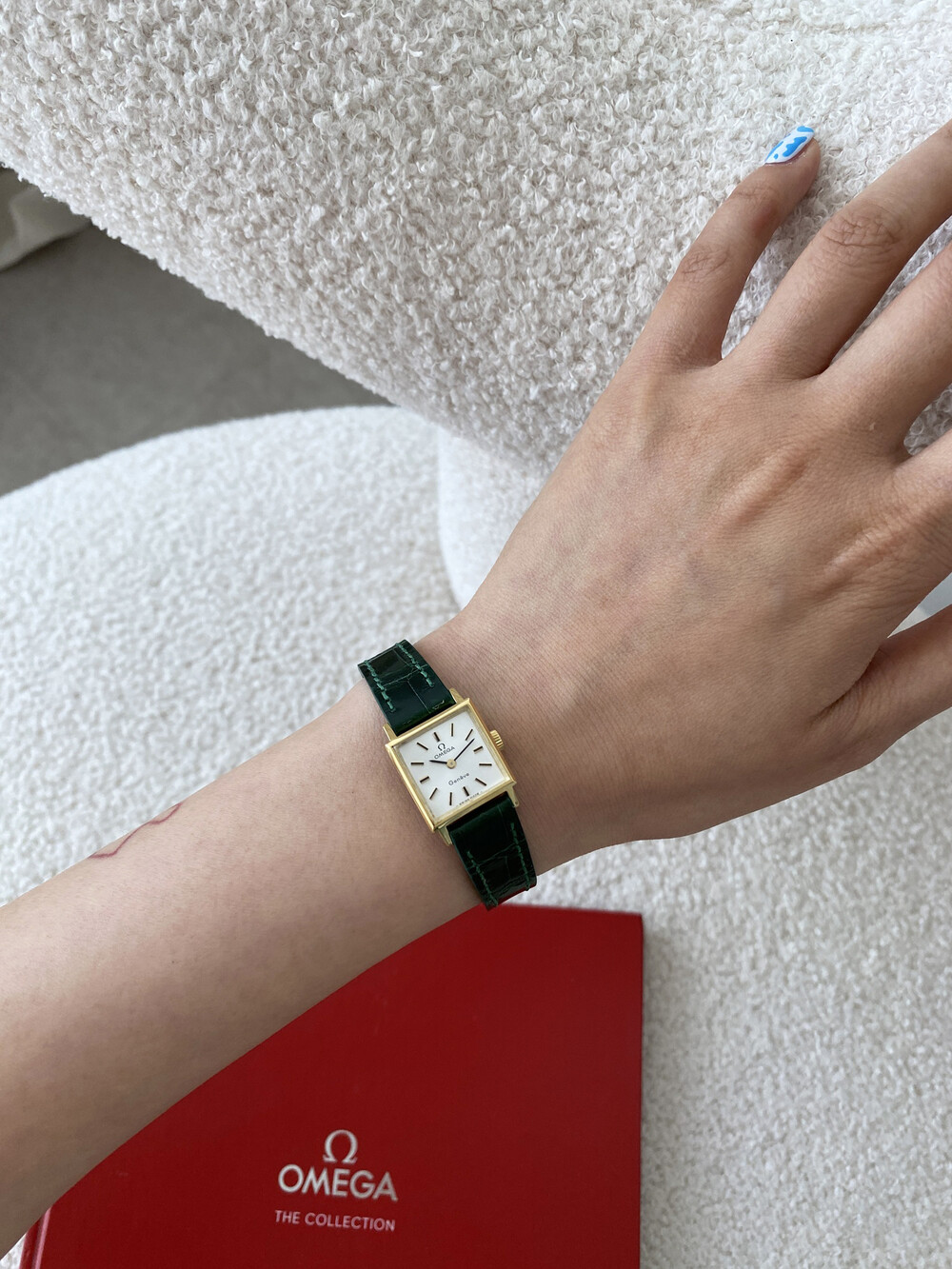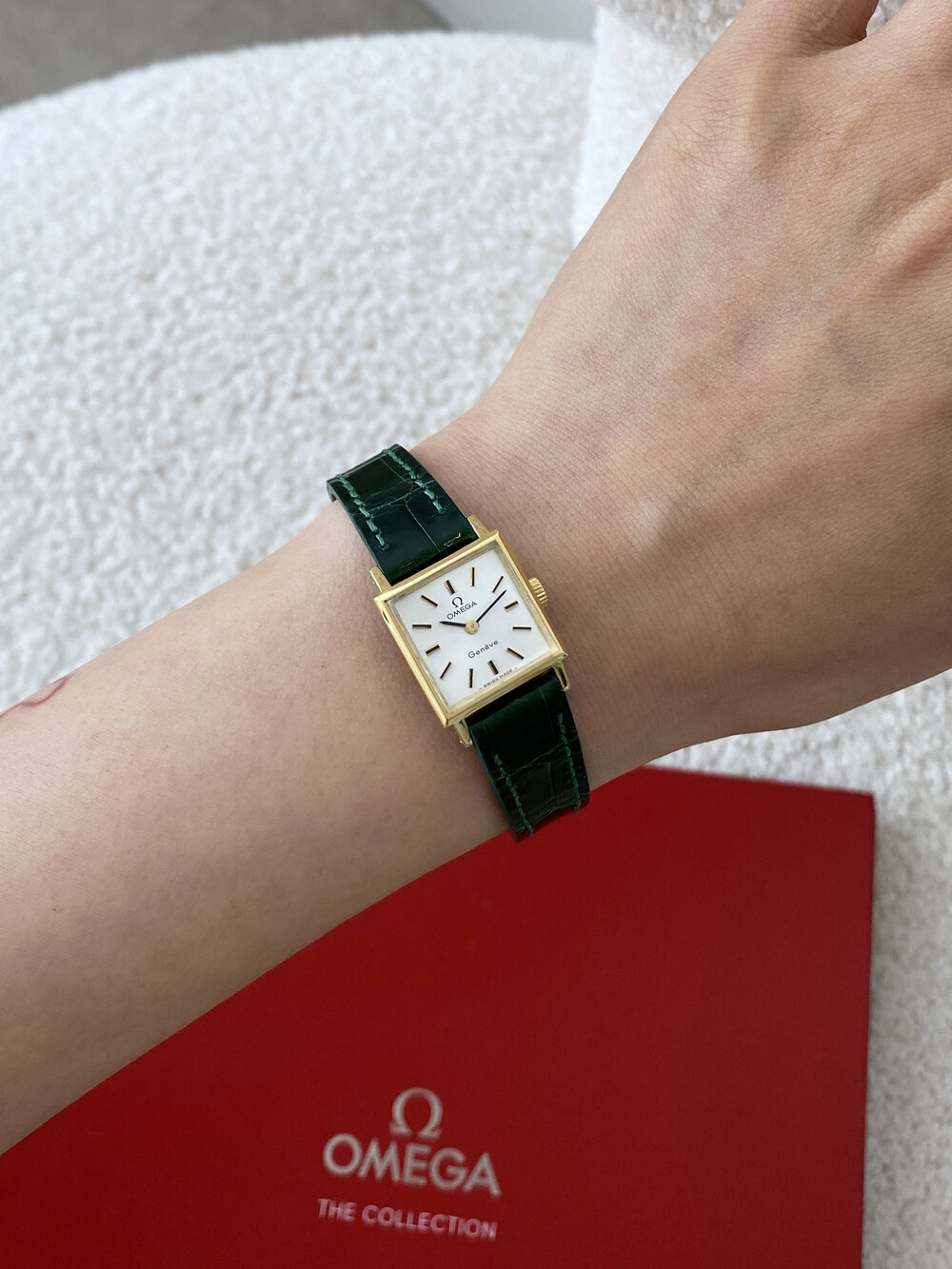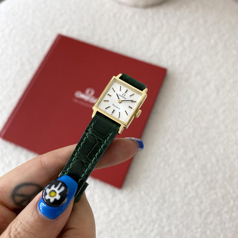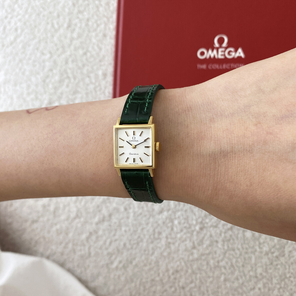 1973년도에 제작된 여성용 오메가 제네브 모델로 스퀘어 타입의 골드 케이스와