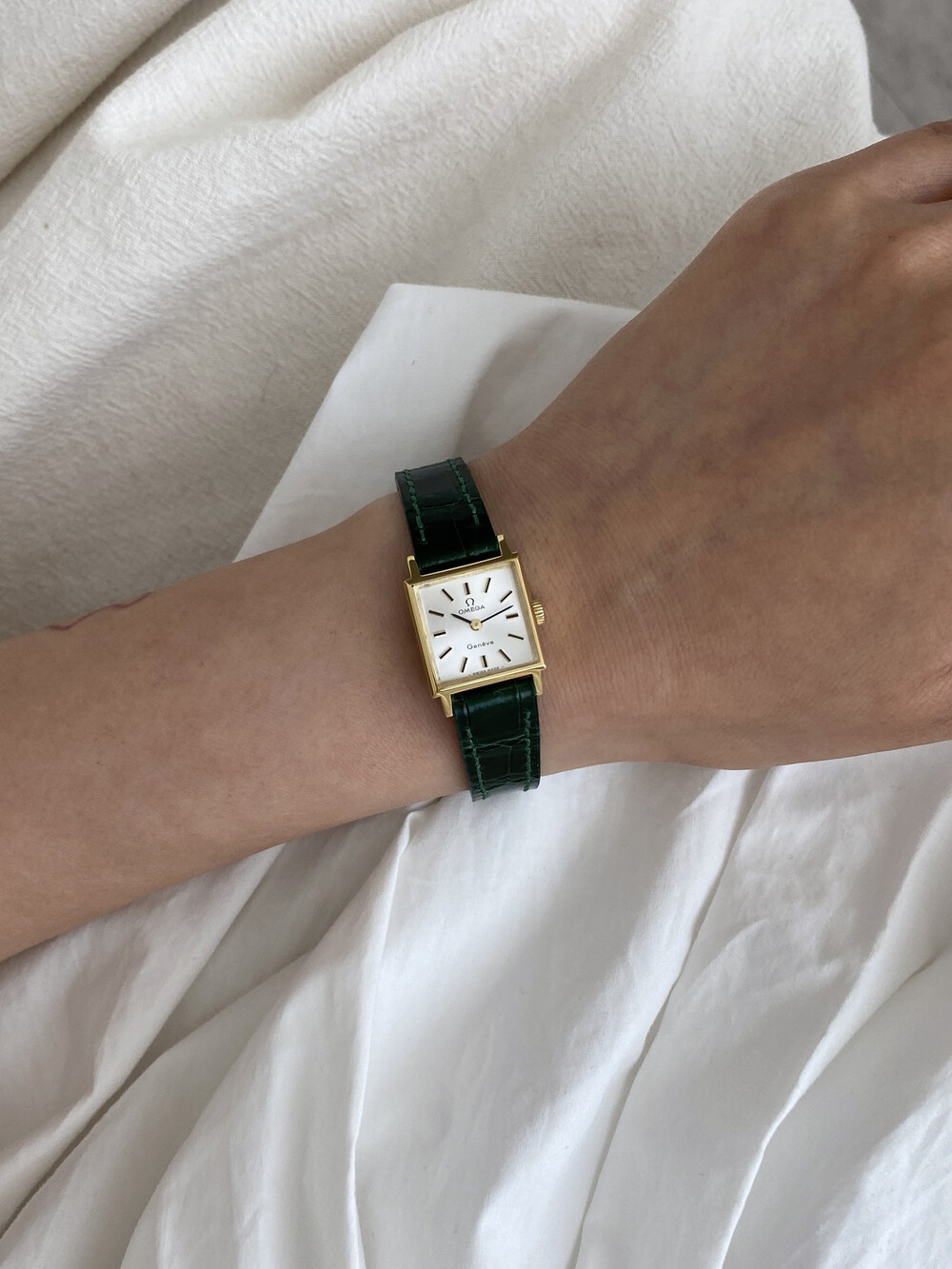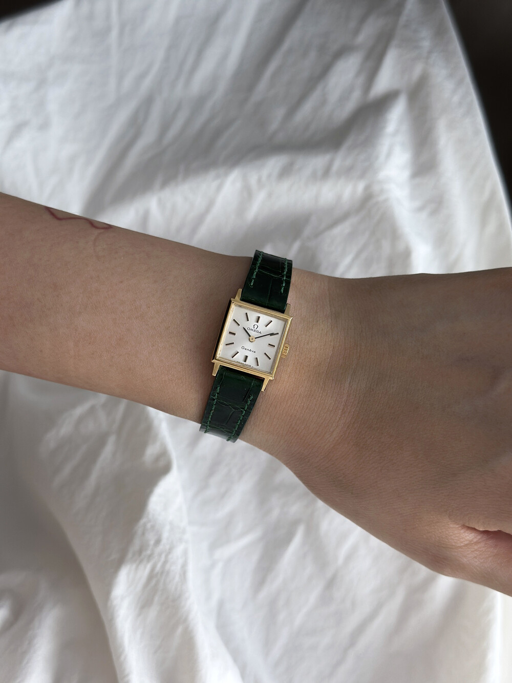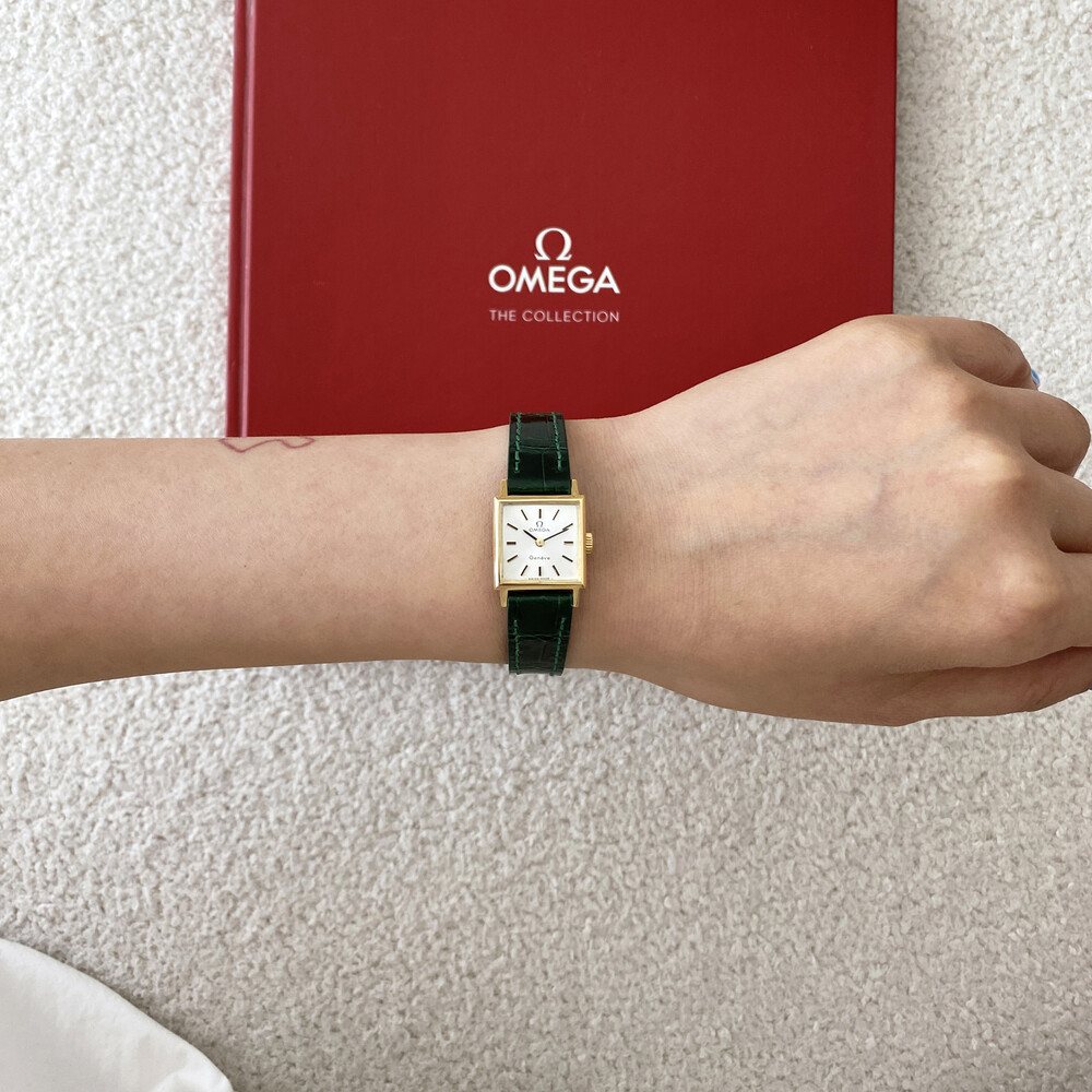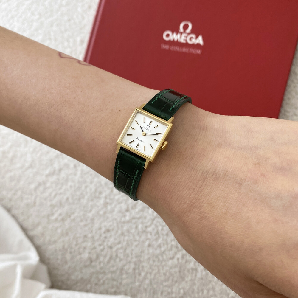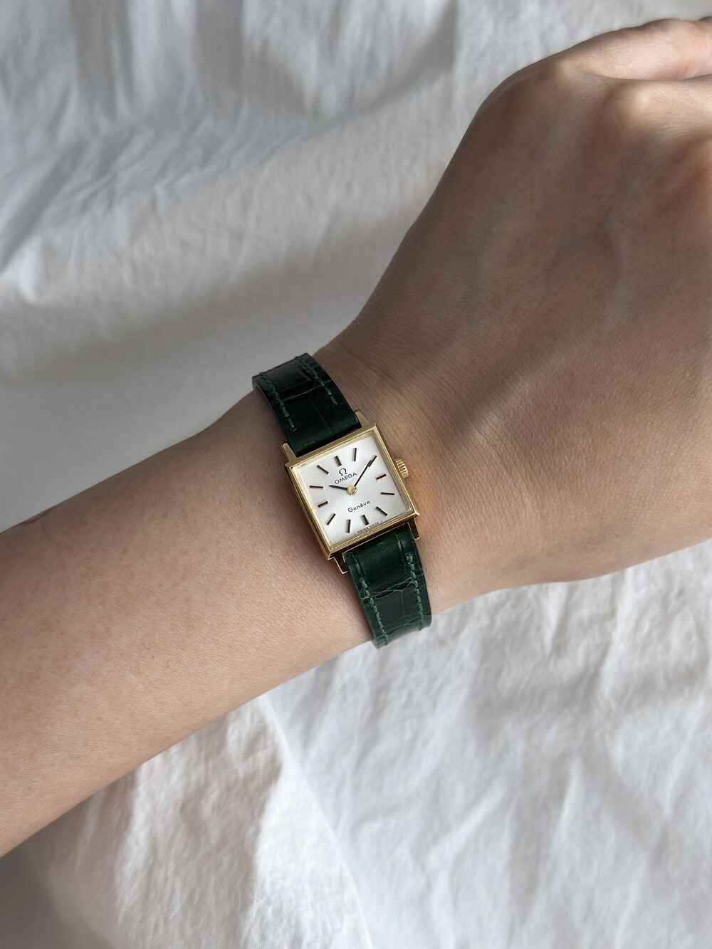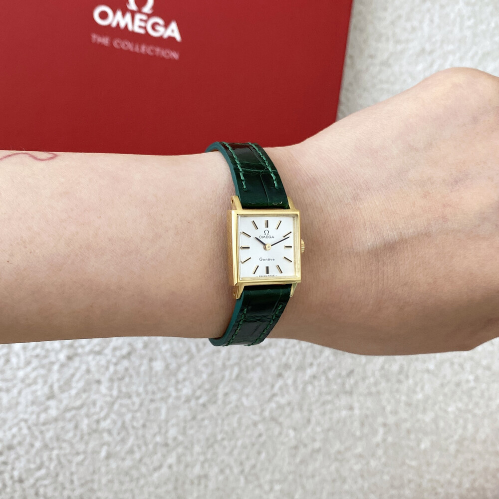 1973년도에 제작된 여성용 오메가 제네브 모델로 스퀘어 타입의 골드 케이스와