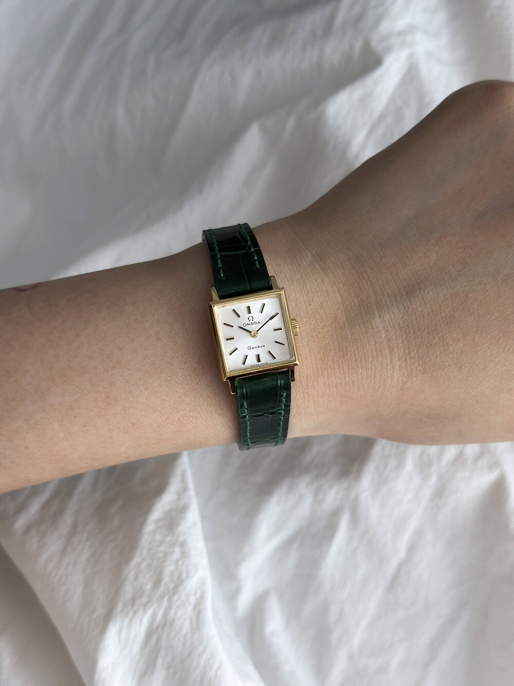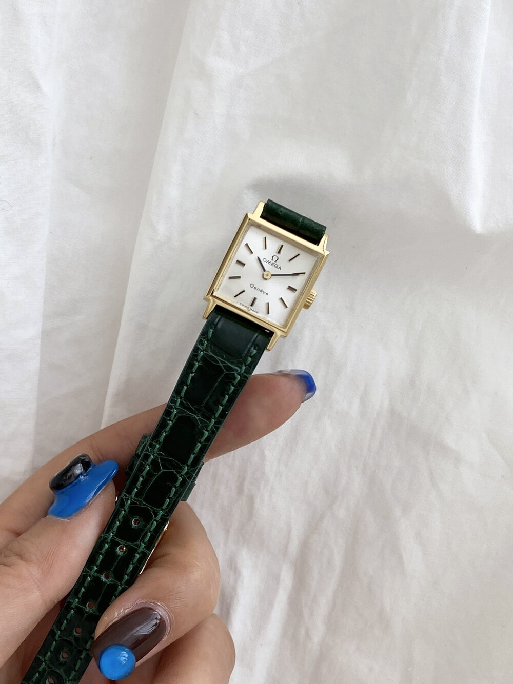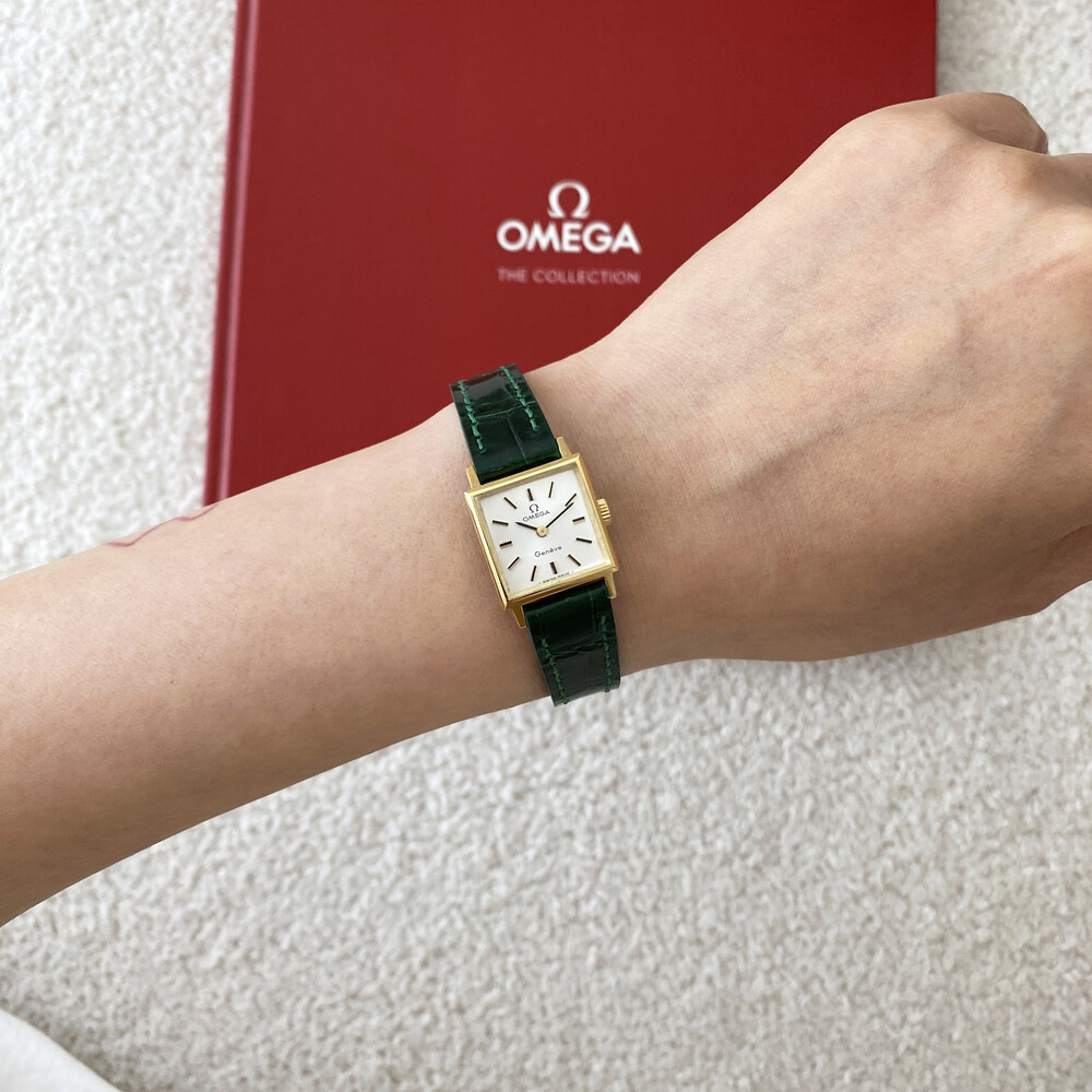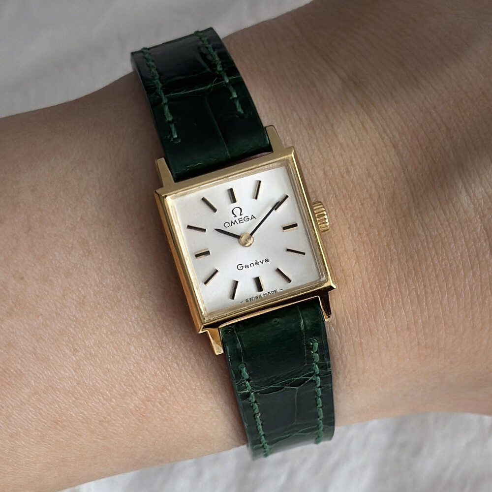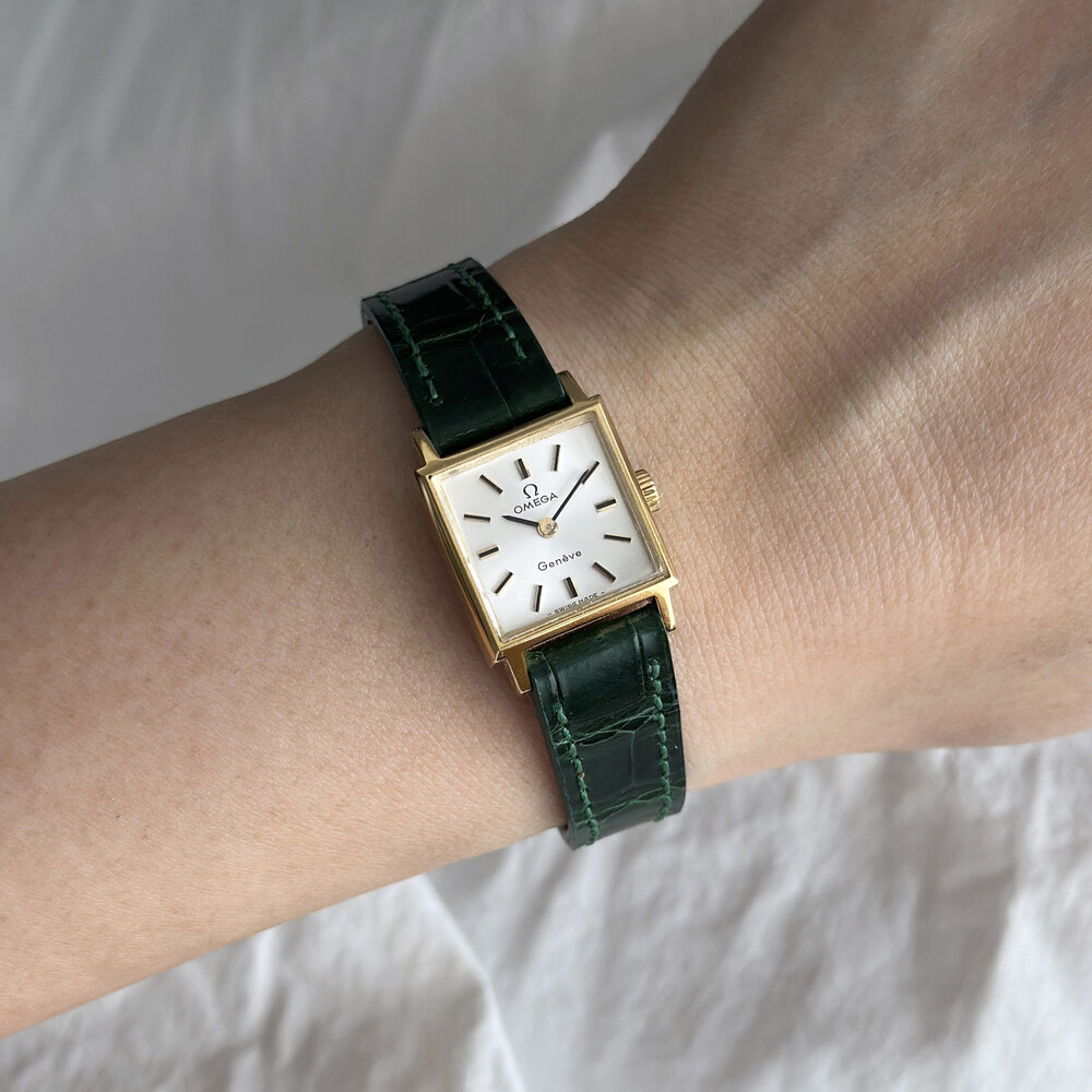 1973년도에 제작된 여성용 오메가 제네브 모델로 스퀘어 타입의 골드 케이스와