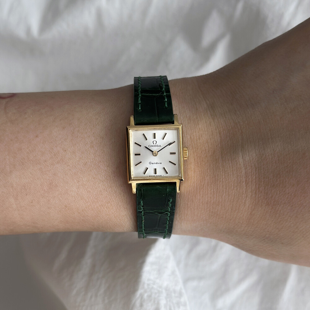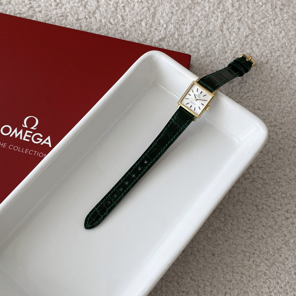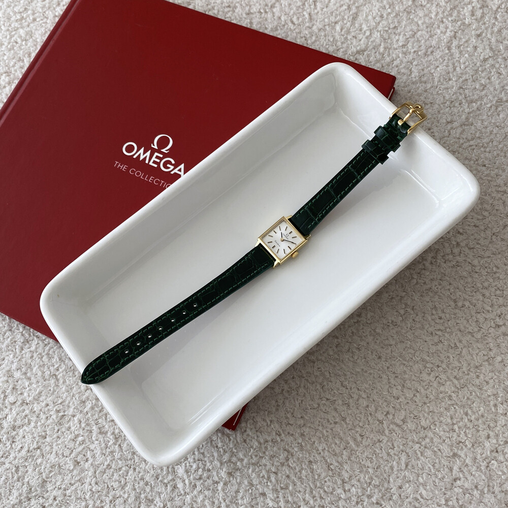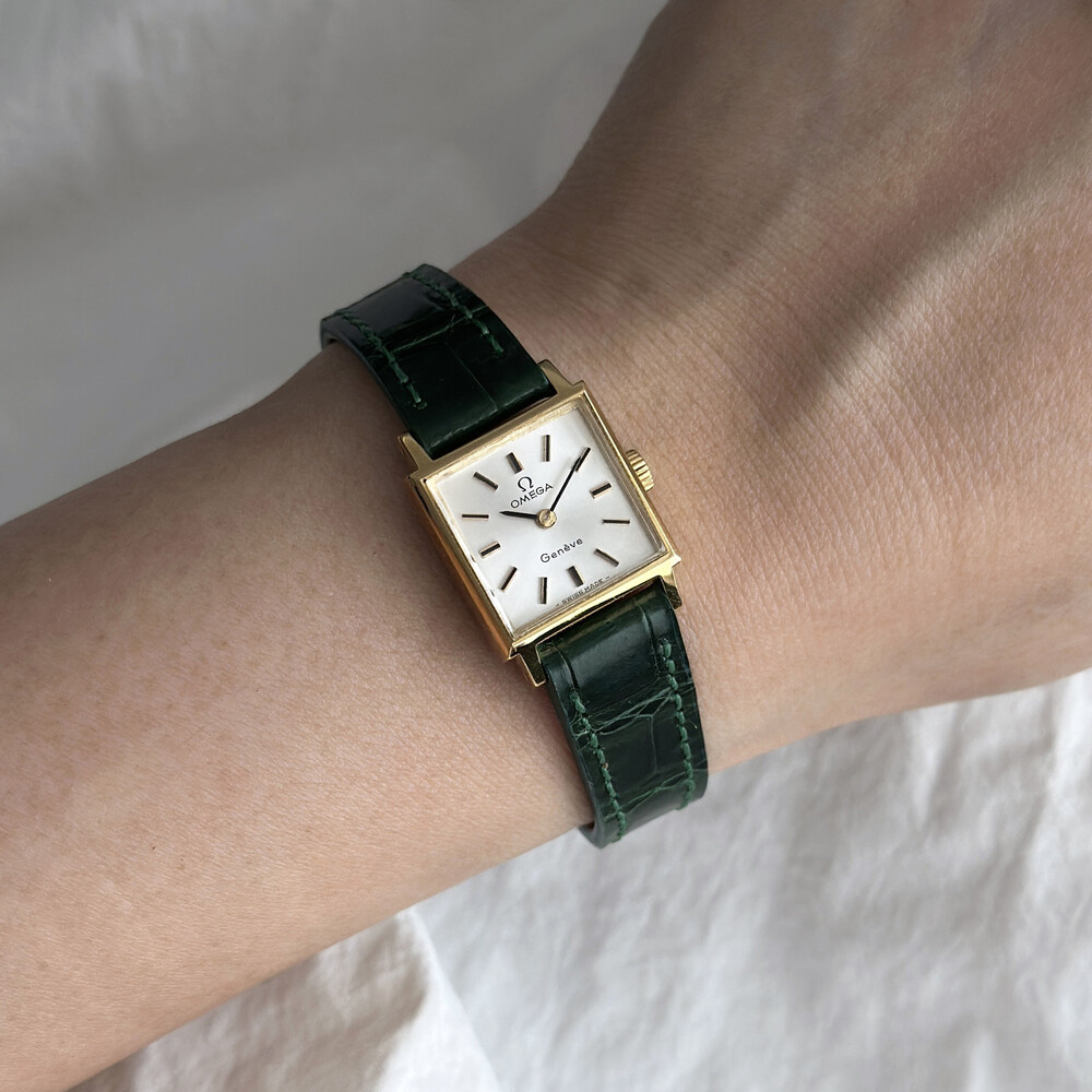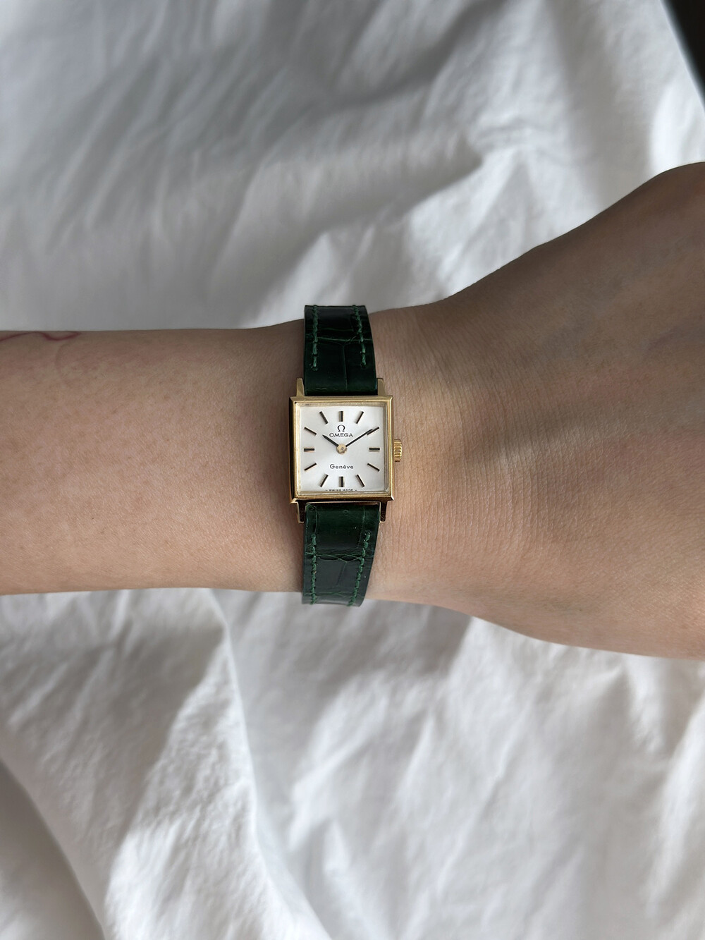 1973년도에 제작된 여성용 오메가 제네브 모델로 스퀘어 타입의 골드 케이스와