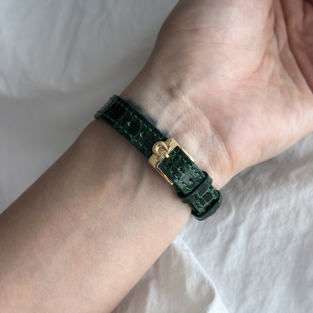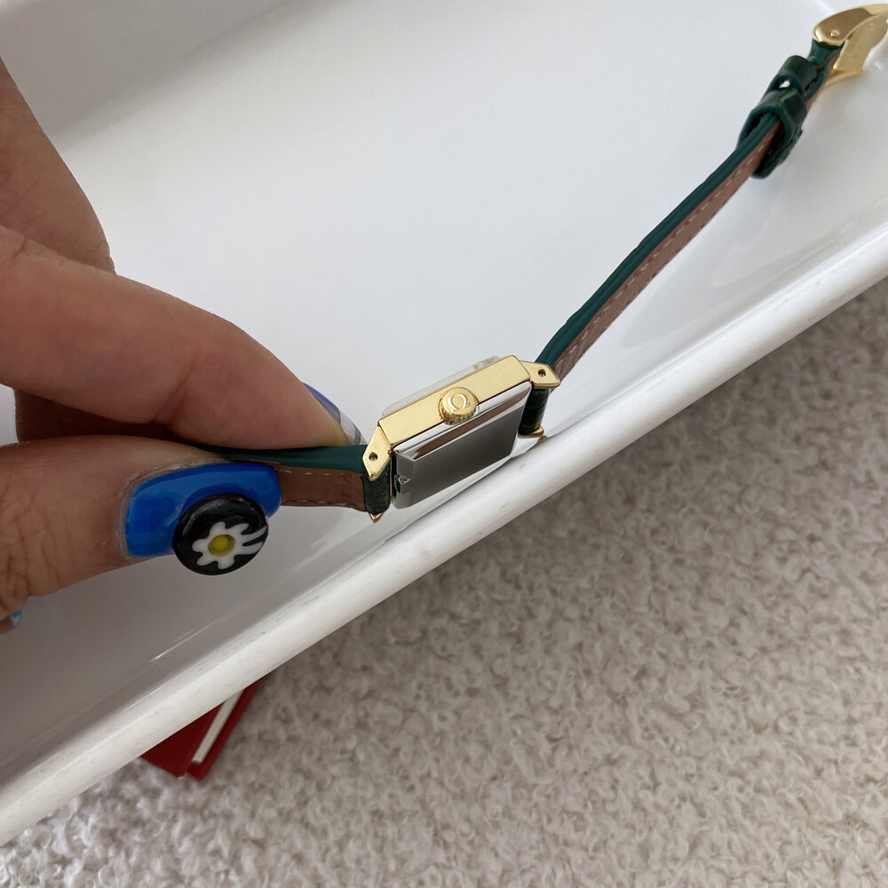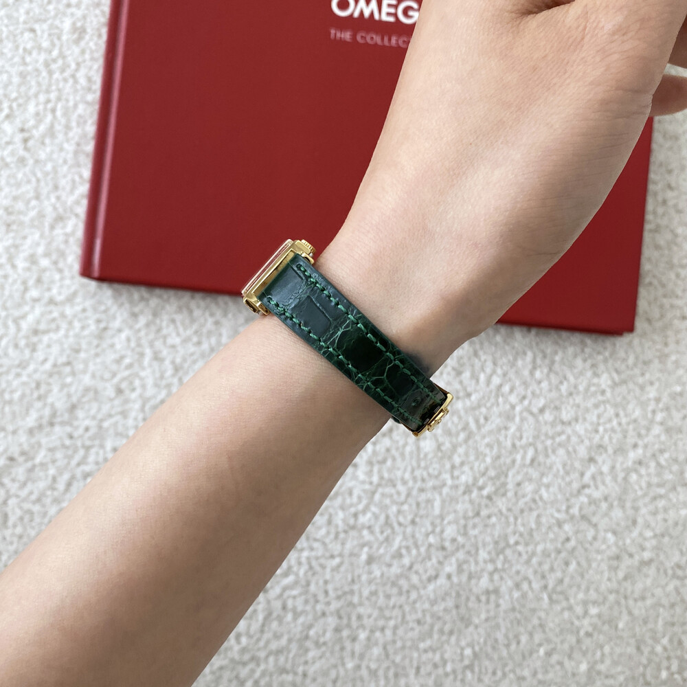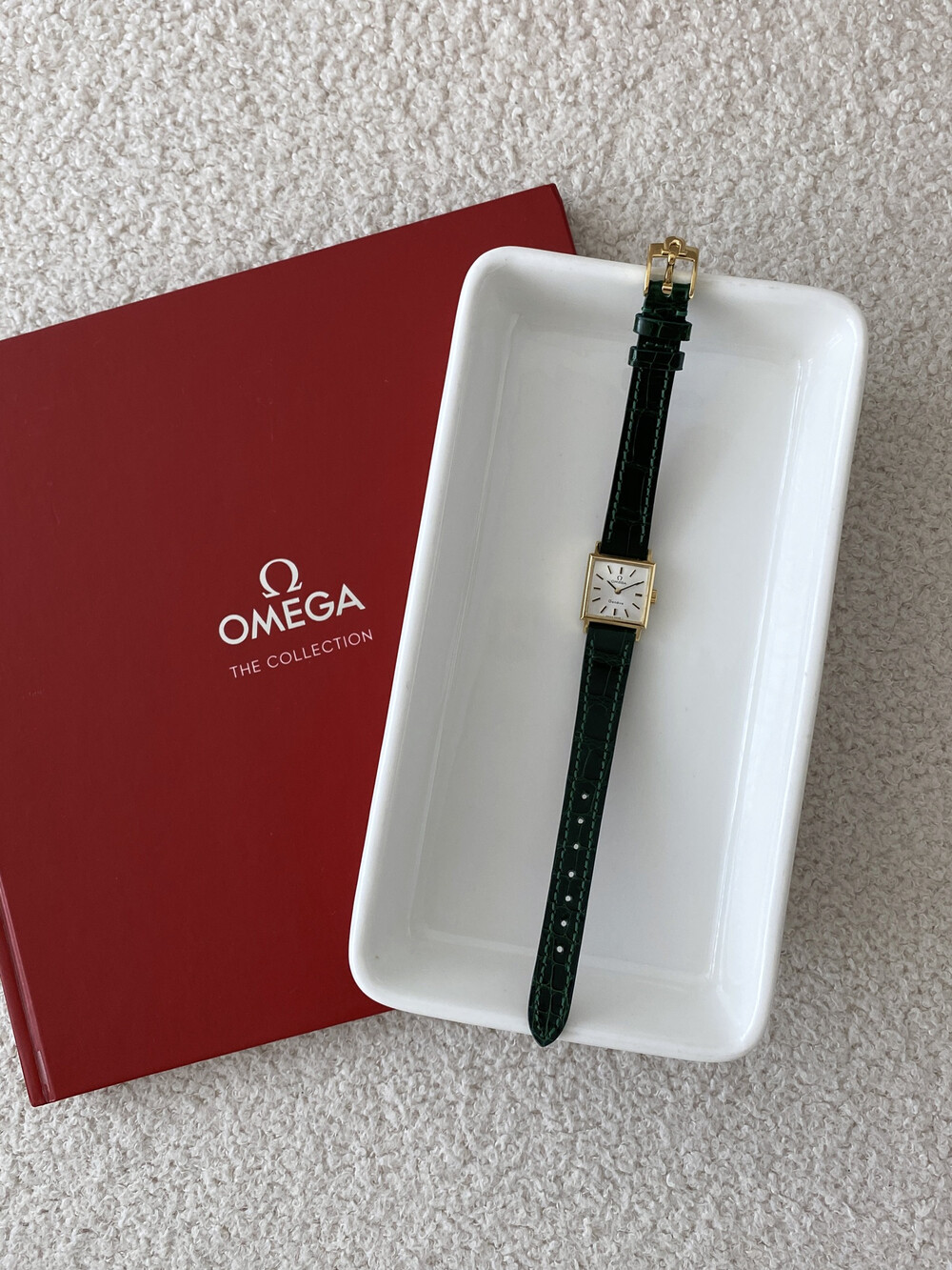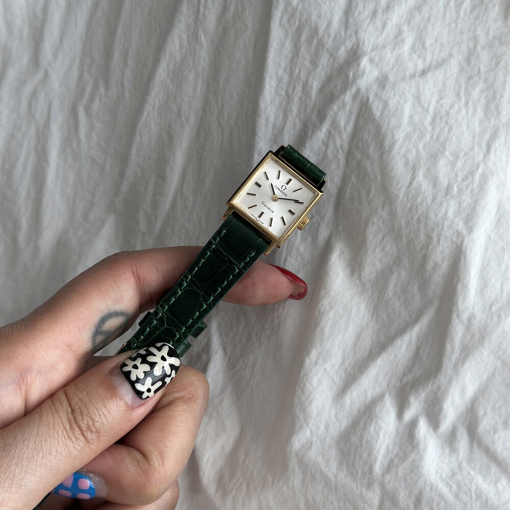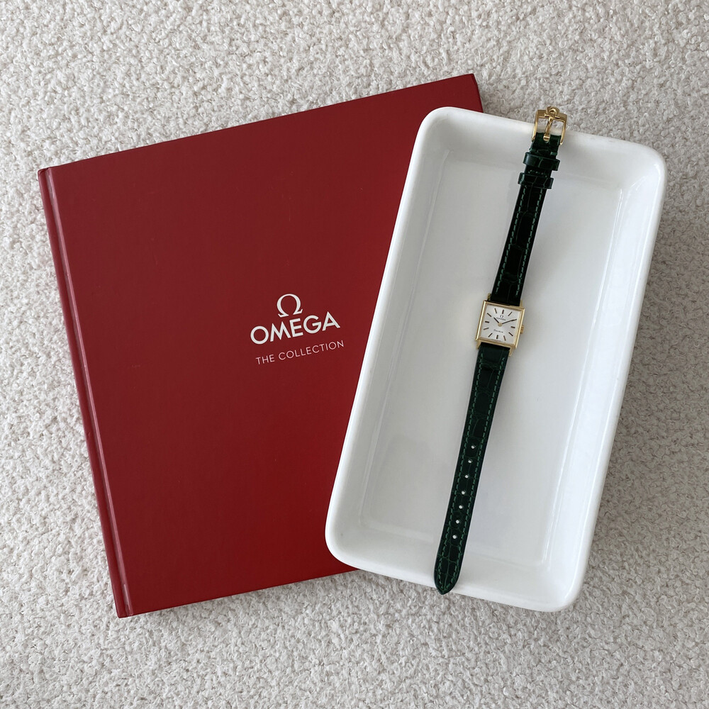 1973년도에 제작된 여성용 오메가 제네브 모델로 스퀘어 타입의 골드 케이스와