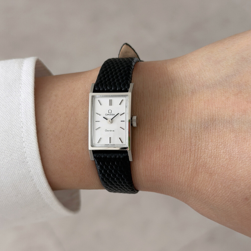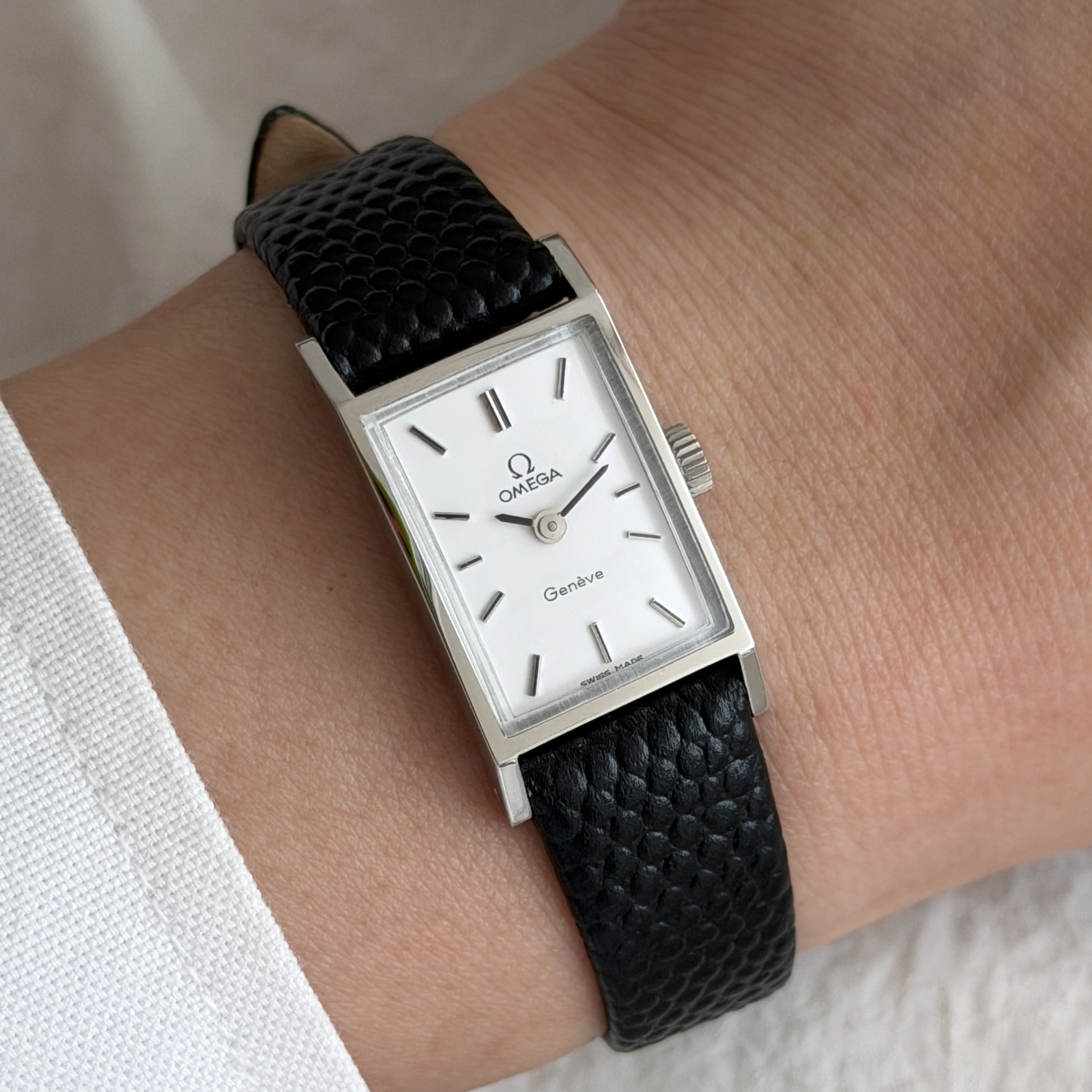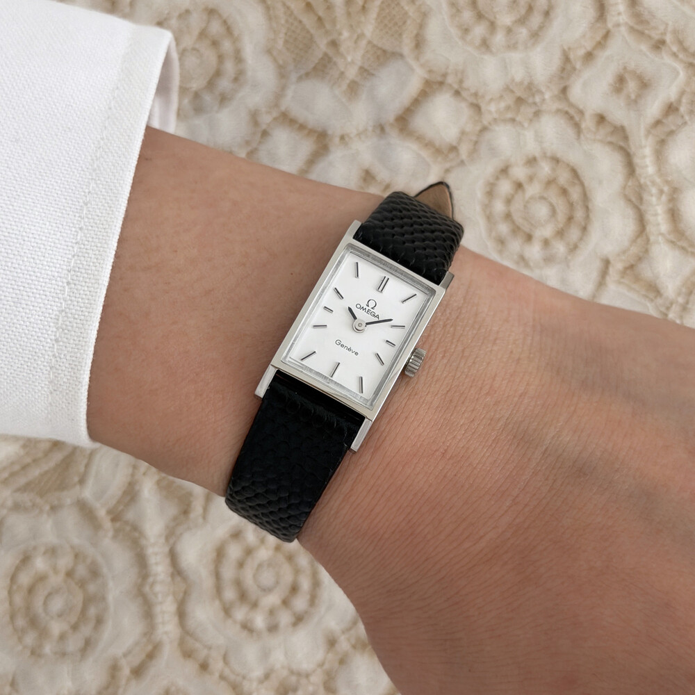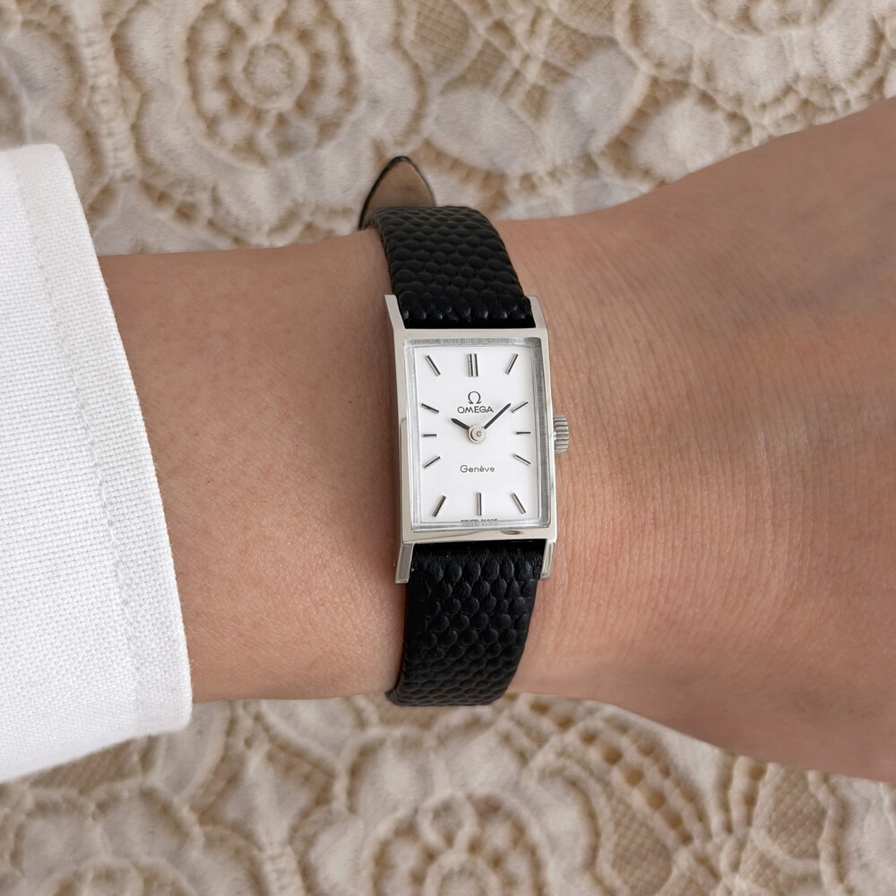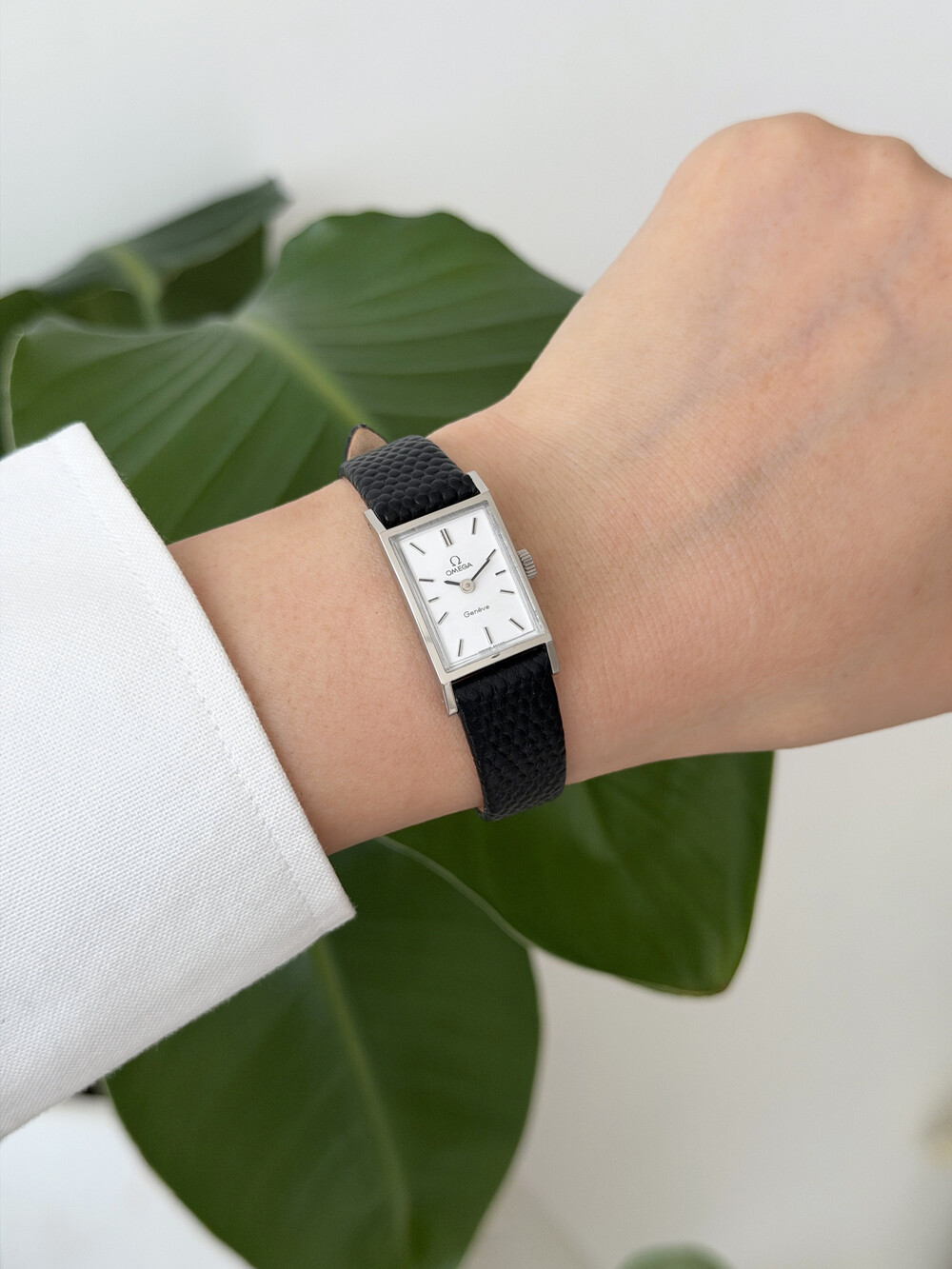 1971년도에 제작된 오메가 모델로 깔끔한 화이트 다이얼 위를 장식하는