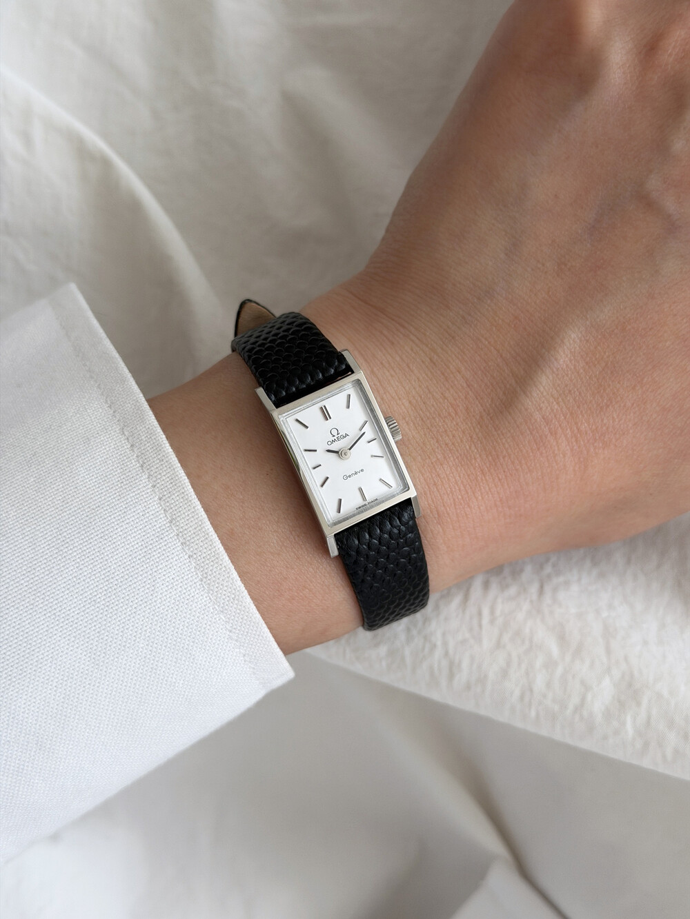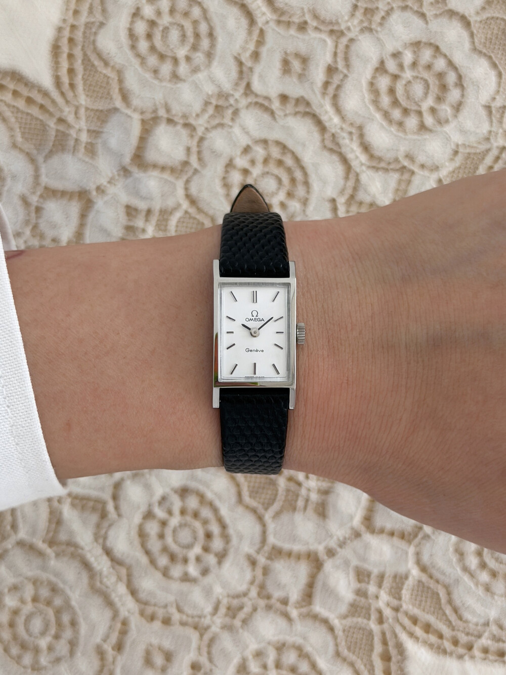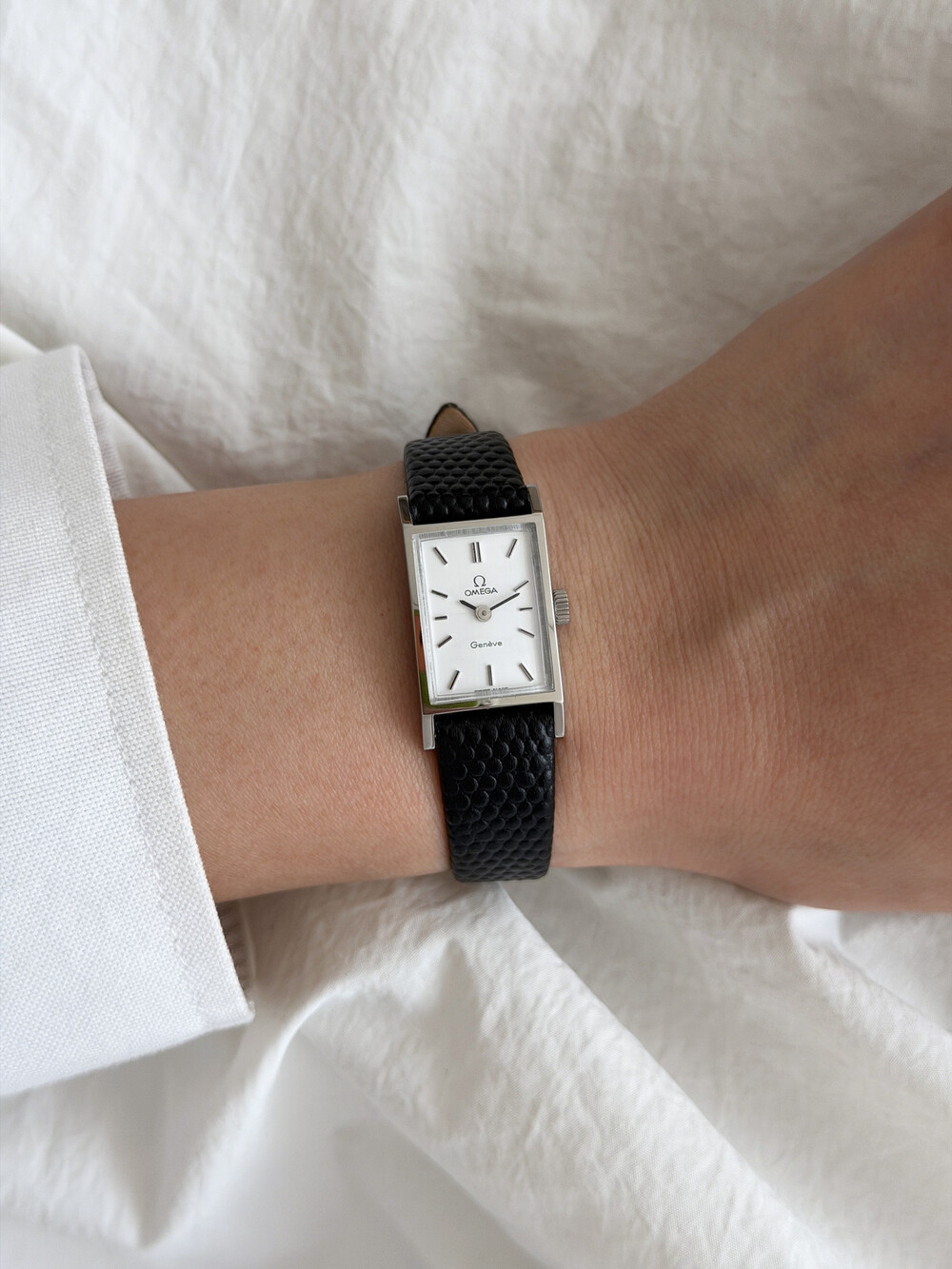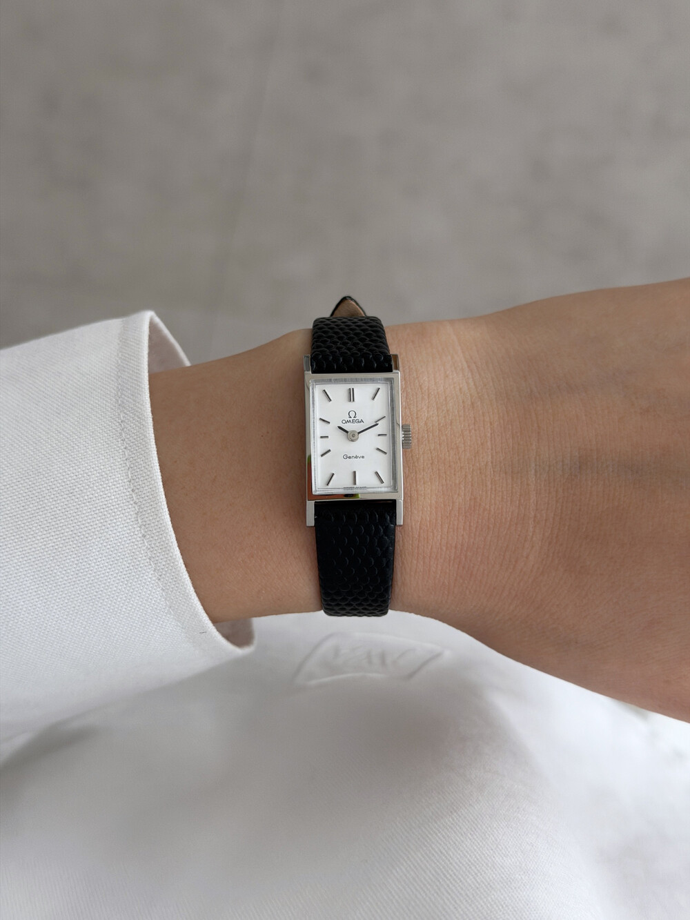 1971년도에 제작된 오메가 모델로 깔끔한 화이트 다이얼 위를 장식하는