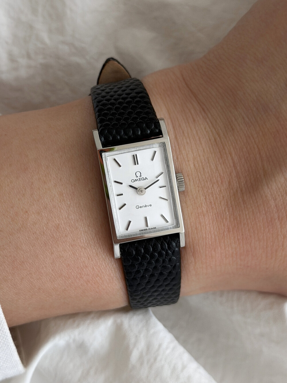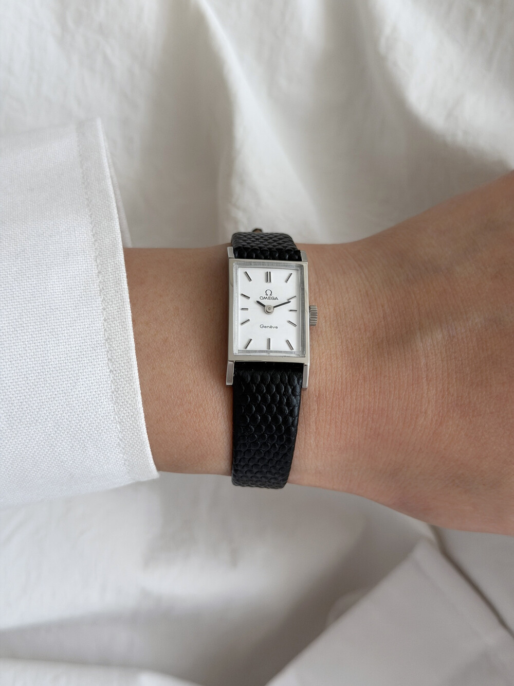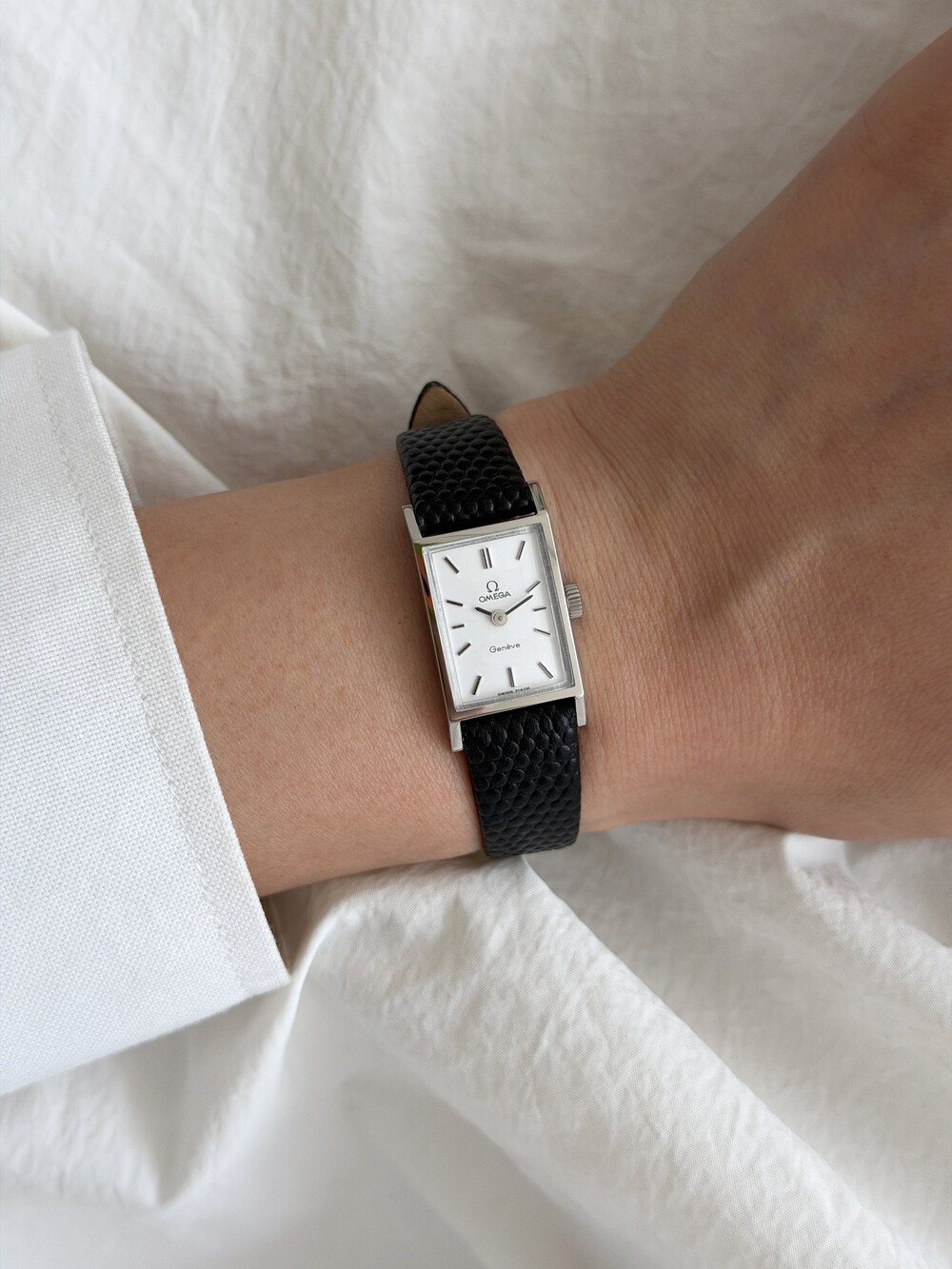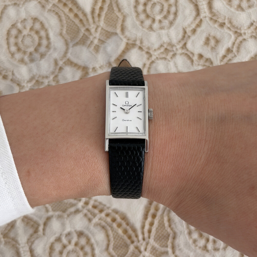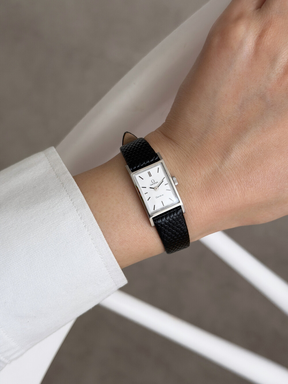 1971년도에 제작된 오메가 모델로 깔끔한 화이트 다이얼 위를 장식하는