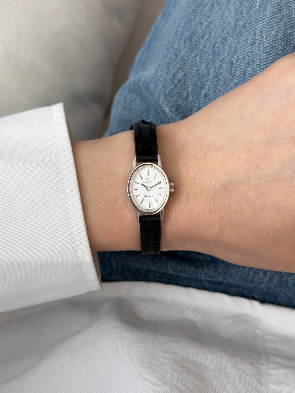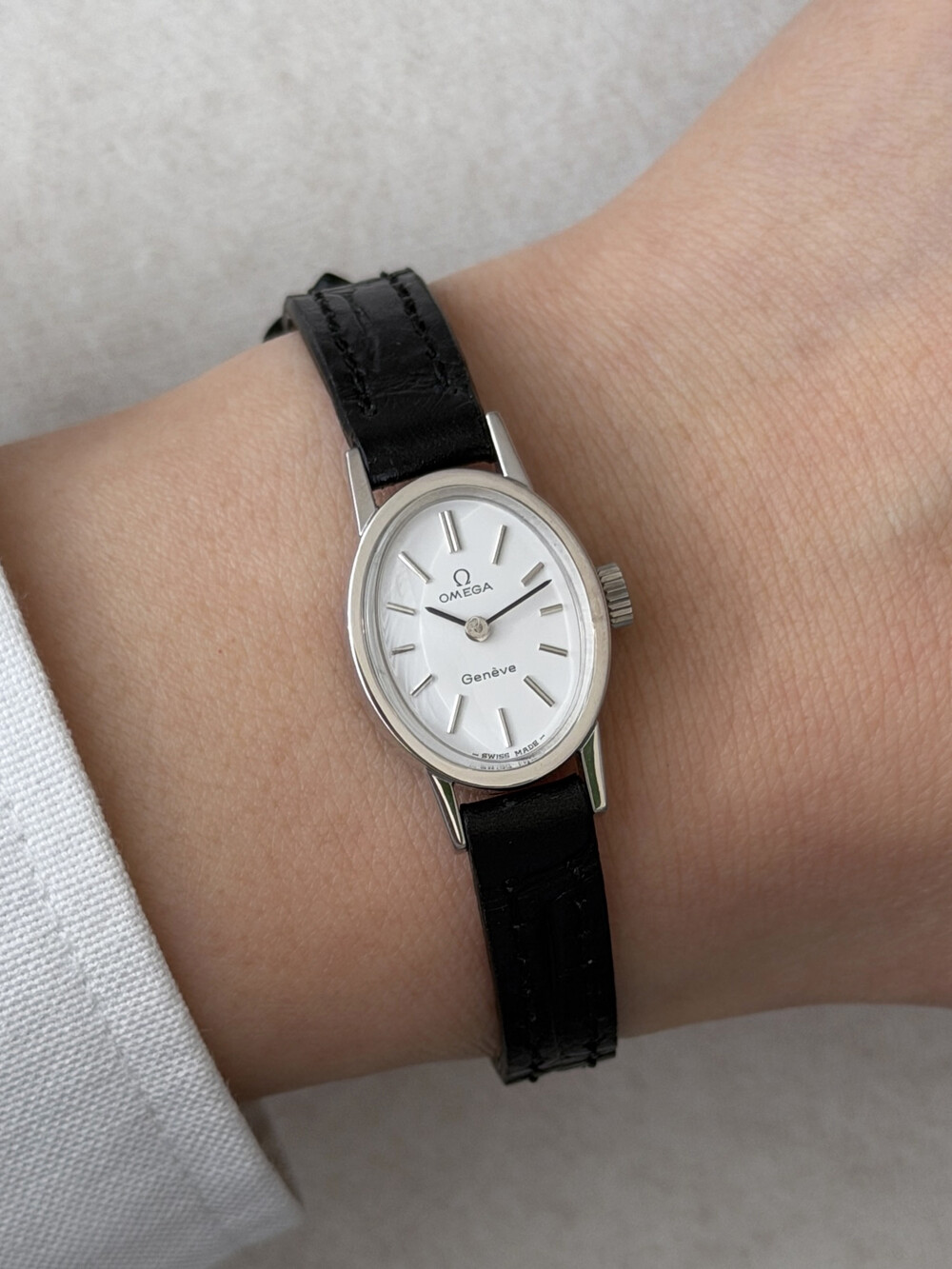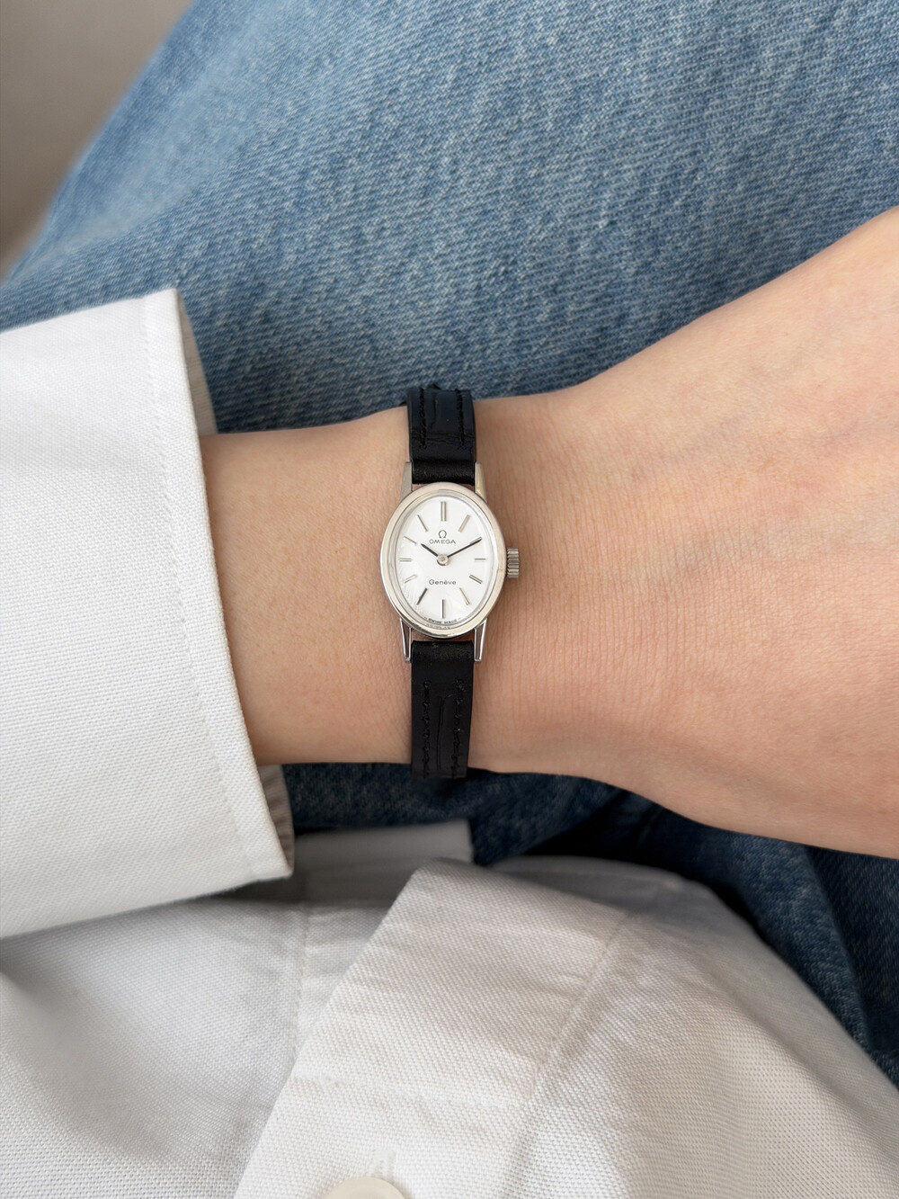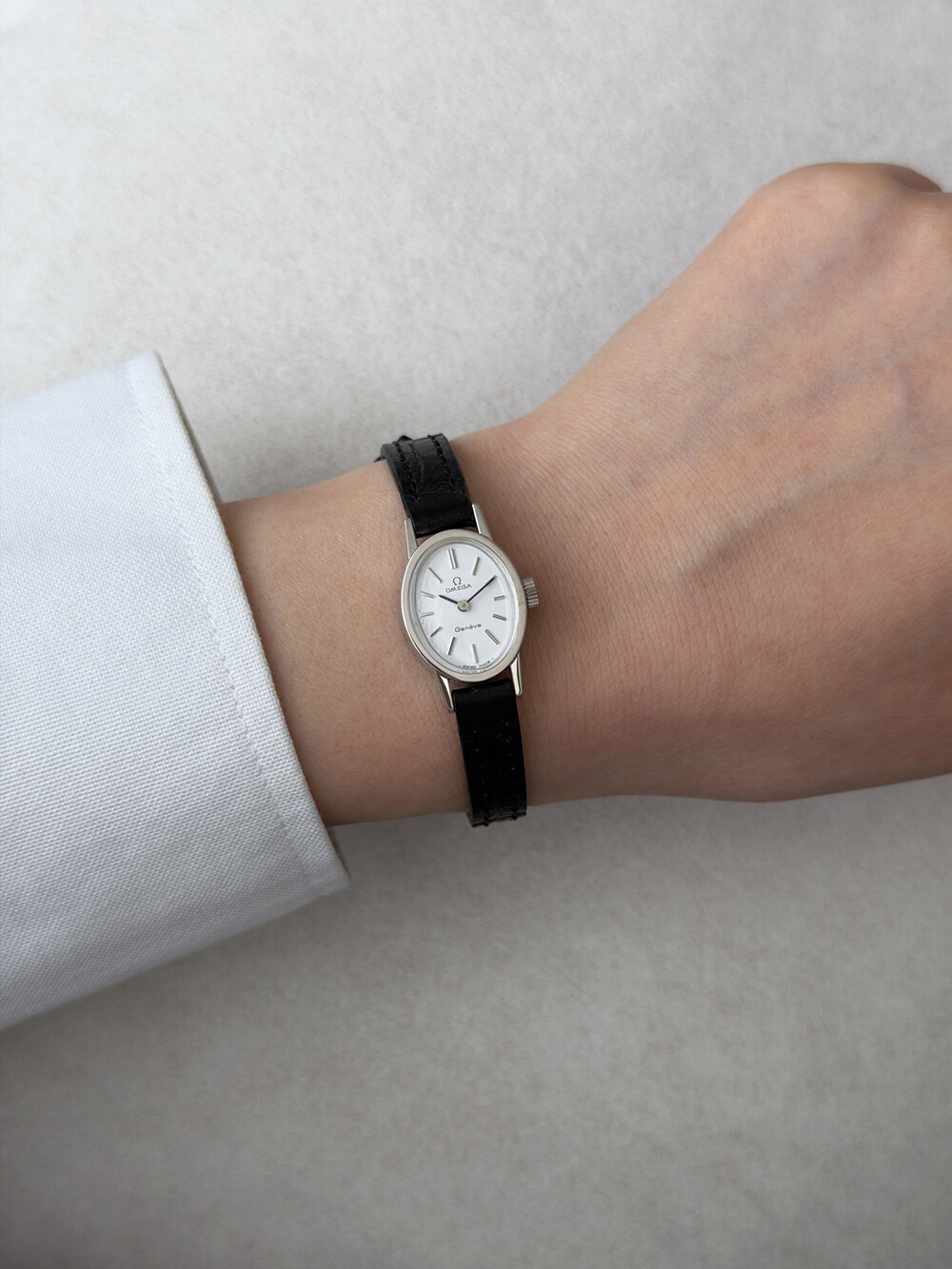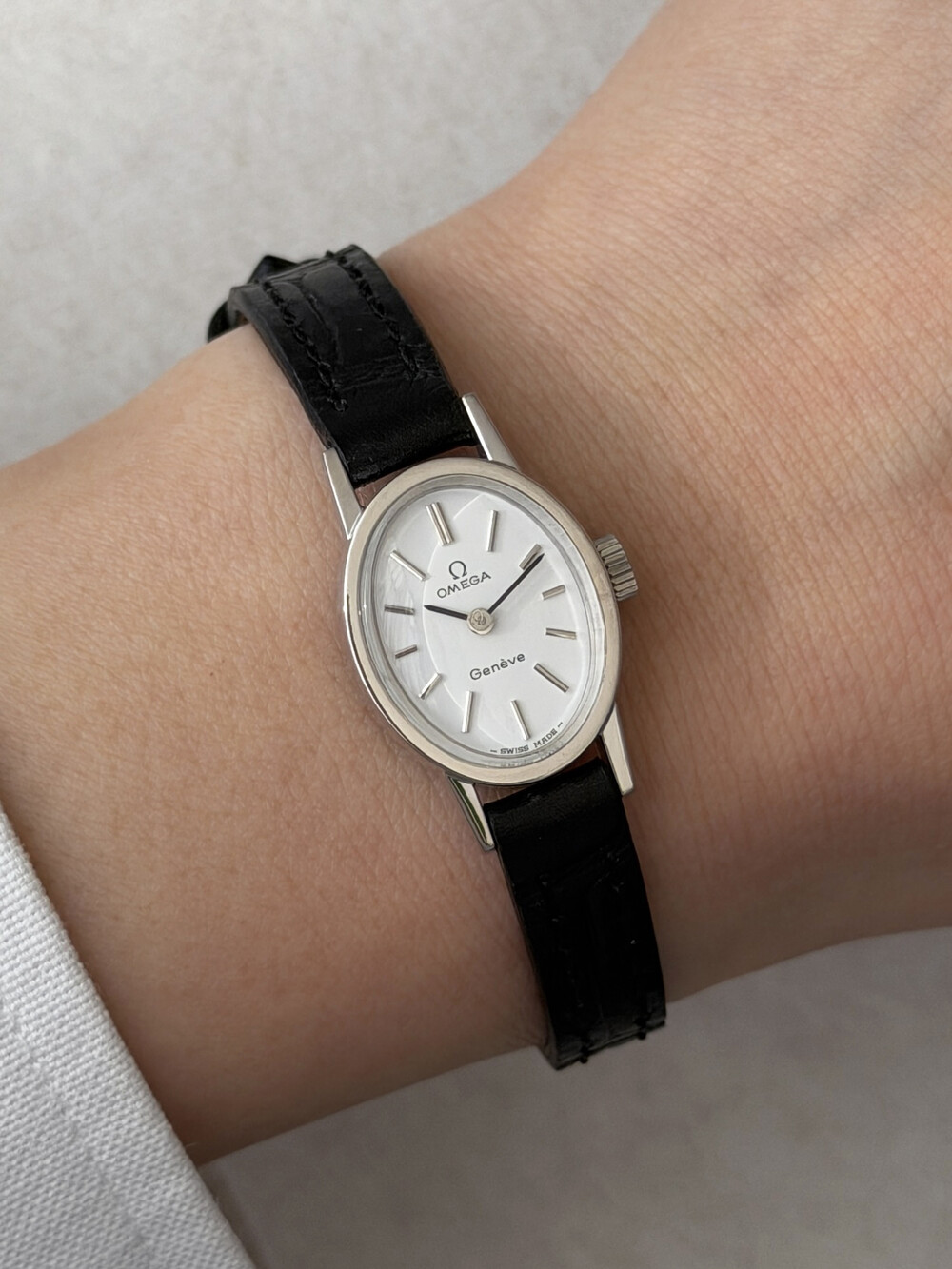 1970년도에 제작된 오메가 제네브 모델로 오발 타입의 케이스,