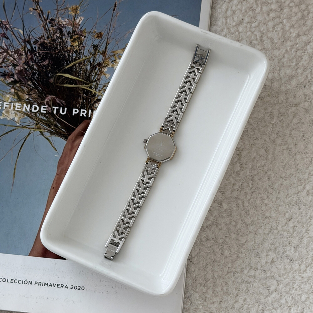 여성용으로 제작된 생로랑 시계이며 쿼츠 무브먼트로 제작되었습니다.
