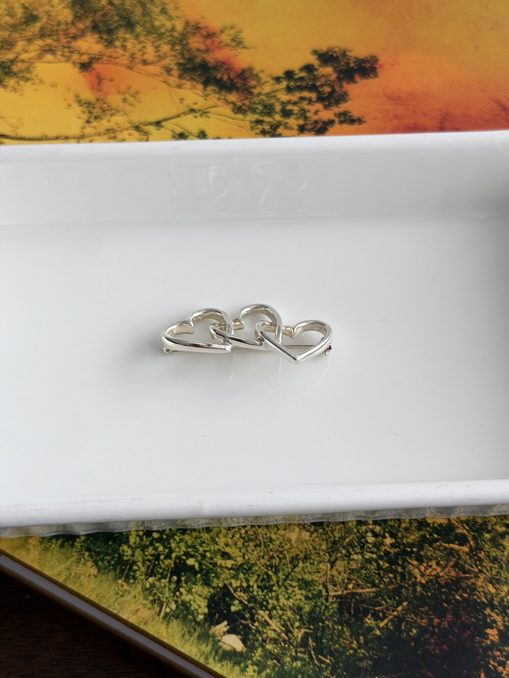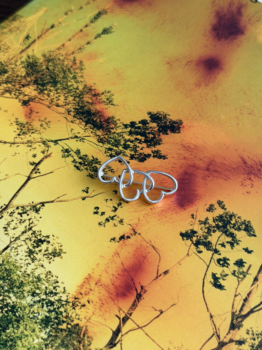 세 개의 오픈 하트가 자연스럽게 이어지는 디자인으로, 팔로마 피카소 오픈 하트 라인의 조형미가 잘 드러나는 모델입니다. 유행에 좌우되지 않는 구조로 브로치 특유의 클래식함과 티파니 실버의 세련된 분위기를 함께 느낄 수 있습니다.